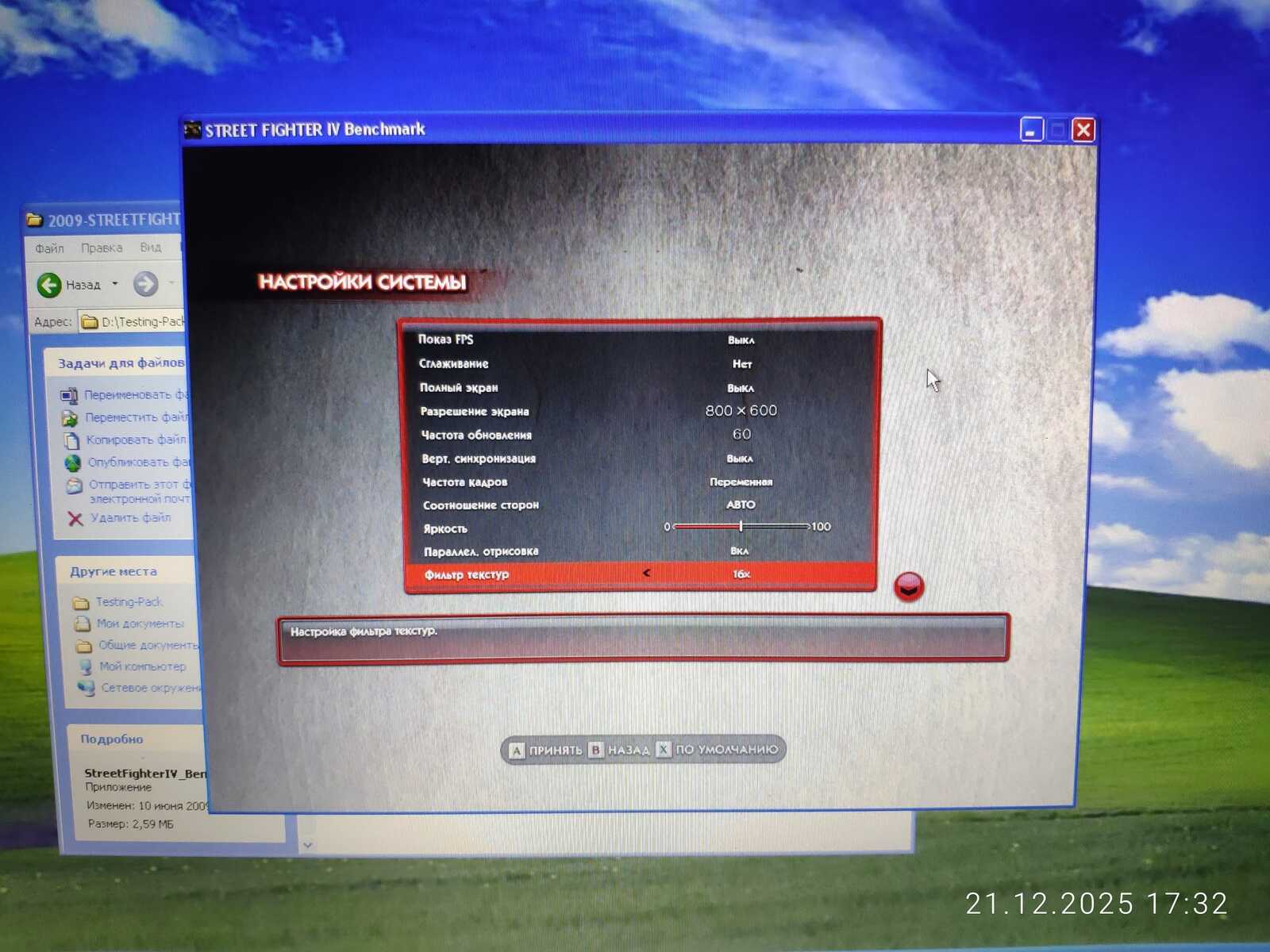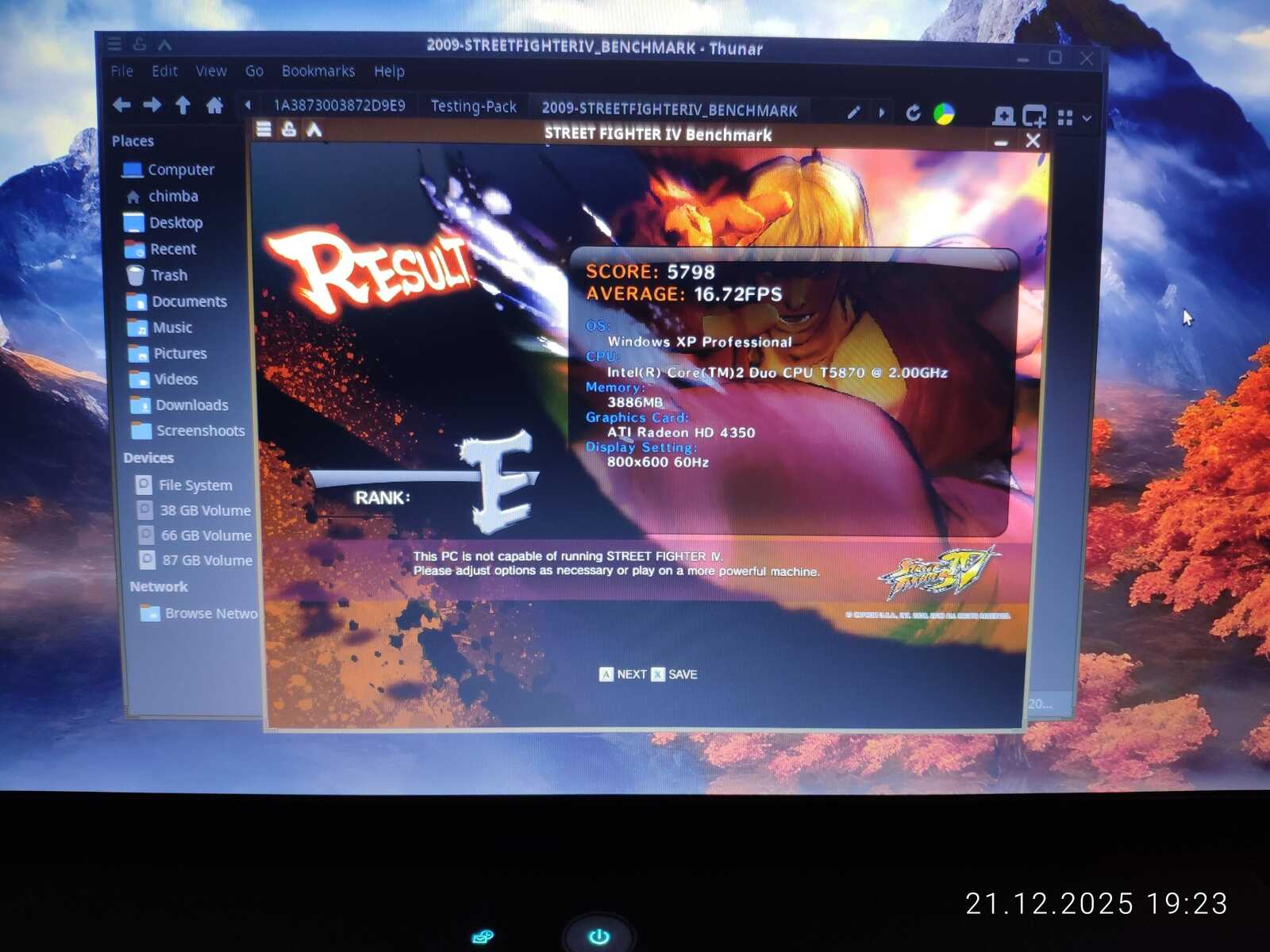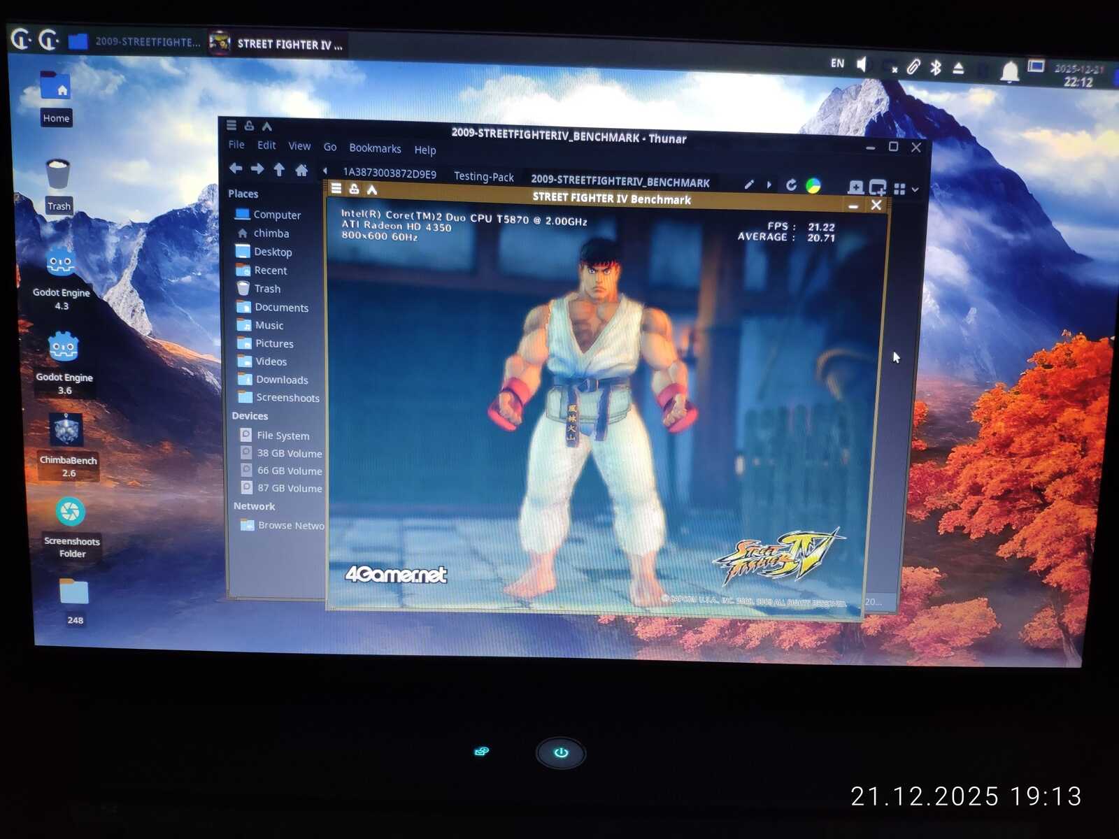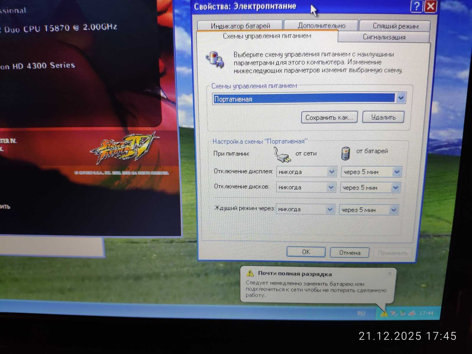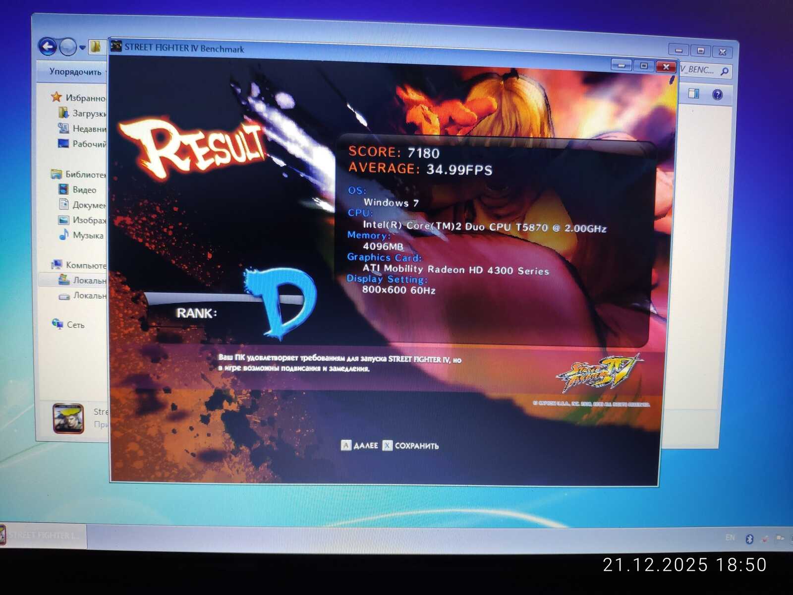 Первый тест Street Fighter IV не удался по причине отключившегося штекера зарядного устройства. Если процессору всё равно на режим работы, то видеокарте нет. HD 4330 не выдаёт свою полную производительность при работе от батареи.