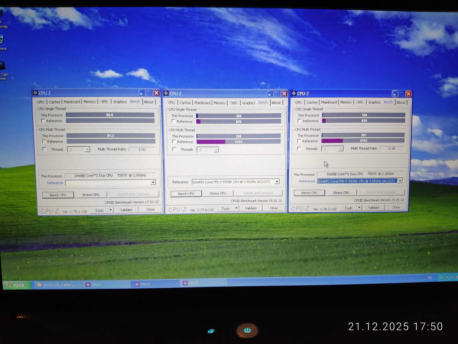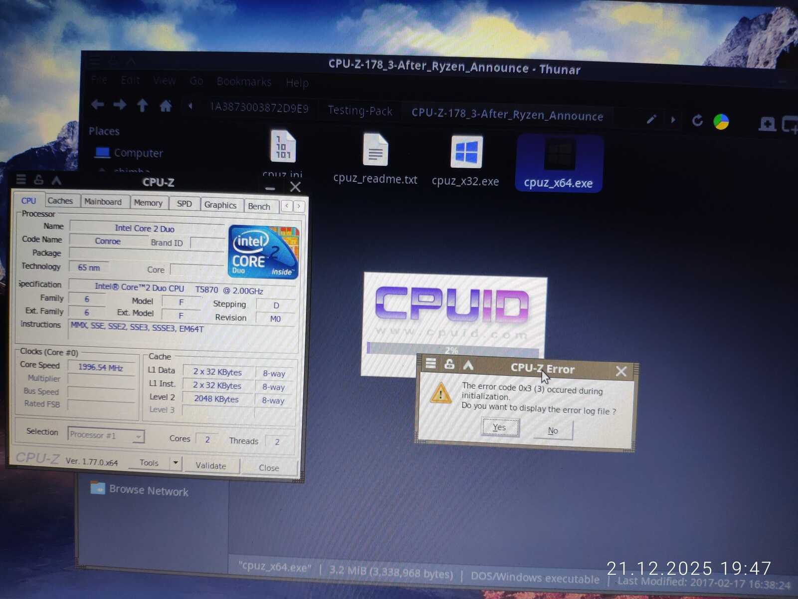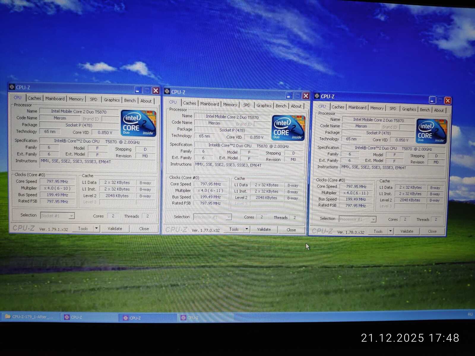 По результатам CPU-Z процессор T5870 слабее чем T4400.