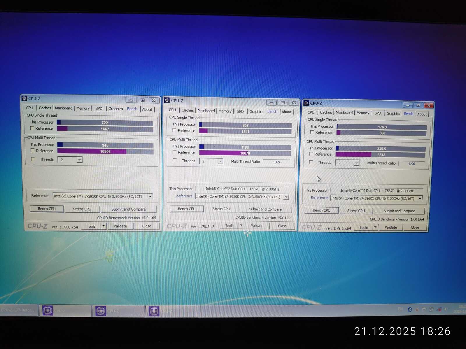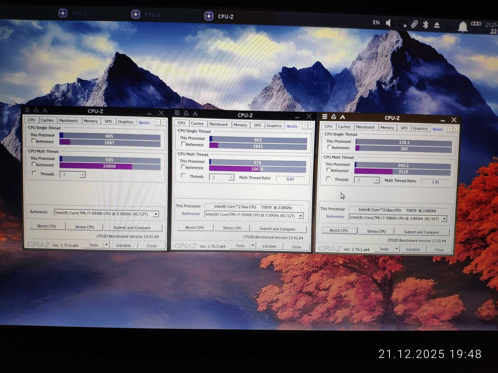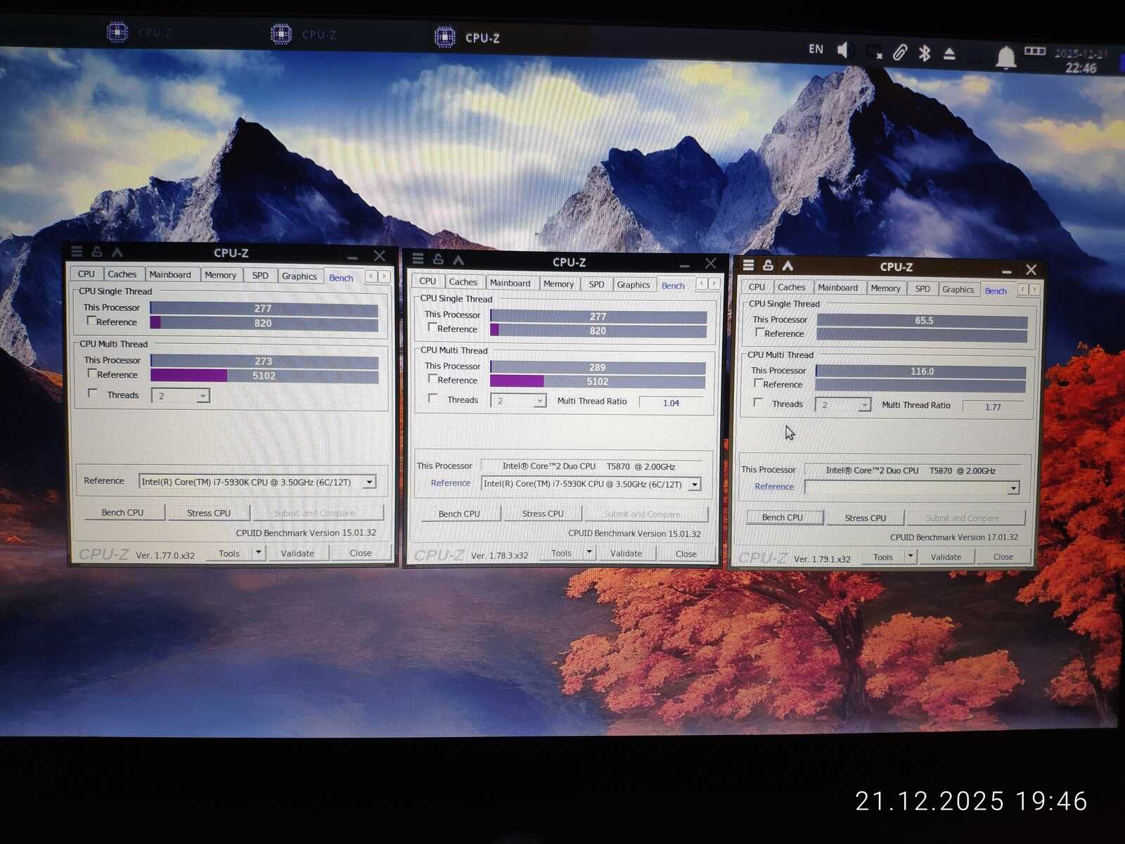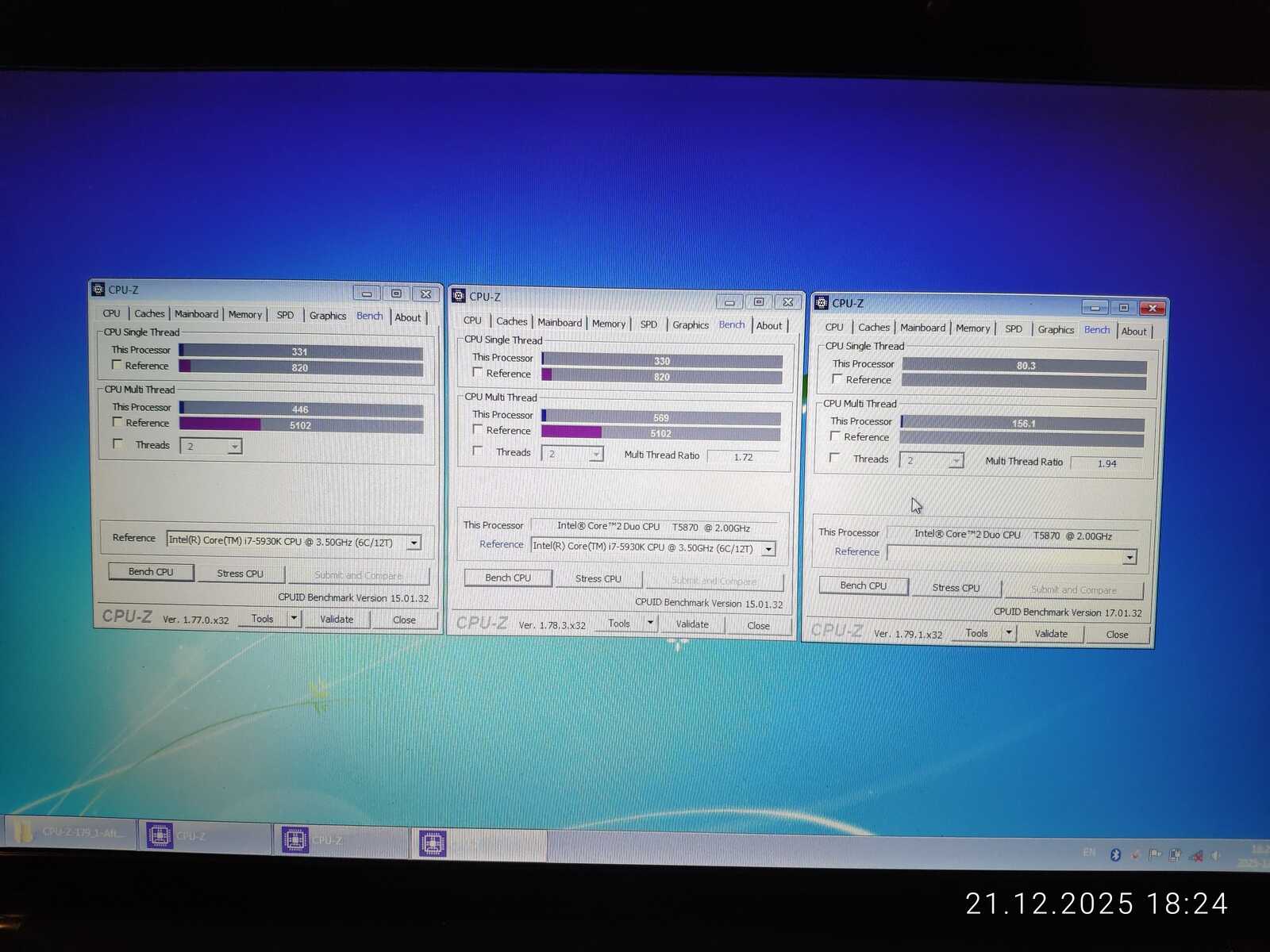 По результатам CPU-Z процессор T5870 слабее чем T4400.