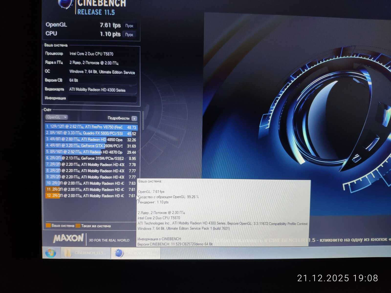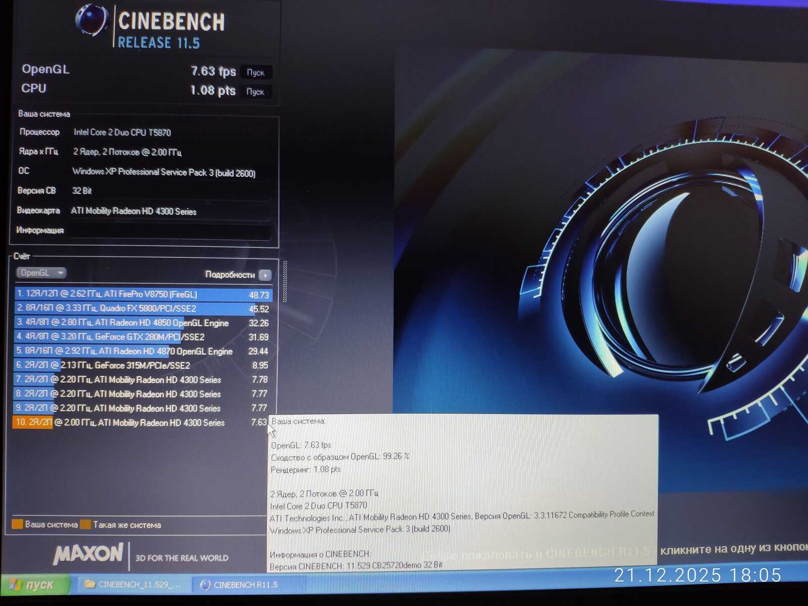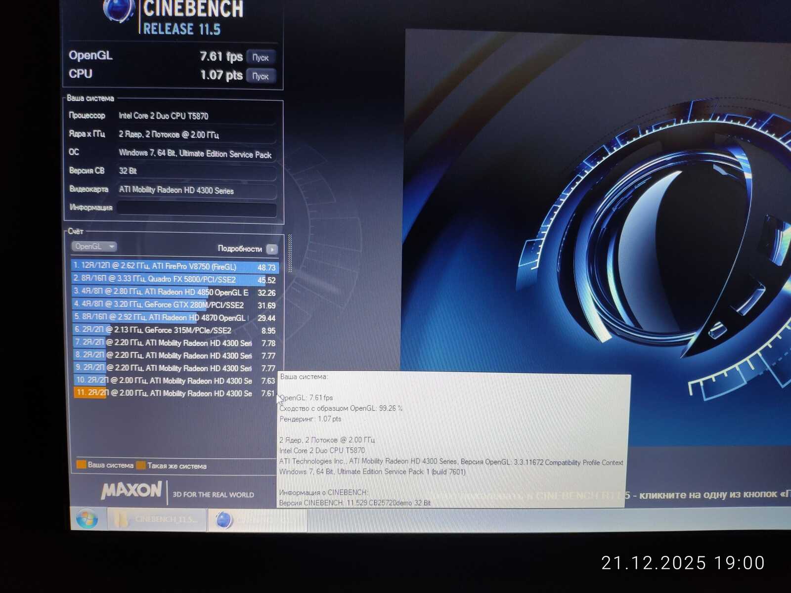 Cinebench не показал значительной разницы между процессорами, а видеокарта AMD Radeon HD 4330 уже во второй раз значительно уступила аналогичной GeForce 315. Разве что в среде Linux драйвер AMD оказался лучше, чем Nouveau.