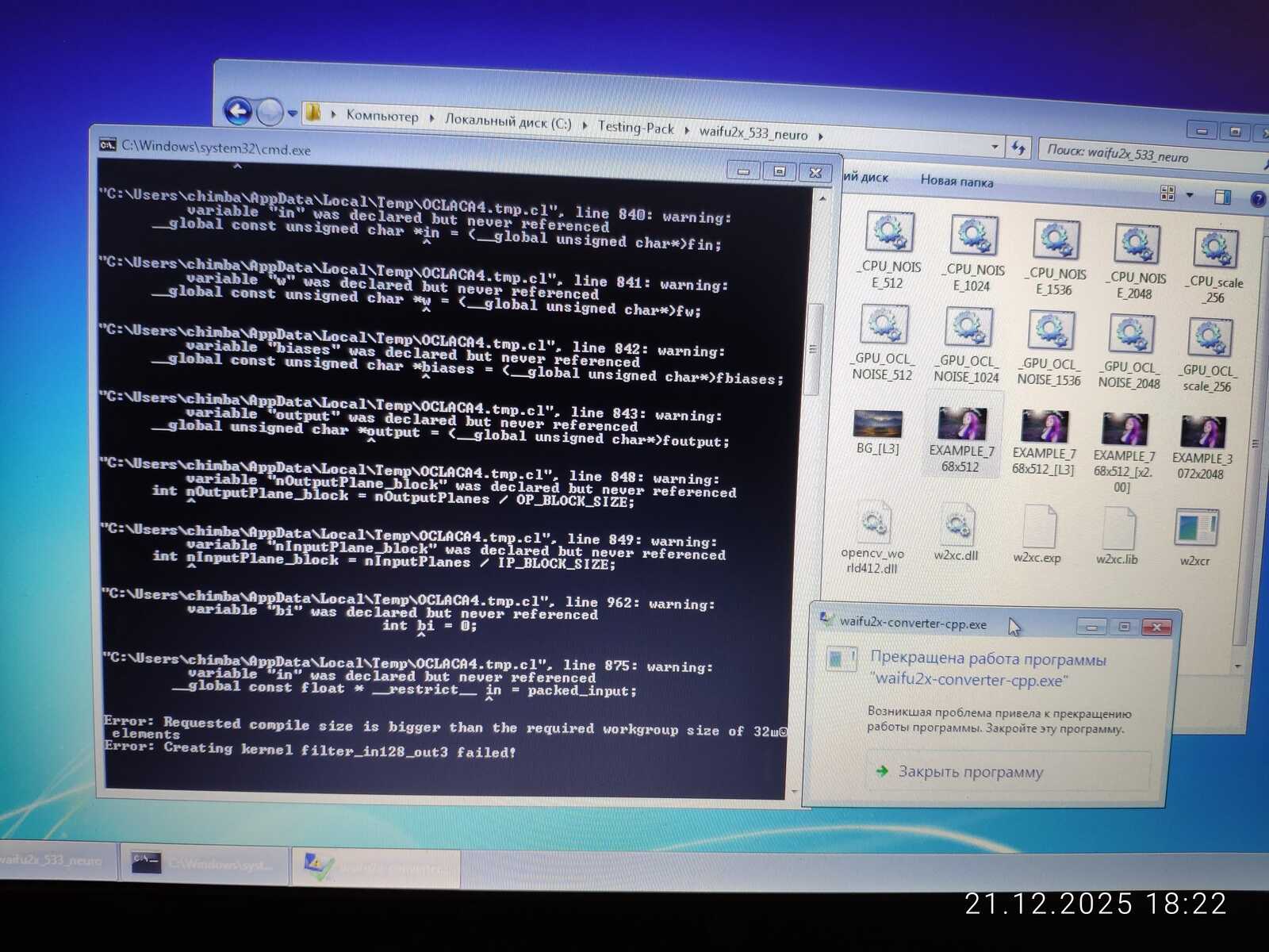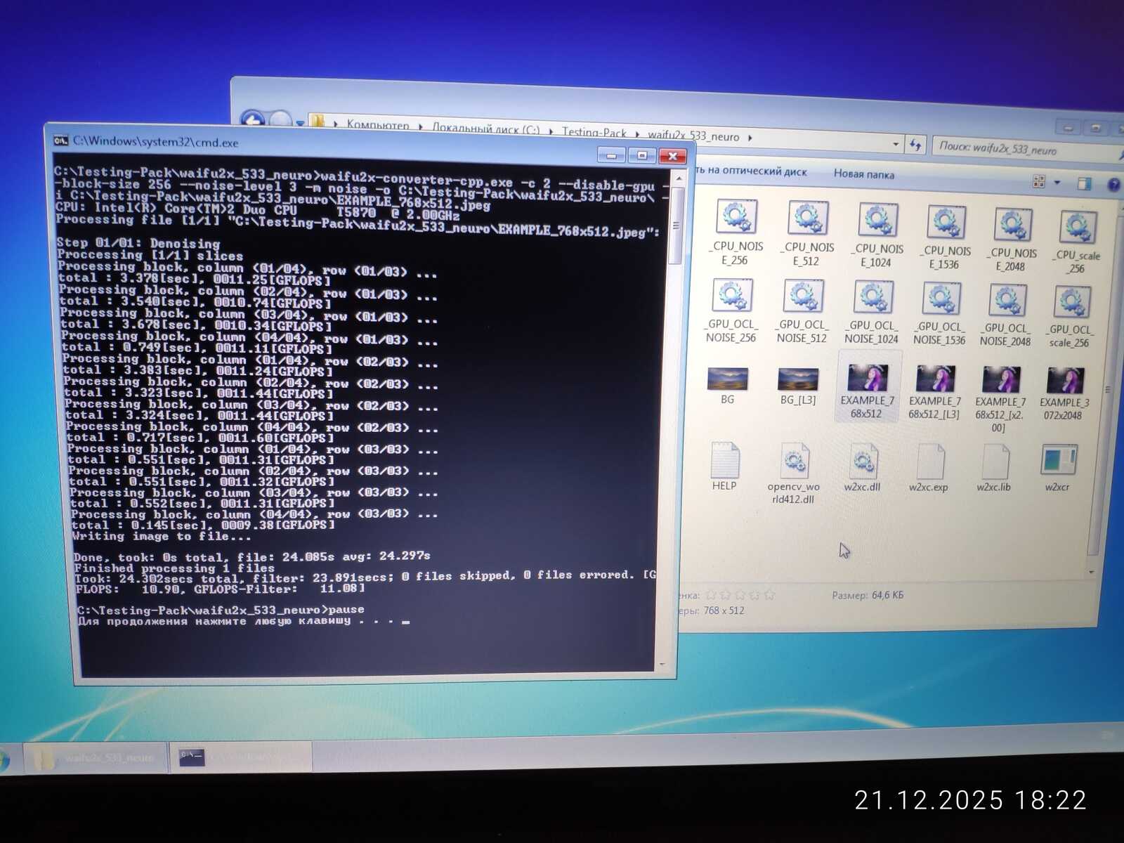 Waifu2X Neuro в среде Windows 7 отработал хорошо на процессоре. А вот на видеокарте OpenCL работает неправильно благодаря плохой реализации OpenCL API в драйвере AMD. А ведь эта нейронная сеть работает даже на древней GeForce 8500GT. Под управлением Linux, как всегда, одни проблемы. Хотя ChimbaBench и запустился, но производительность оказалась печальной. А Waifu2X под Линуксом вообще работает неправильно. Всё же у ядра Linux определённо есть проблемы на конфигурации оборудования MSI CX500.