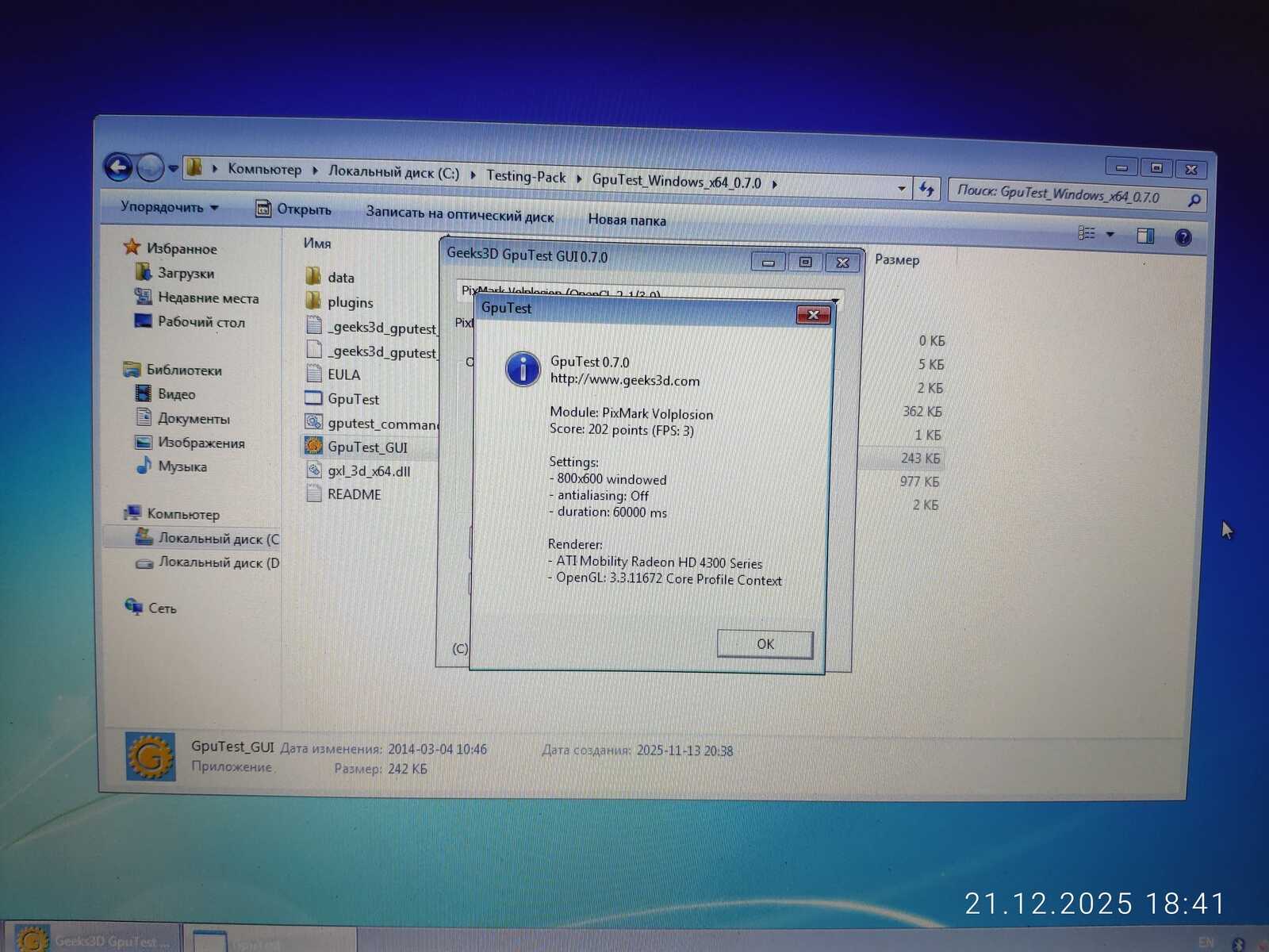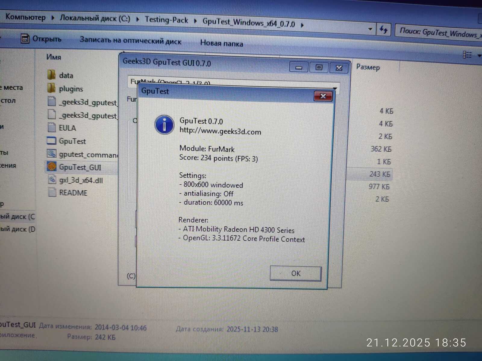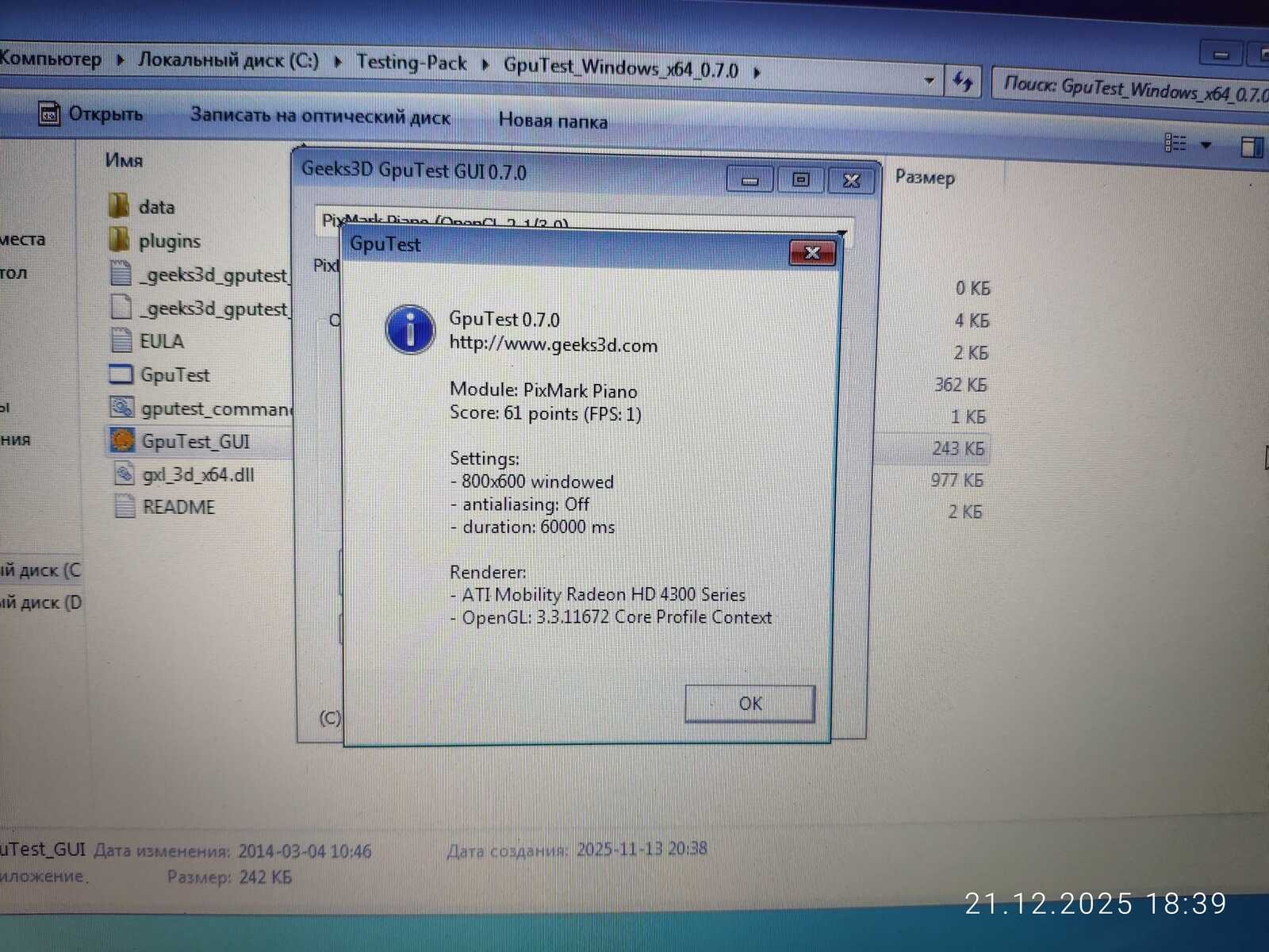GpuTest показывает идентичные результаты, как у ноутбука MSI CX500. Пока чудес не наблюдается.