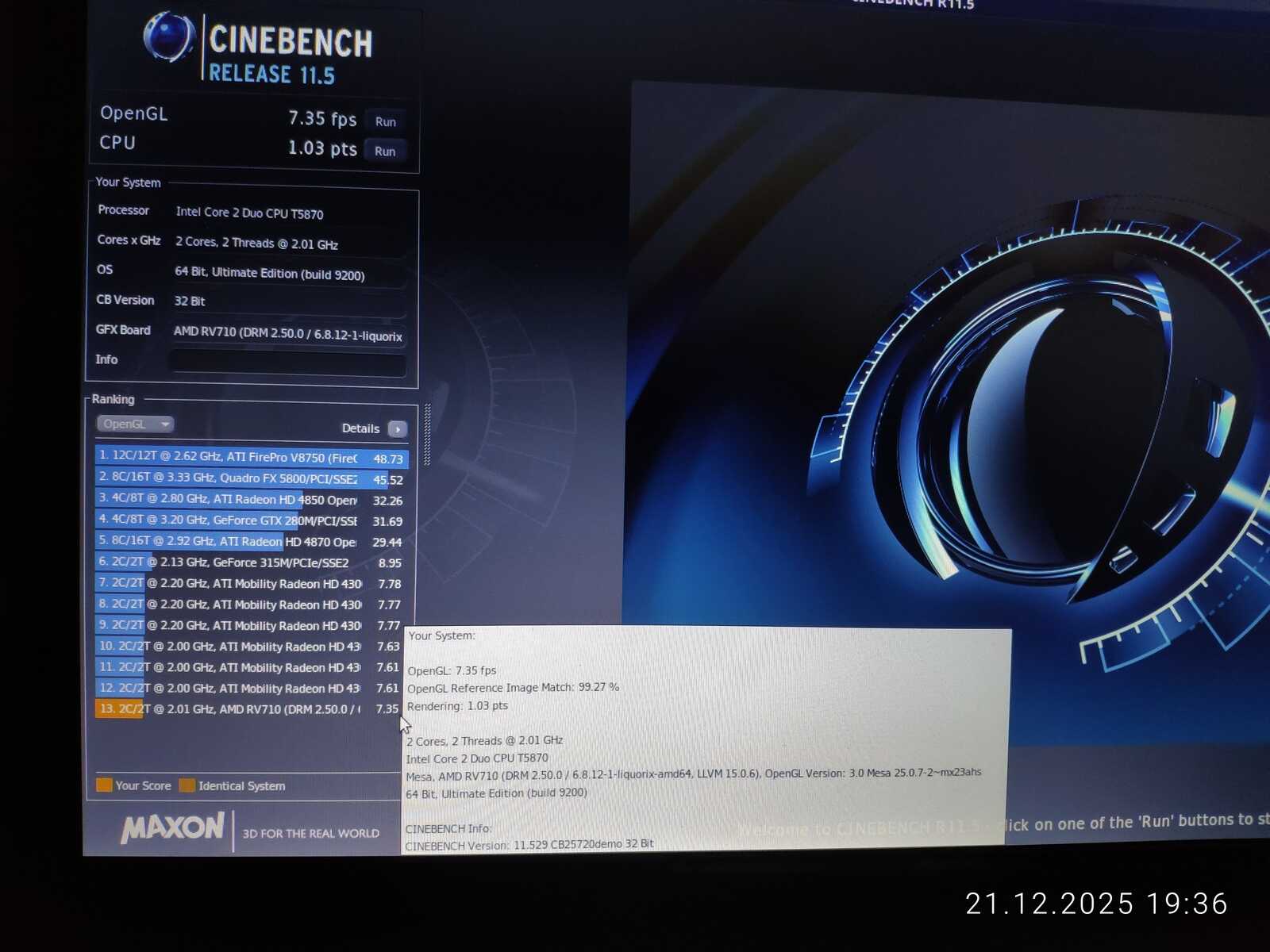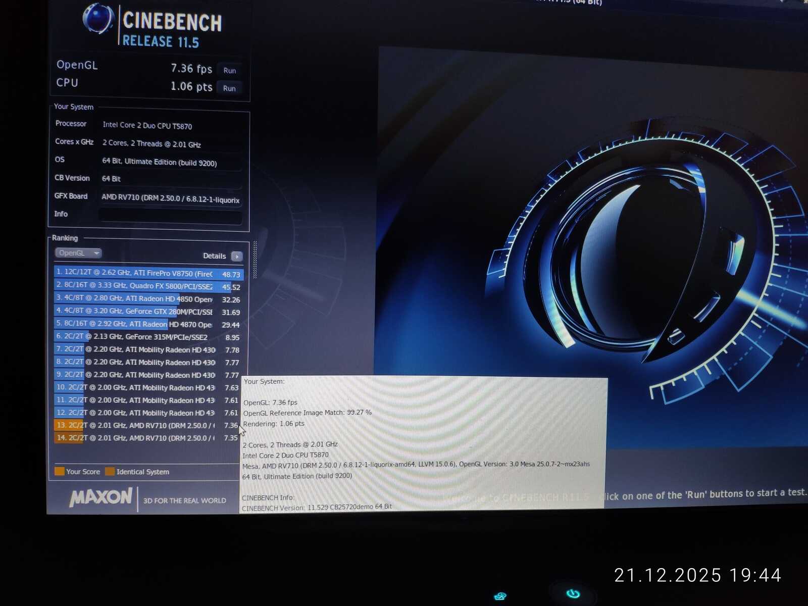 Заканчиваем тестом Cinebench и переходим к Chimbalix.