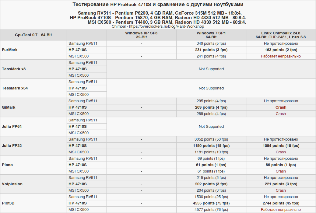 Тестирую ветхий ноутбук HP ProBook 4710S и сравниваю с другими в Windows и Linux