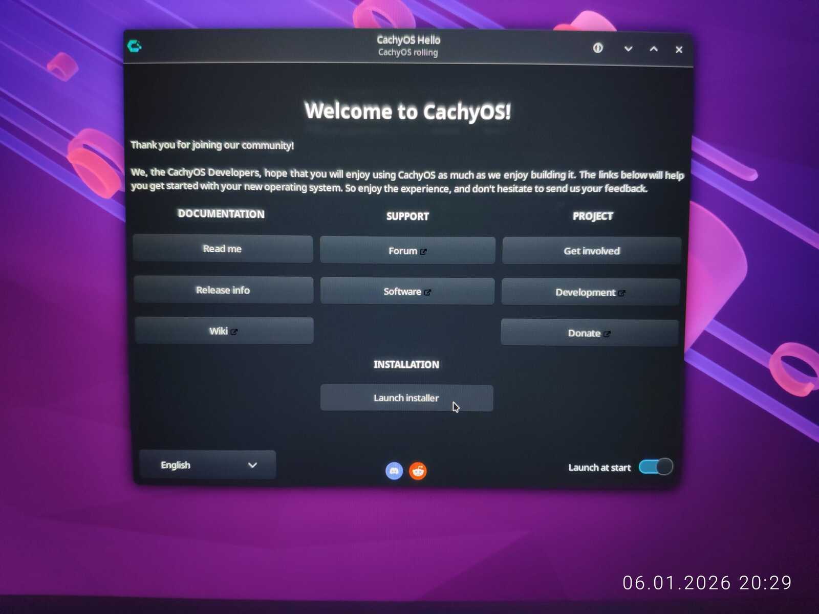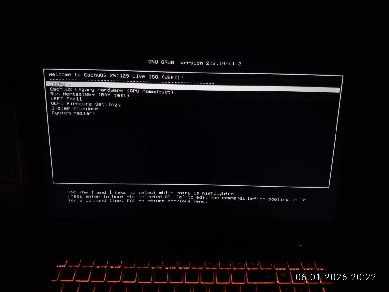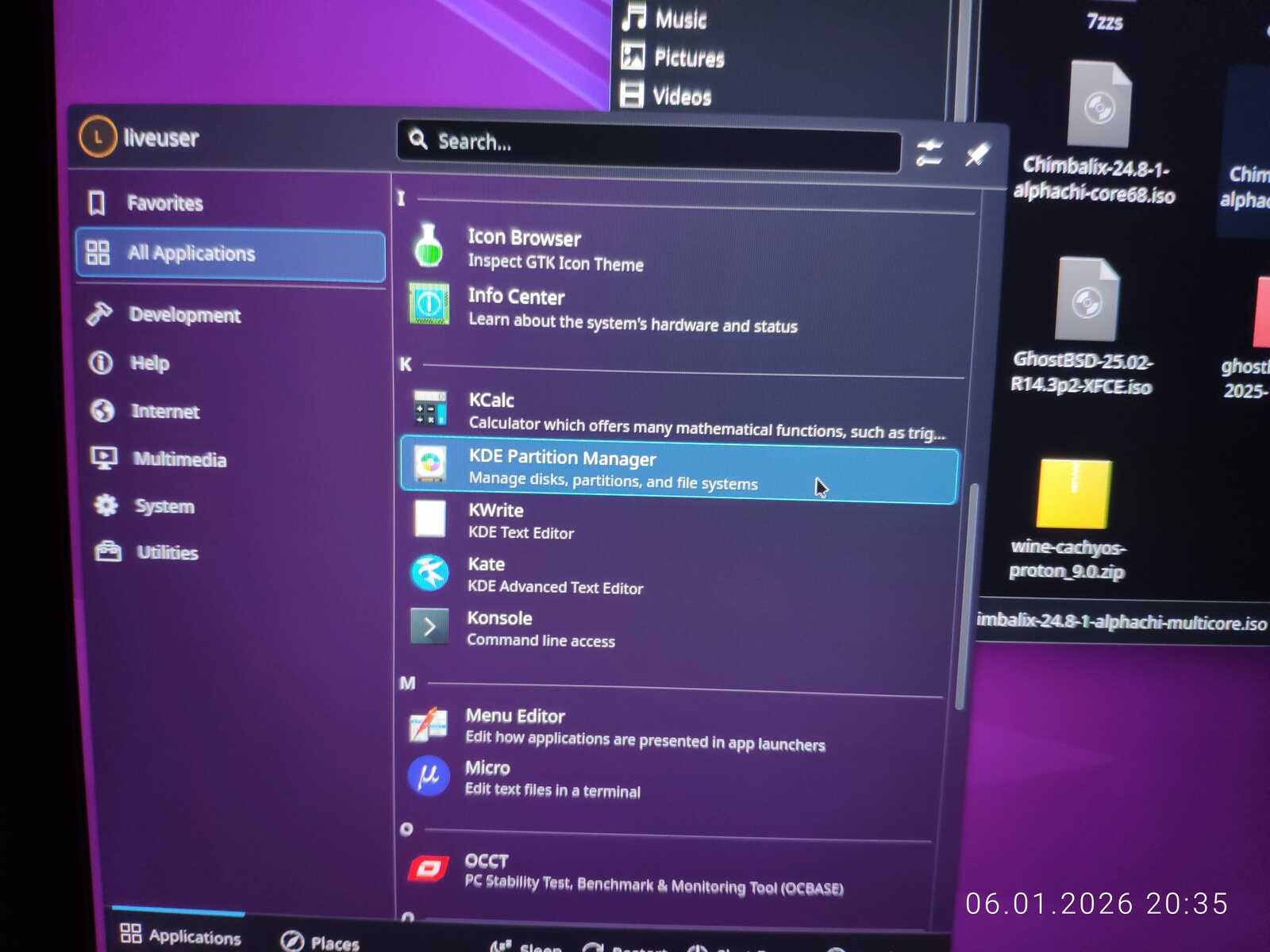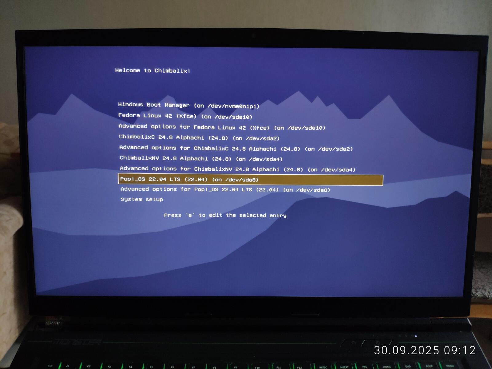 Так как у меня уже установлена Windows 10 и основная ОС Chimbalix на NVMe SSD, в ноутбуке места для CachyOS уже нет. Даже на втором NVMe SSD. Но не беда, у меня же есть третий SSD, на котором установлено пять Линуксов. Хотя Manjaro не отображается и не определяется нормальным загрузчиком, ибо у неё свой извращённый загрузчик. Устанавливать буду вместо Pop!_OS, ибо он полностью провалился в использовании как операционная система. Заодно проверим программу установки проверяемого Линукса.