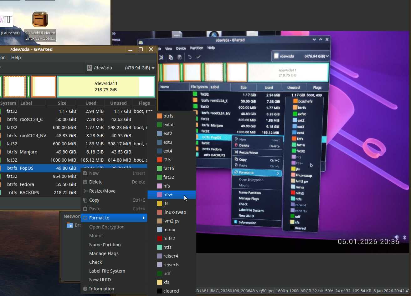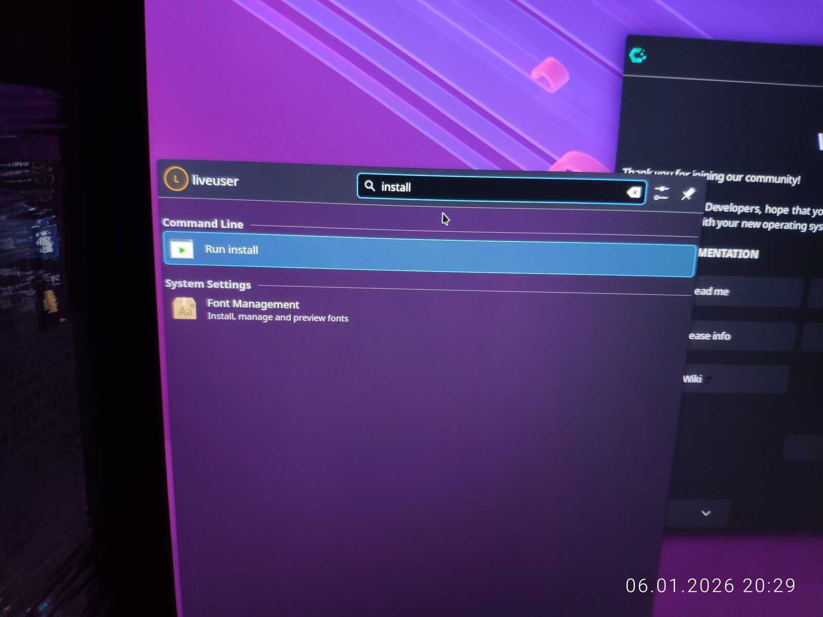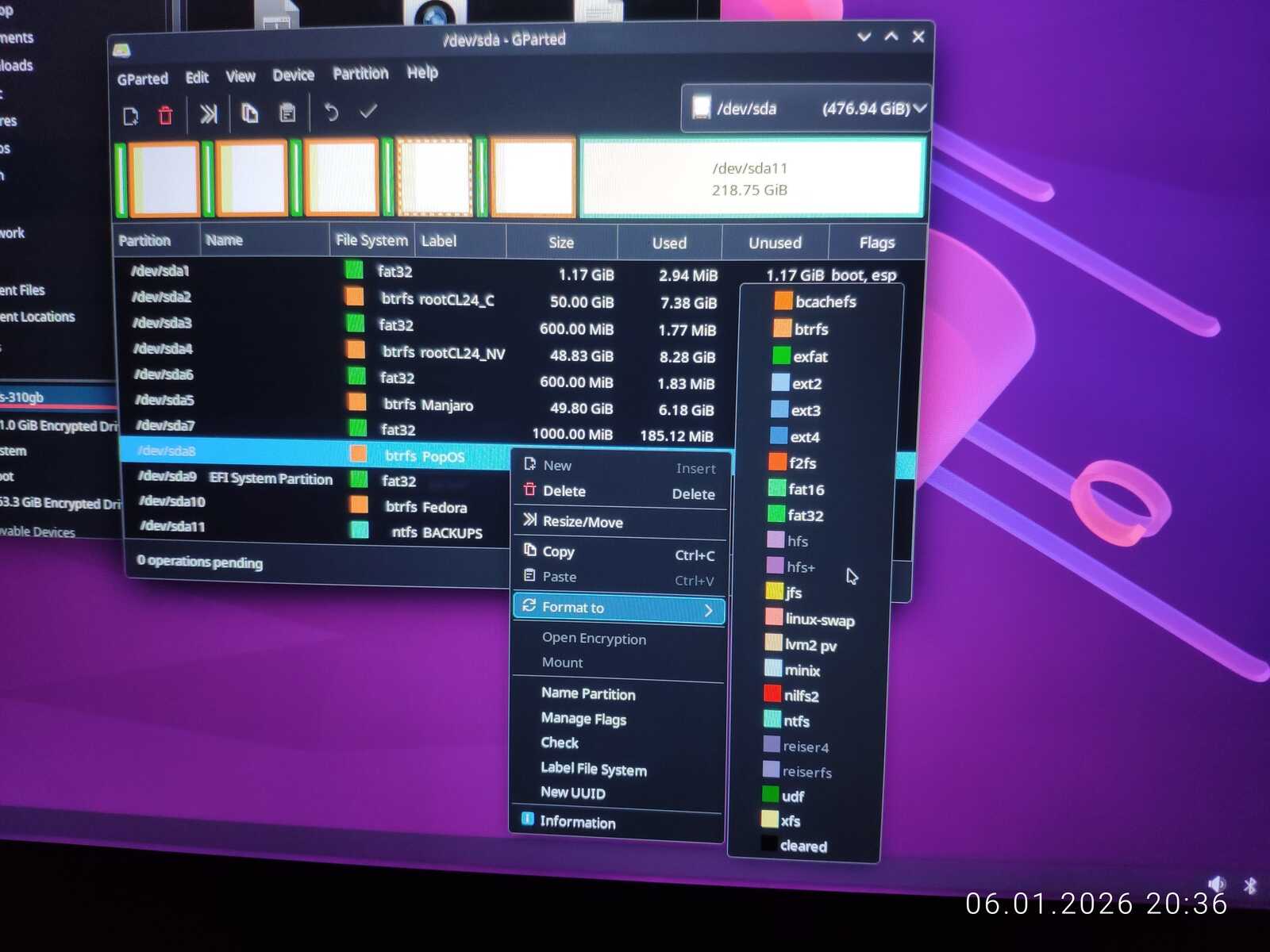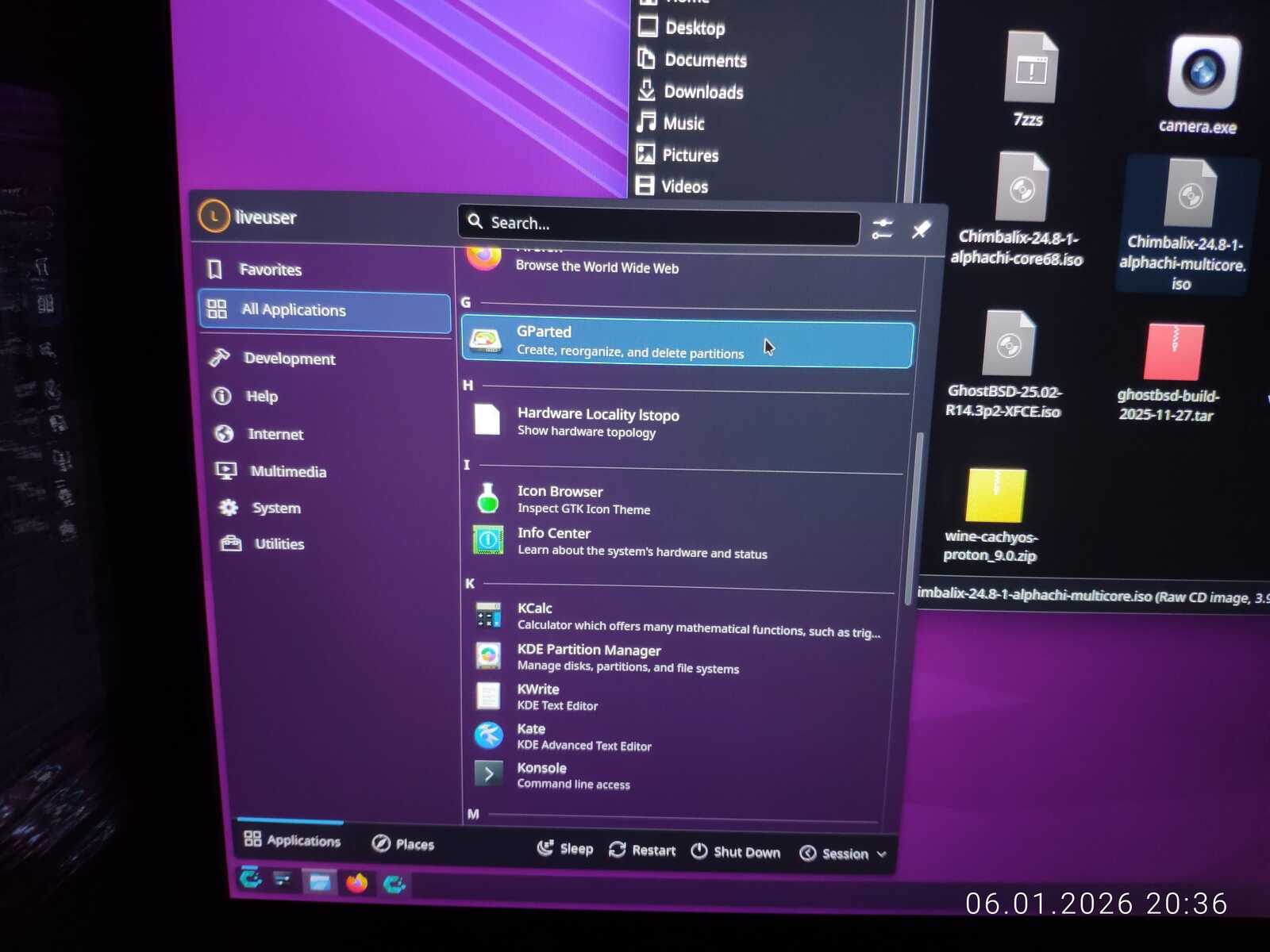 Так как у меня уже установлена Windows 10 и основная ОС Chimbalix на NVMe SSD, в ноутбуке места для CachyOS уже нет. Даже на втором NVMe SSD. Но не беда, у меня же есть третий SSD, на котором установлено пять Линуксов. Хотя Manjaro не отображается и не определяется нормальным загрузчиком, ибо у неё свой извращённый загрузчик. Устанавливать буду вместо Pop!_OS, ибо он полностью провалился в использовании как операционная система. Заодно проверим программу установки проверяемого Линукса.