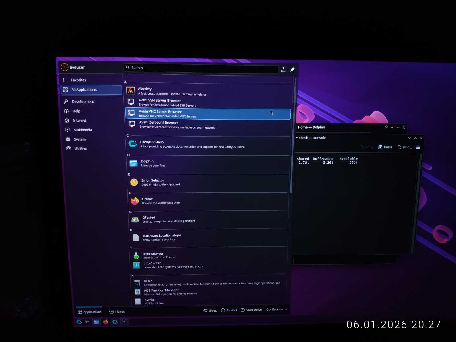 Чистая CachyOS, только что загруженная с флешки, использует целых 5,1 гигабайта оперативной памяти! Это уже фиаско. Если бы у меня было всего 4 гигабайта ОЗУ, я даже просто установить этот Линукс не смог бы, ибо он не запустился бы из-за нехватки оперативной памяти.