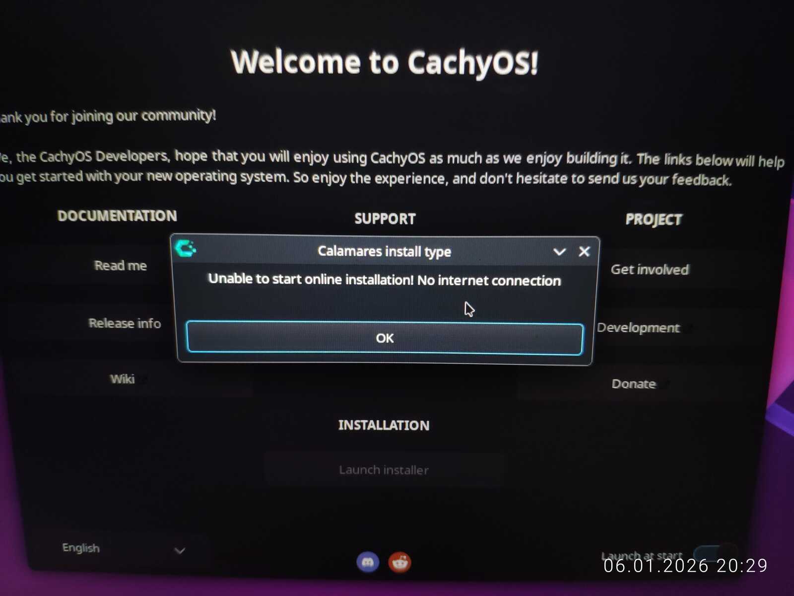Ну что, пора установить CachyOS? Но программа установки отказывается работать! Знаете почему? Да потому что нет подключения к интернету! Это настолько плохой Линукс, что даже установить без интернета невозможно.