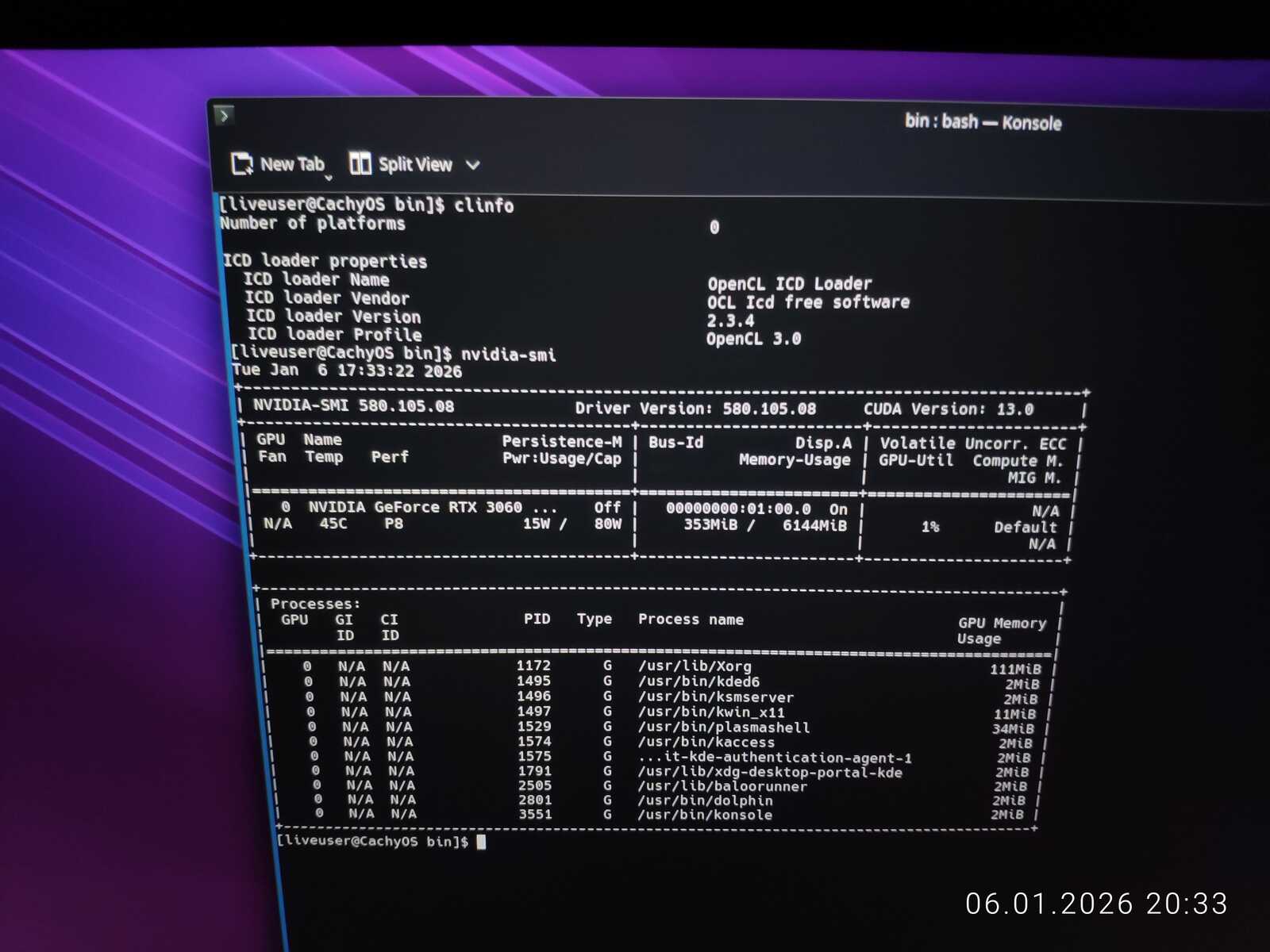 Хотя в моей основной, используемой операционной системе Chimbalix драйвер видеокарты уже устарел и его пора бы обновить. Но OpenCL поддерживается и работает, а у CachyOS — нет.