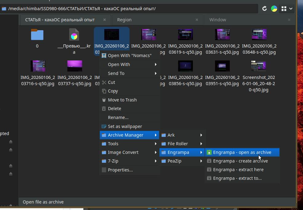 Так что даже драйвер видеокарты прибит к системе криво. Кстати, что там с архиваторами? Да ничего нового. CachyOS не способна открыть даже обычные TAR и ZIP архивы. Нет архиваторов в системе. Даже древняя Windows XP способна открывать ZIP архивы без стороннего ПО. Это ли не позор для современного Линукса?