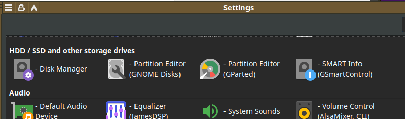 Что тут ещё интересного. Точно! Есть два редактора разделов.