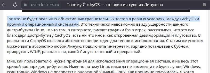 Хотя моё мнение и основано на конкретных фактах, я был настолько низкого мнения о дистрибутиве CachyOS, что сразу отсёк возможность объективного сравнительного тестирования в равных условиях с другими Линуксами. Но что если всё-таки попытаться провести сравнение, несмотря на всю непригодность дистрибутива?