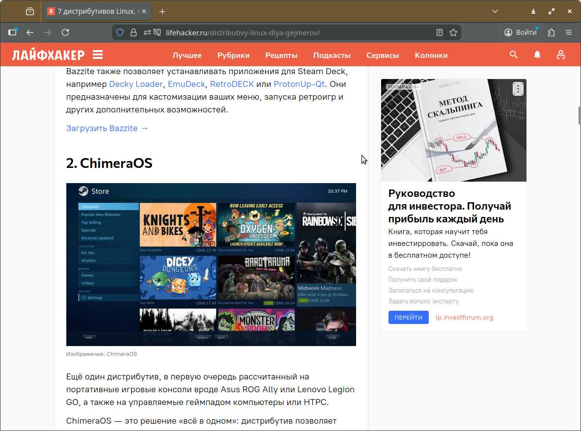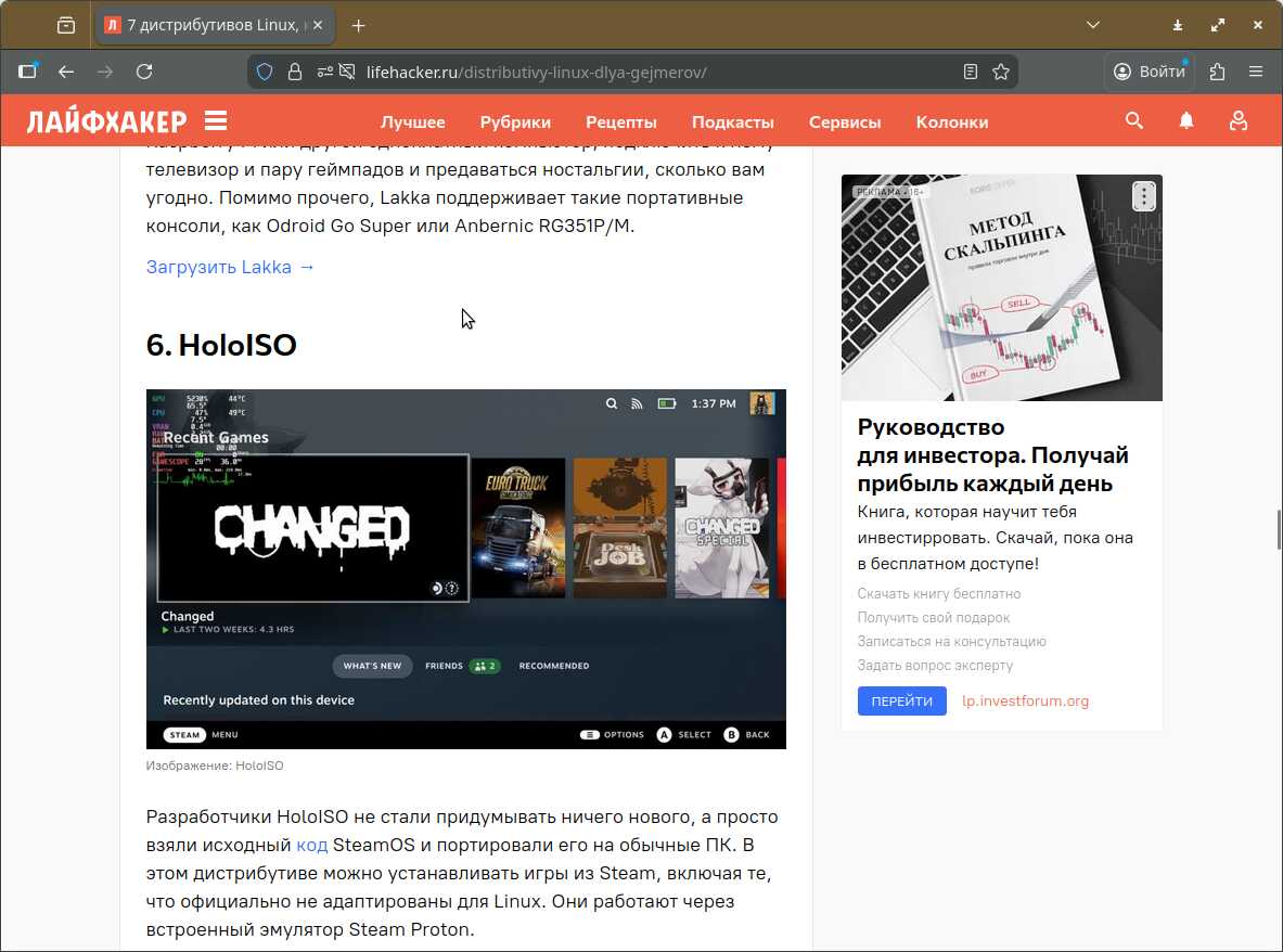 Так же мне хотелось взять в сравнение какой-нибудь игровой Линукс, чтобы был встроенный WINE и вообще оно было хоть немного пригодно для использования. Но первая же статья в Сети оказалась какой-то глупой рекламой Linux, оторванной от реальности.