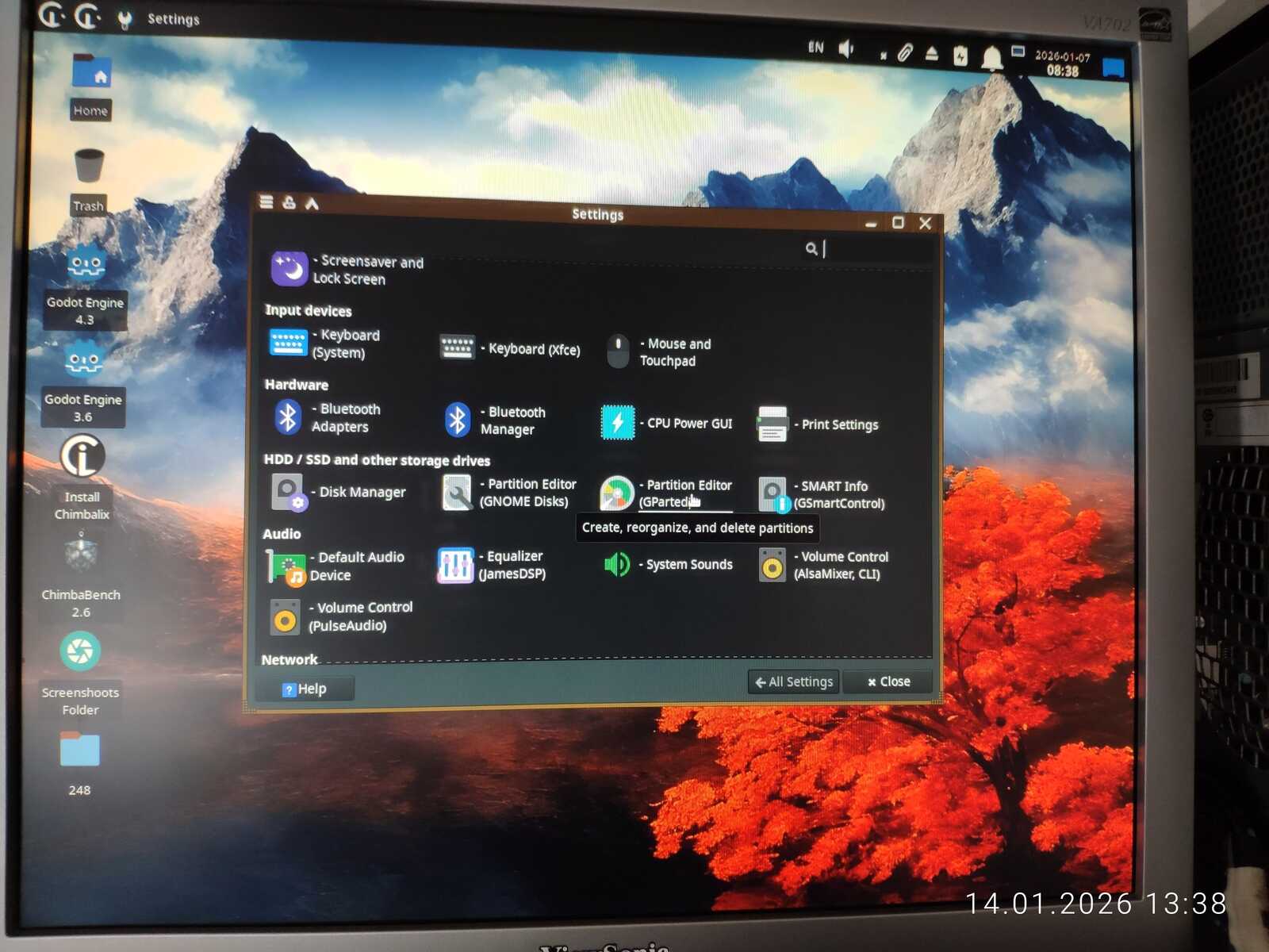 И да, разработчики прямо говорят, что LiveCD предназначен только для установки Линукса, но не использования и проведения тестов. Что весьма иронично, учитывая огромный объём занятой оперативной памяти в LiveCD режиме. Дистрибутив Chimbalix использует в 3-4 раза меньше памяти, но при этом в LiveCD режиме способен почти полноценно работать.