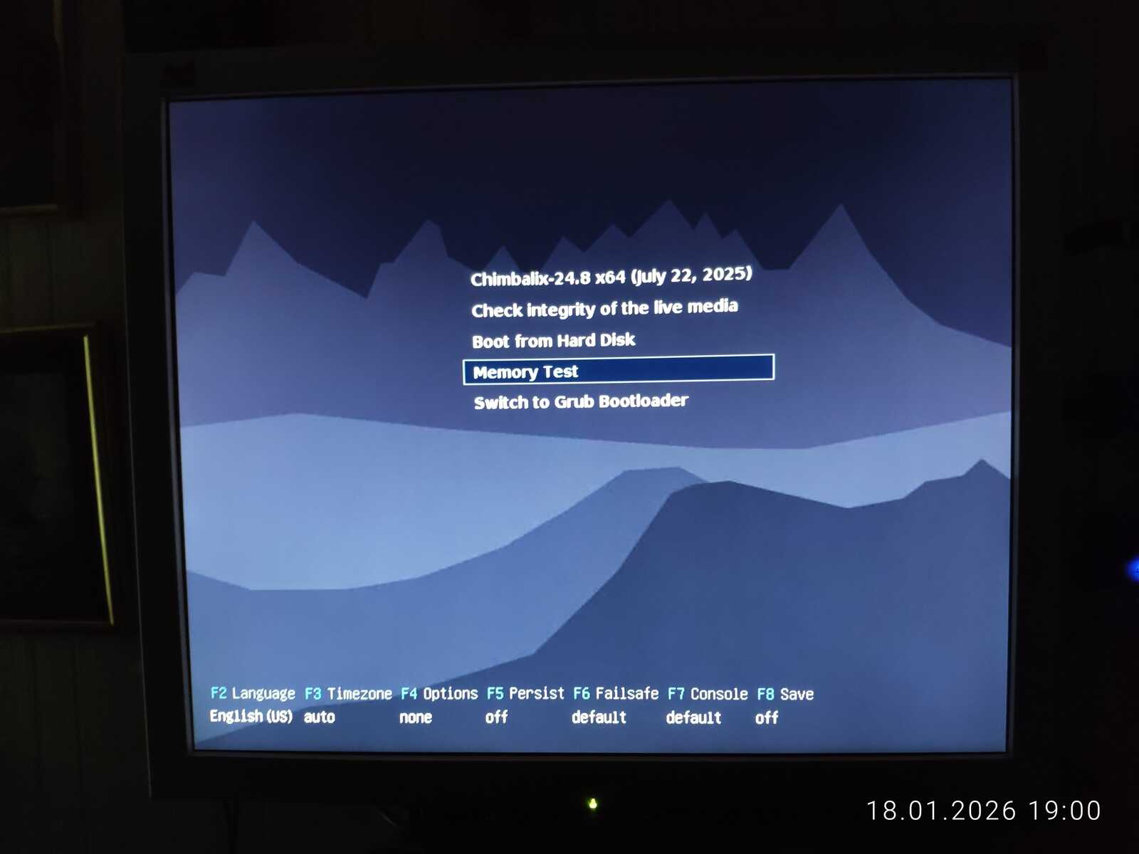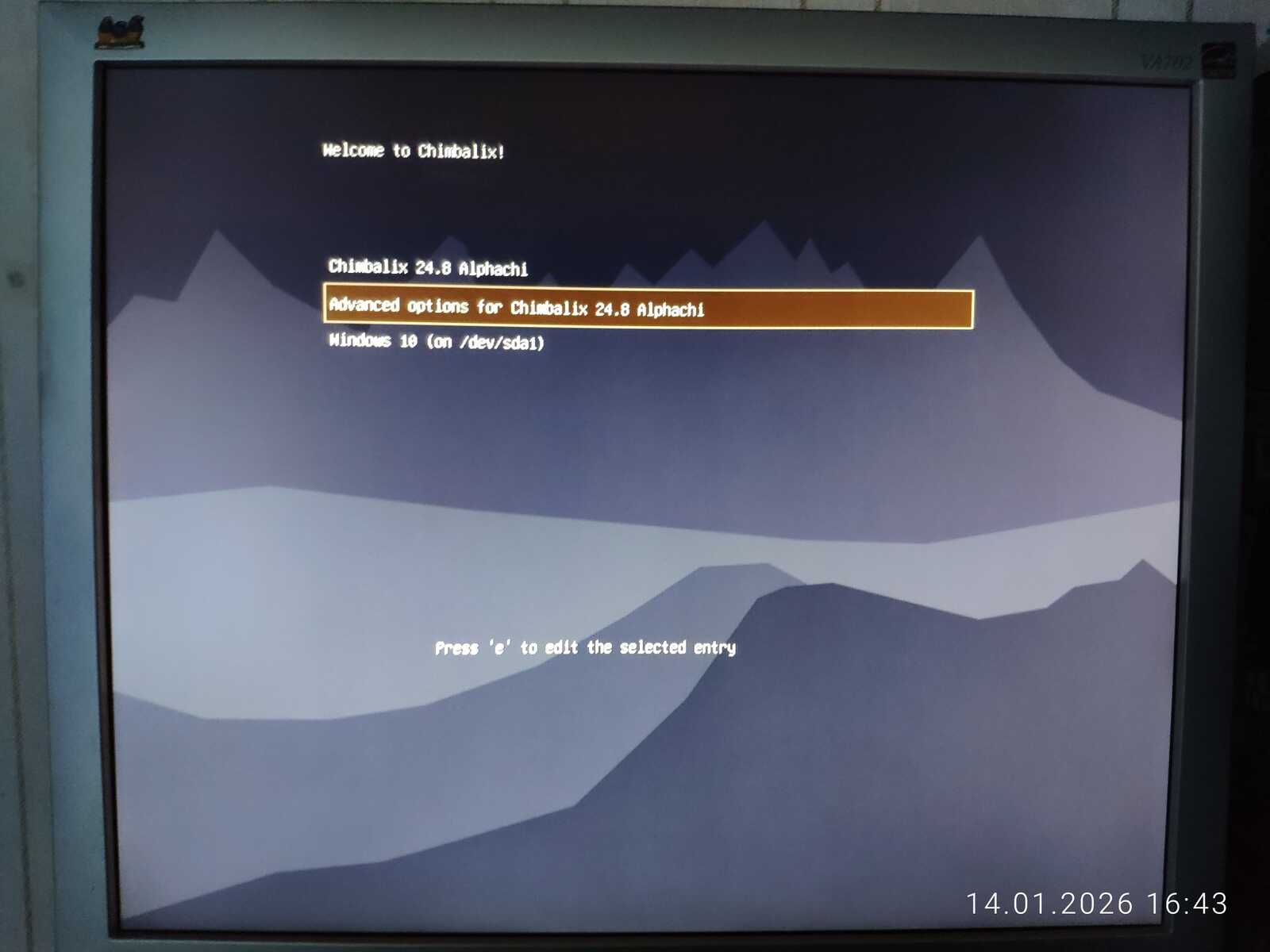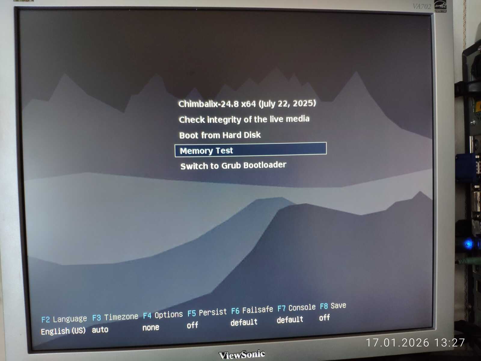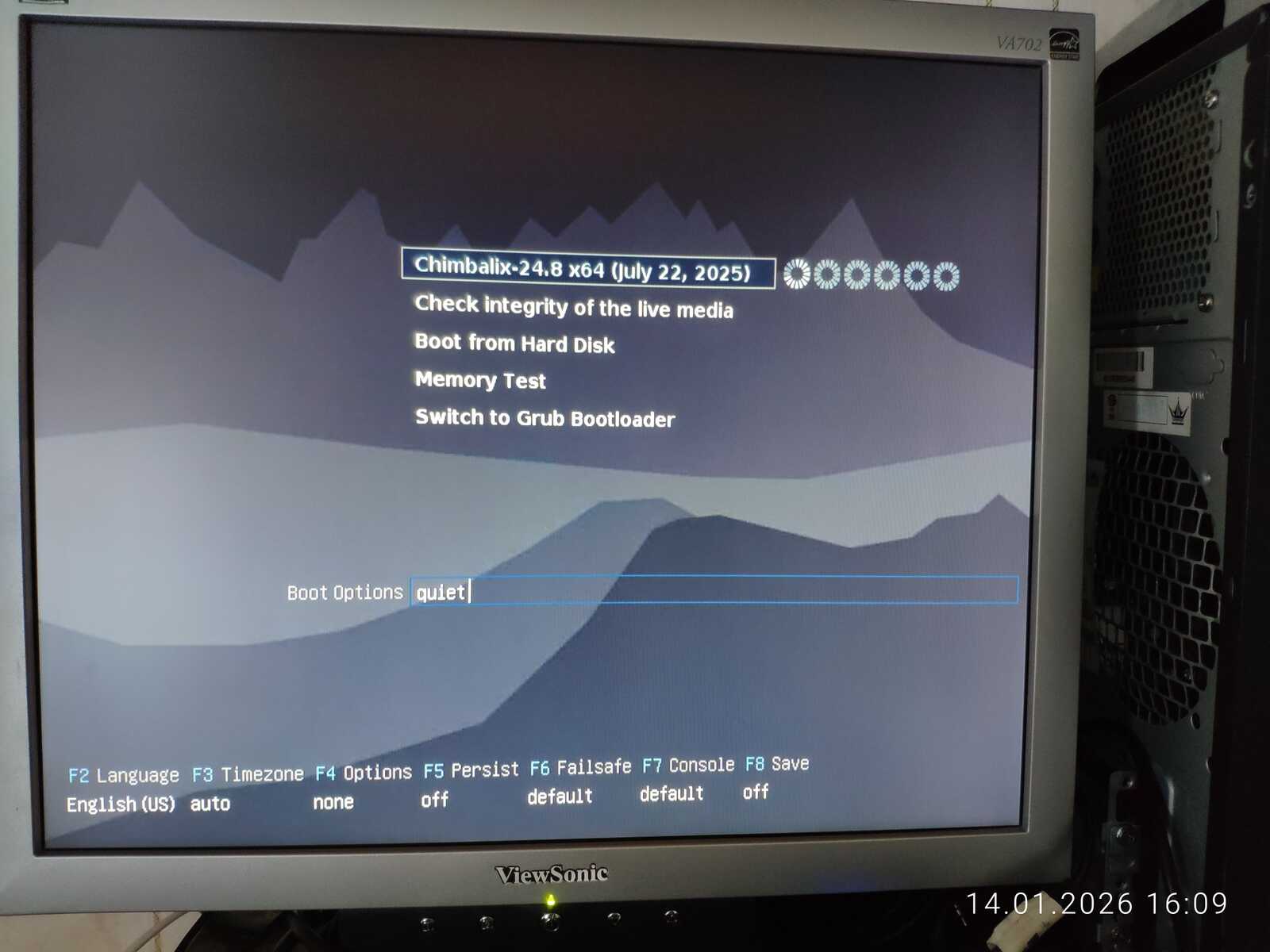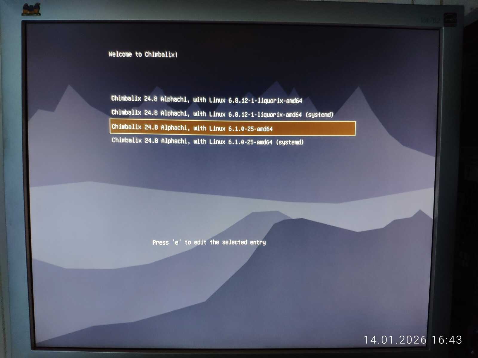 В любом случае загрузка началась. Из имени файла непонятно, что именно мне подсунули и зачем вообще было создано меню выбора конфигурации системы. Только размер файла пугает. Будет обидно, если с таким размером образа, этот Линукс окажется ущербным.