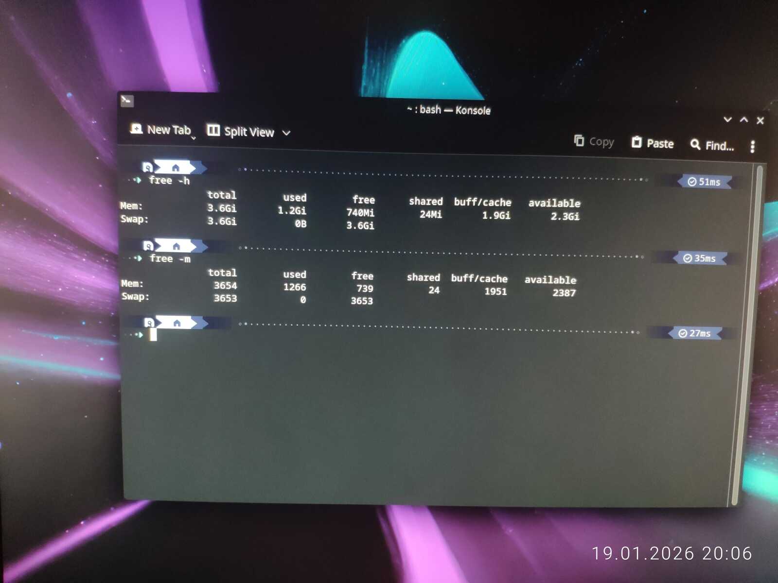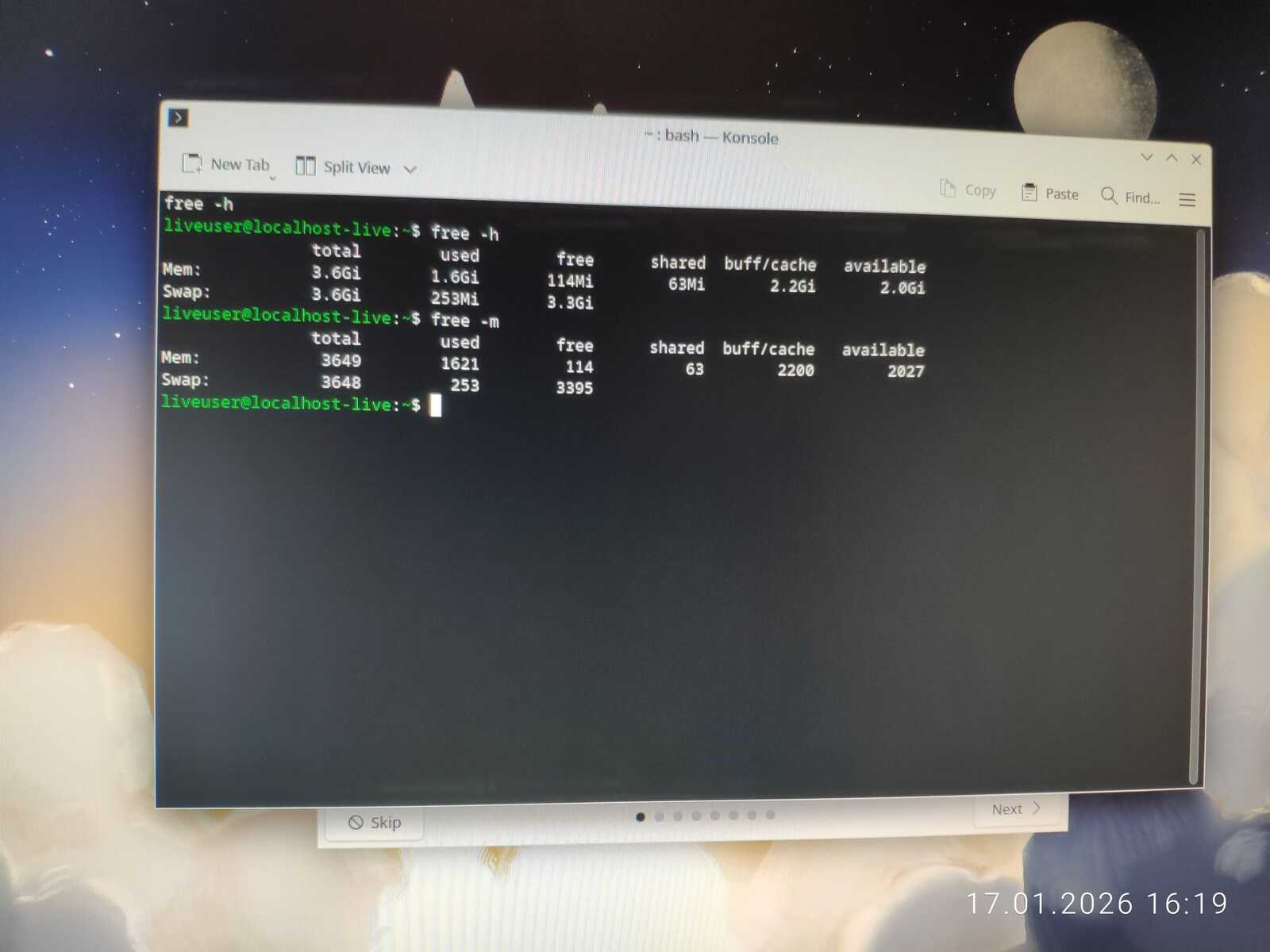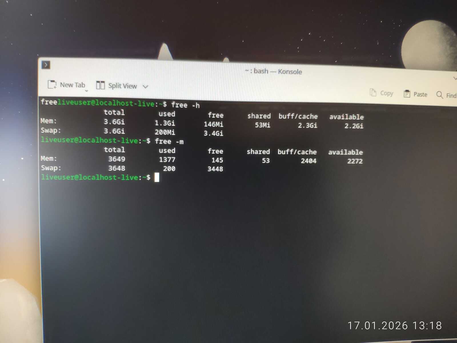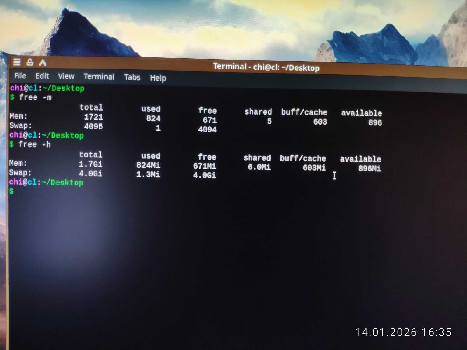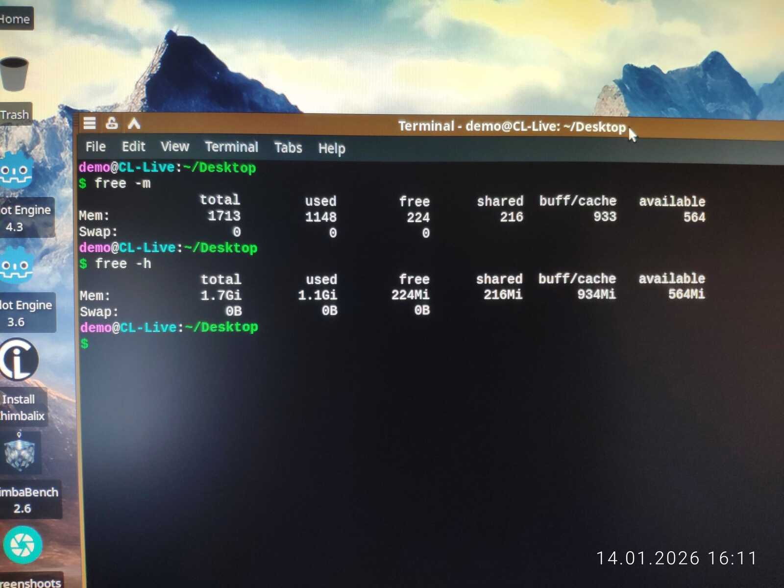 Так как запуск и установка на ПК с двумя гигабайтами ОЗУ может иметь лишь два варианта ответа, я предусмотрел сбор конкретных данных занятой памяти командой free. Использовать буду терминальную команду, по той простой причине, что не в каждом Линуксе есть Диспетчер Задач из коробки. Да и такие утилиты могут съедать много оперативной памяти в некоторых дистрибутивах, по причине очень плохой оптимизации софта для Linux.