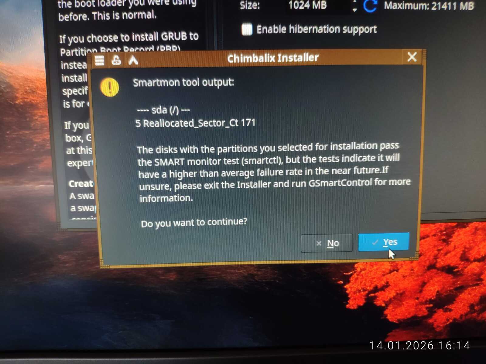 Запускаю программу установки Chimbalix. С настройками клавиатуры полный порядок. С разметкой диска тоже без проблем. На диске есть некоторое количество переназначенных секторов, но это нормально для HDD.
