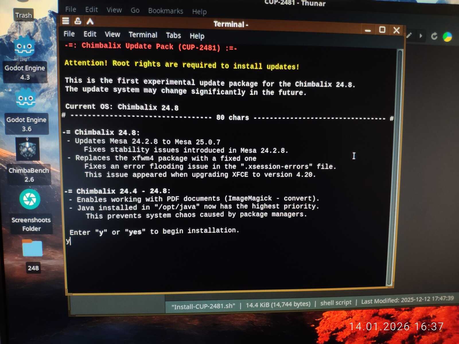 Есть вероятность, что не только Mesa3D версии 24.2.8 крайне поломанная (решается обновлением CUP 2481) но и пакет firmware-amd-graphics, установленный в дистрибутиве Chimbalix 24.8 из коробки. Если мне повезёт и обнаружу с тестовым ПК аномально низкую производительность с видеокартами AMD, значит, будет смысл установить другие версии некоторых пакетов. Но это уже будет видно в процессе использования.