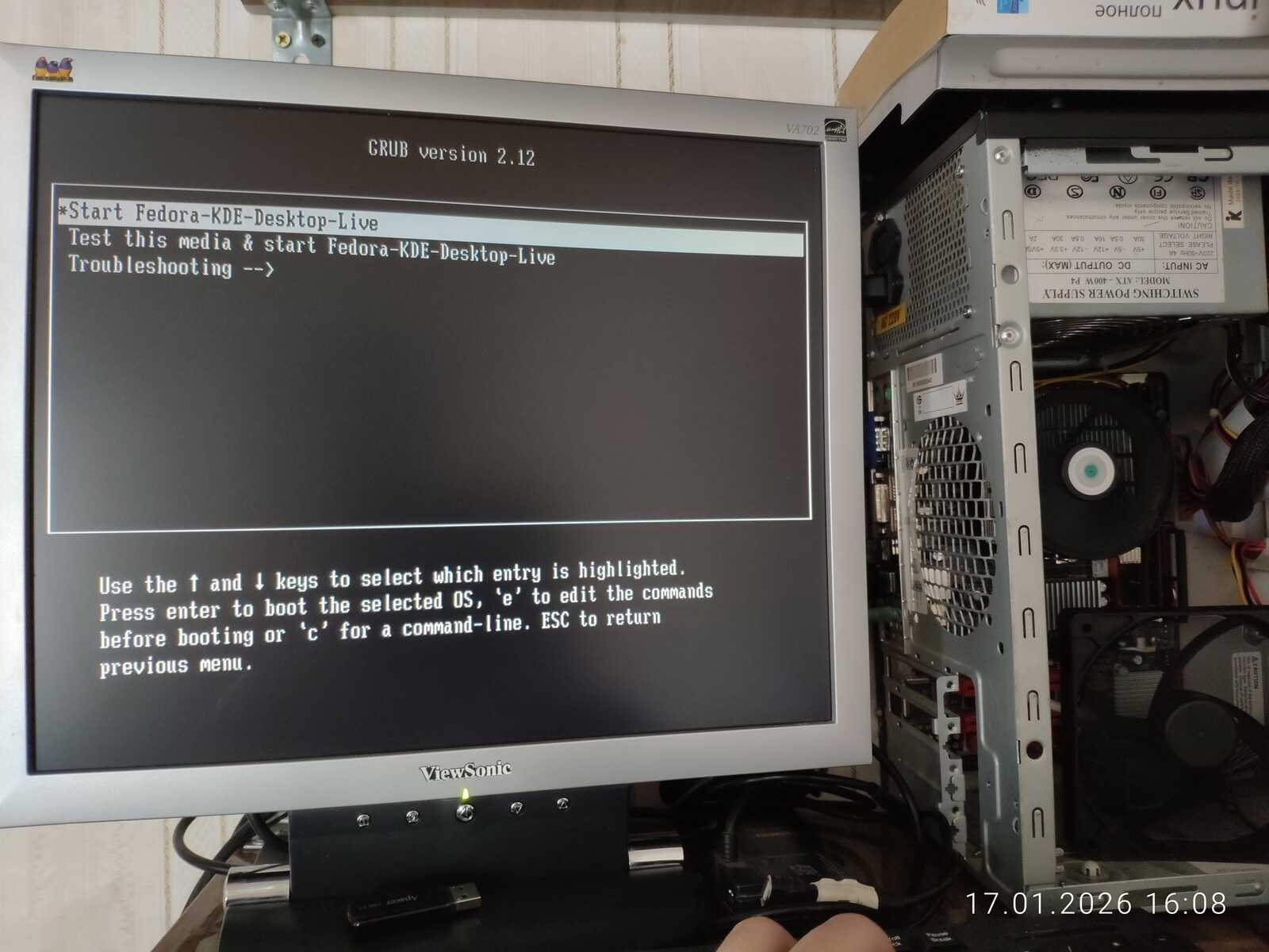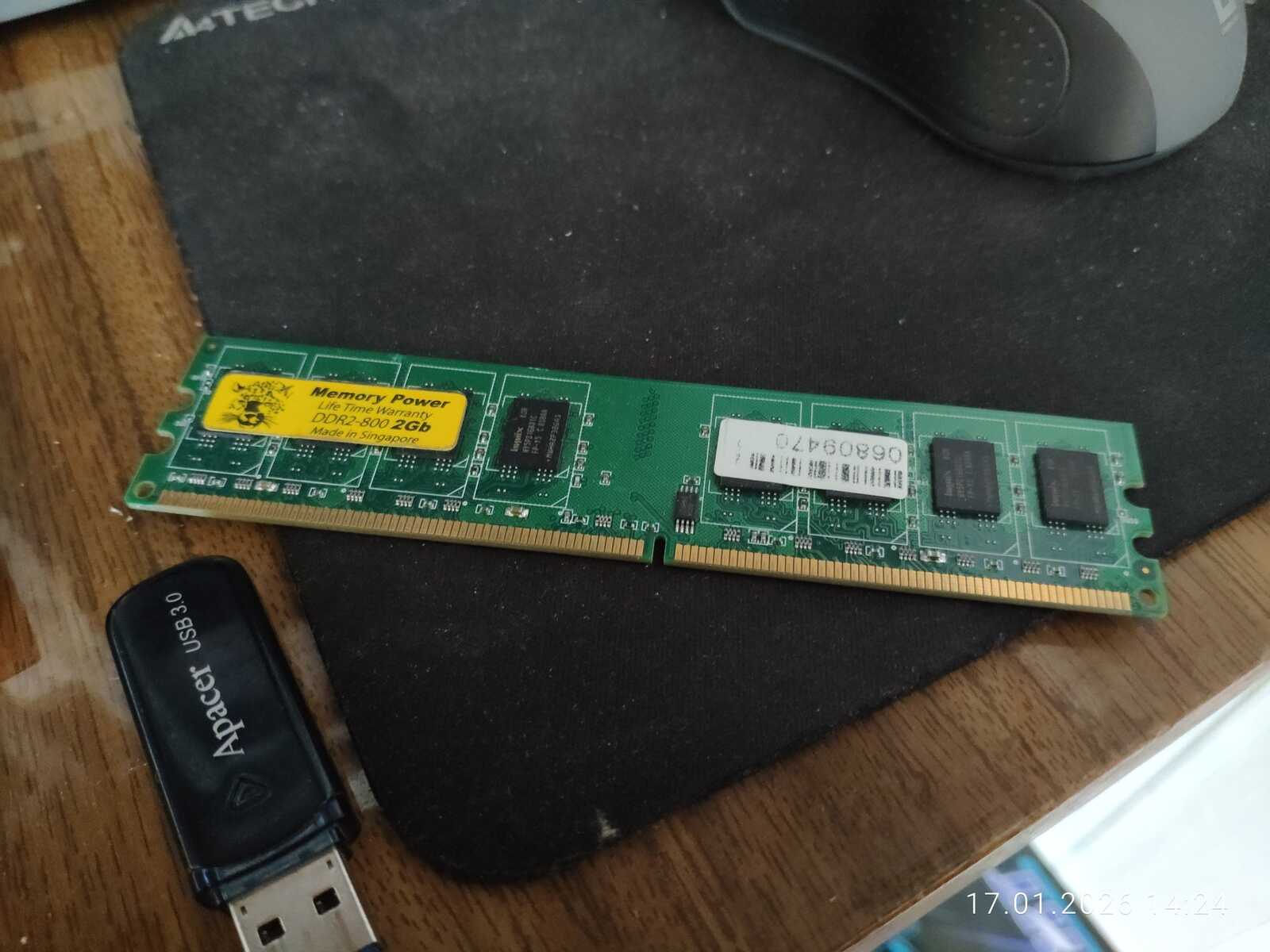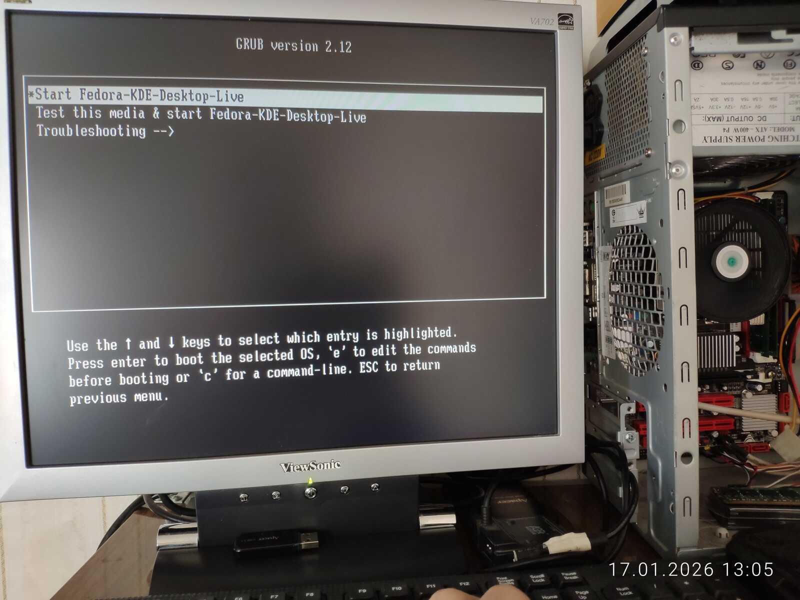 Вставляю второй модуль памяти на 2 гигабайта в компьютер. Теперь установлено 4 гигабайта оперативной памяти. Правда, дистрибутиву Fedora 43 это не сильно помогло. Первая загрузка длилась более получаса и я решил флешку вставить без USB удлинителя. И проблема оказалась не в USB удлинителе. Но об этом позже. Со второго раза Fedora запустиласьдо рабочего стола за 10 минут.