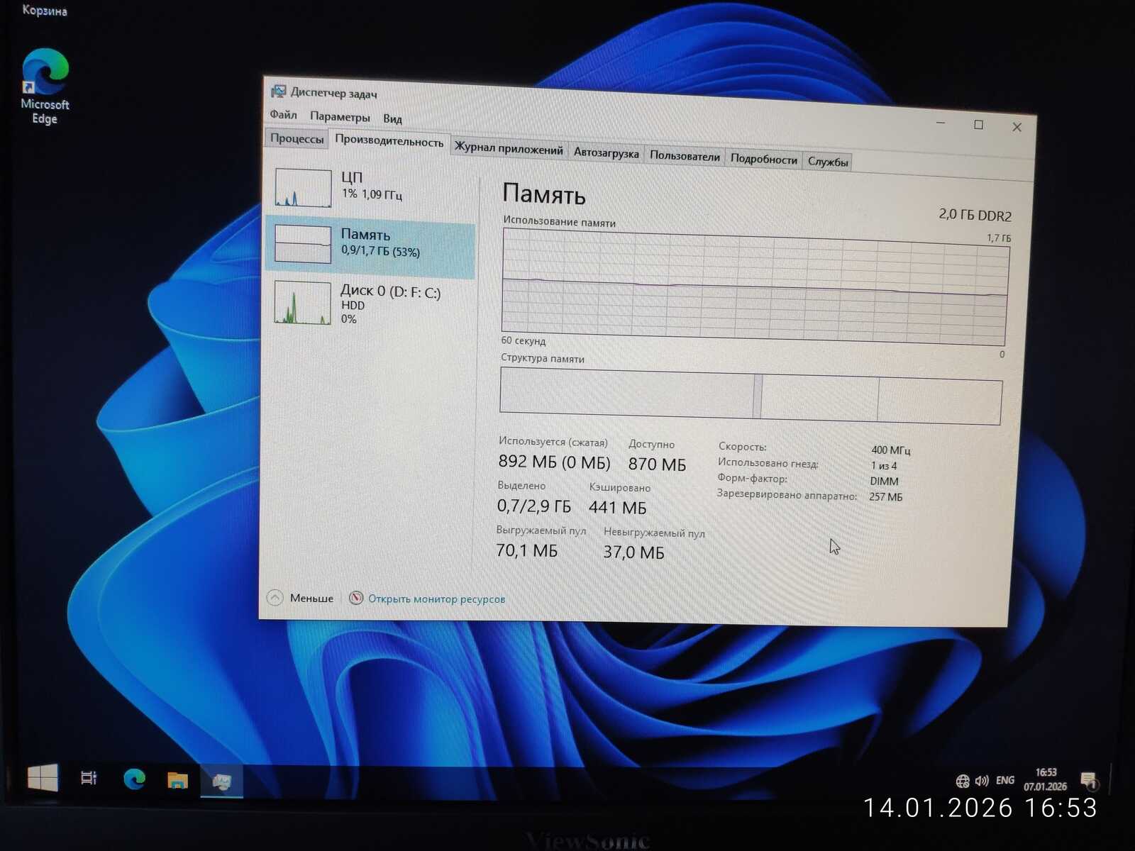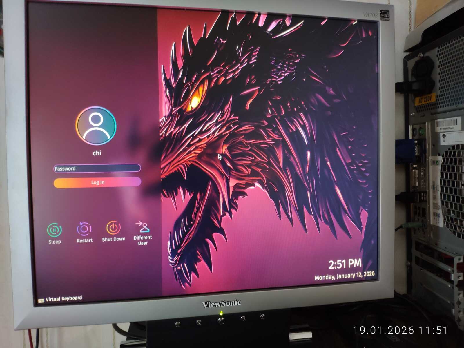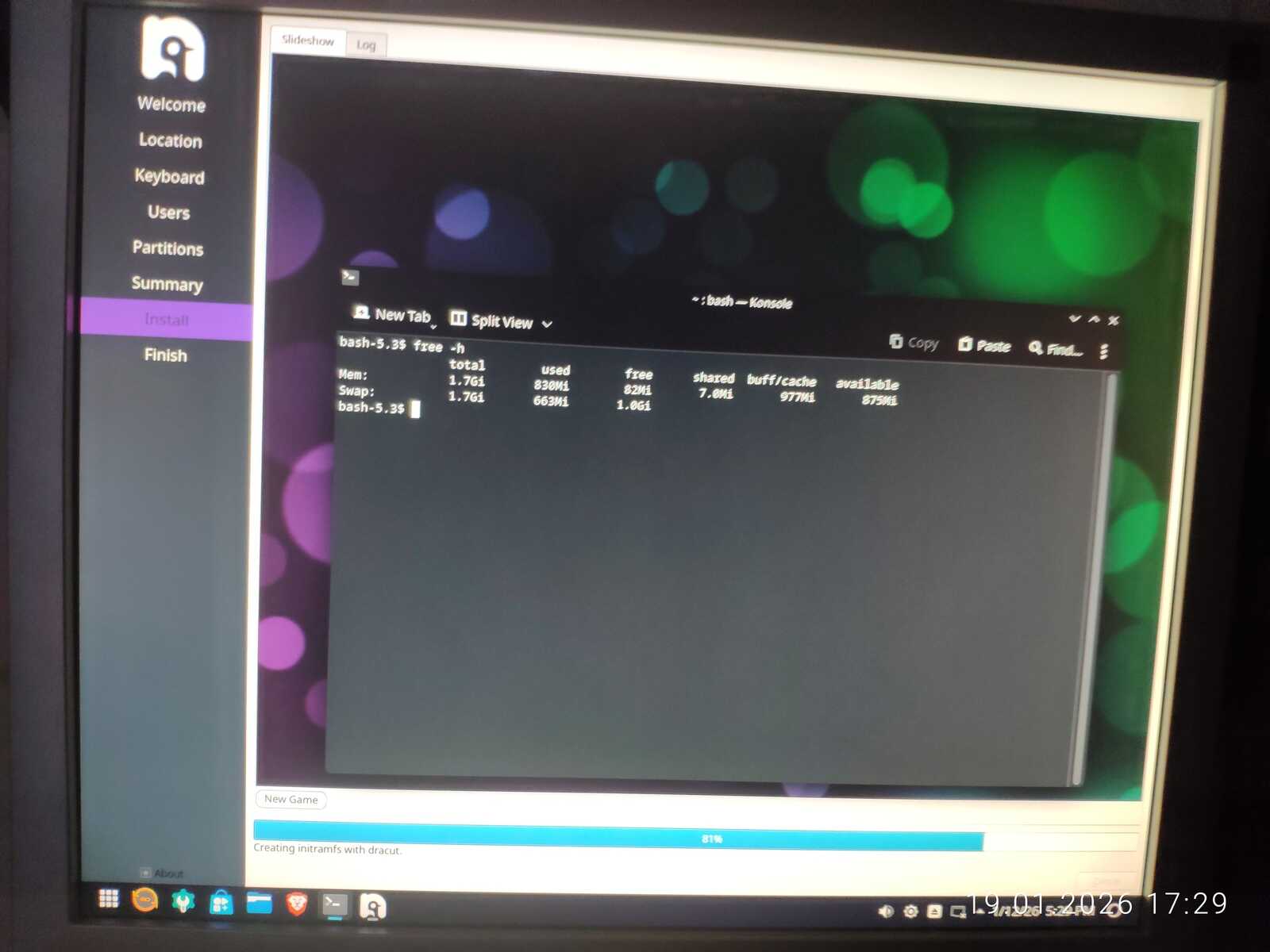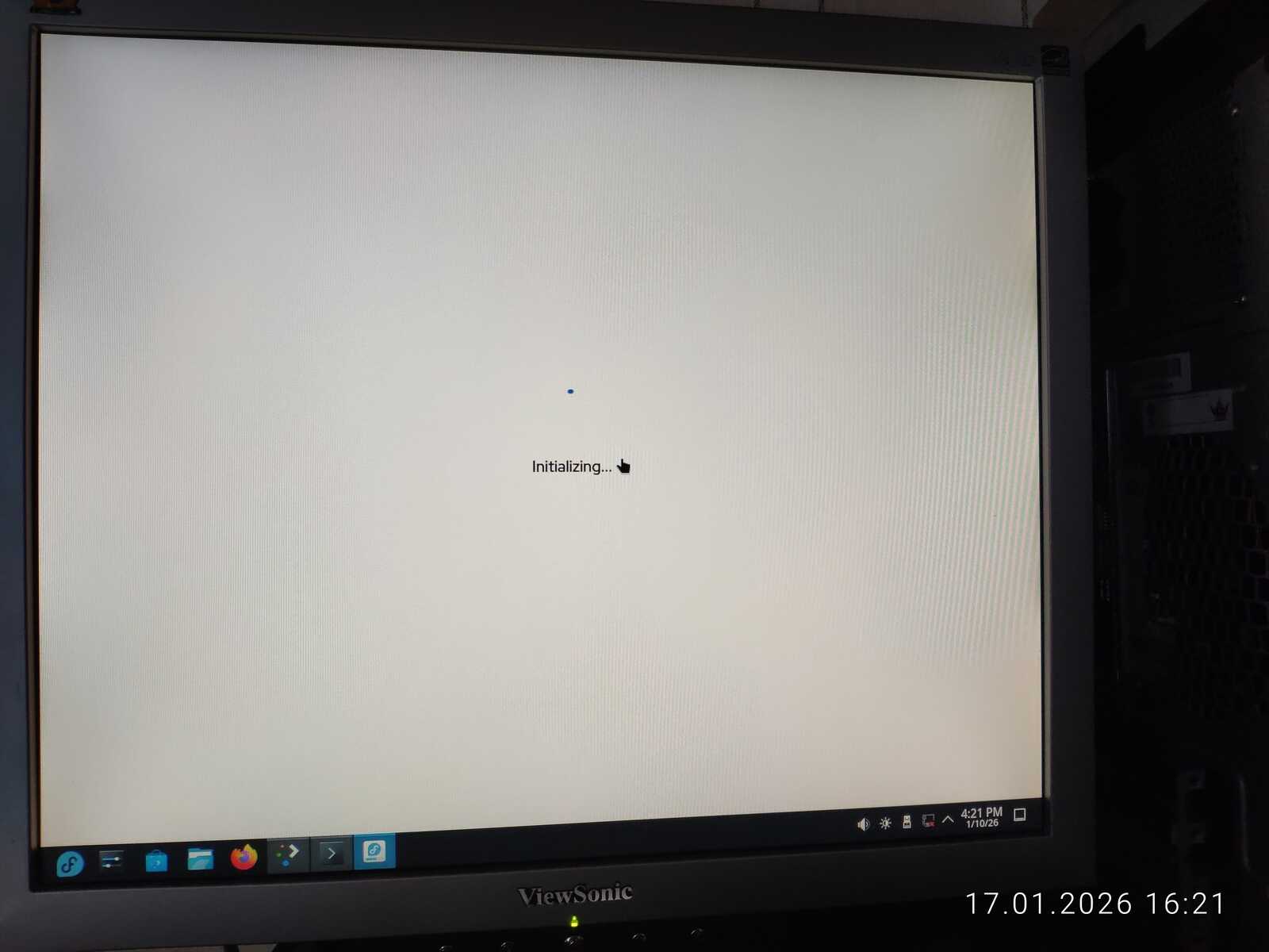 Вставляю второй модуль памяти на 2 гигабайта в компьютер. Теперь установлено 4 гигабайта оперативной памяти. Правда, дистрибутиву Fedora 43 это не сильно помогло. Первая загрузка длилась более получаса и я решил флешку вставить без USB удлинителя. И проблема оказалась не в USB удлинителе. Но об этом позже. Со второго раза Fedora запустиласьдо рабочего стола за 10 минут.