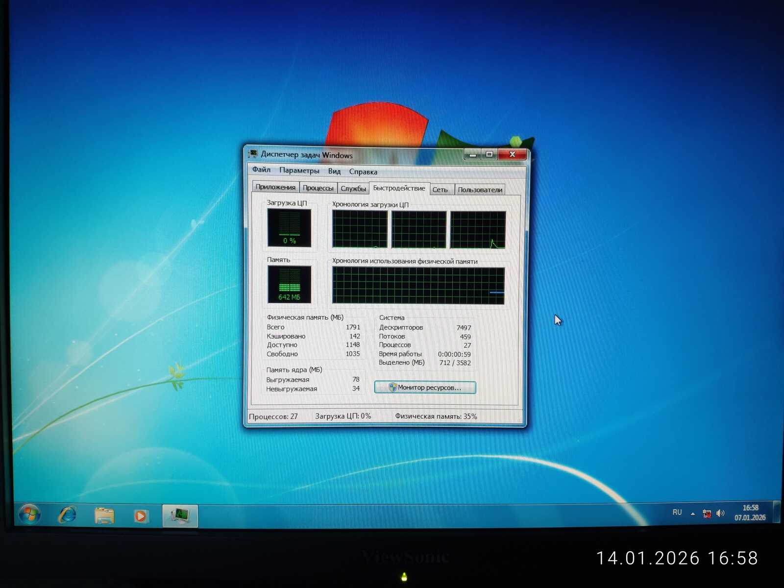 Давайте перейдём к тестовому компьютеру с графикой AMD Radeon. Очень надеюсь, что эти два игровых Линукса хотя бы запустятся. Bazzite запускался целую вечность. Памяти занято порядка 1,4 гигабайт из 1,7 доступных.