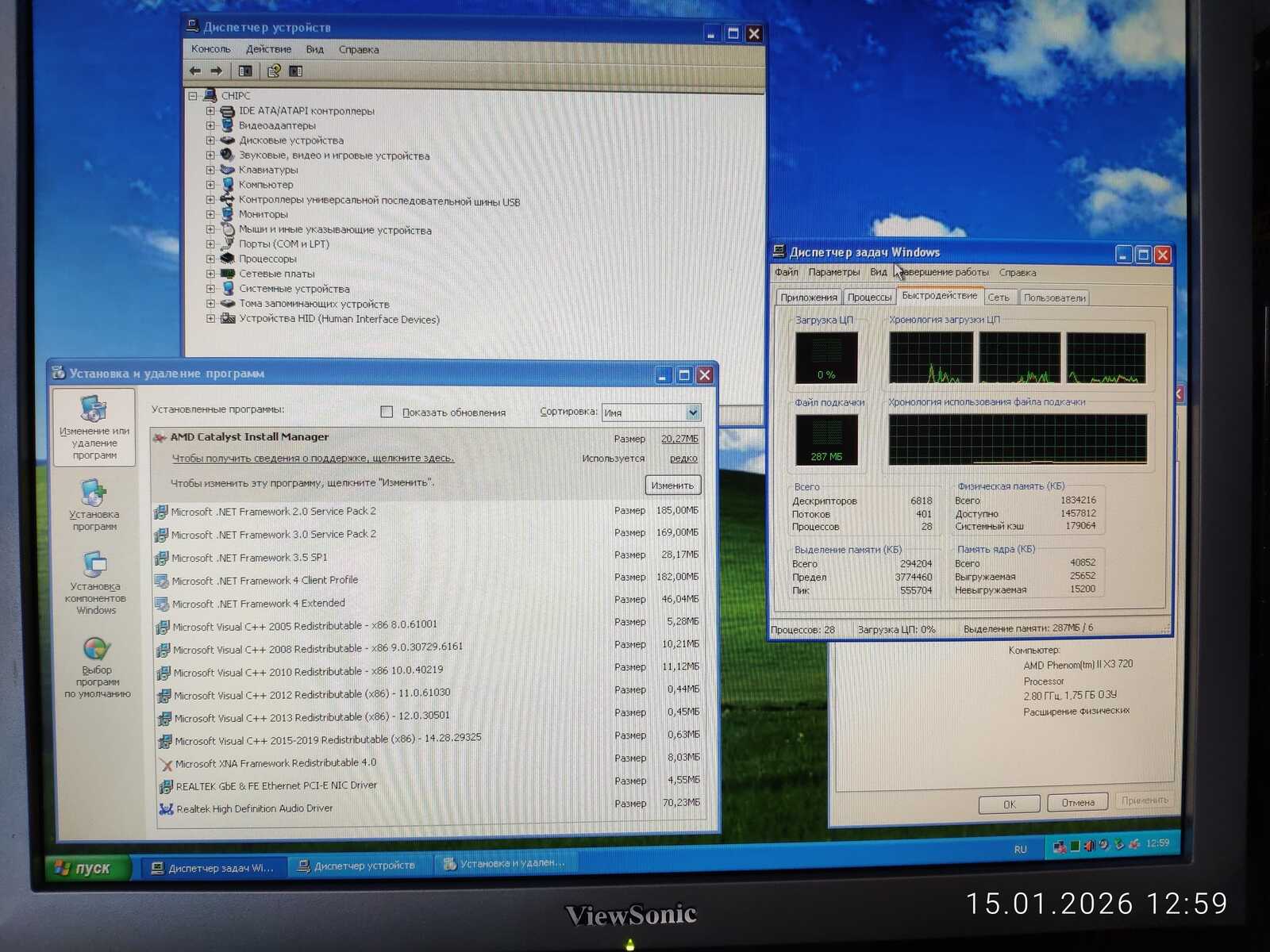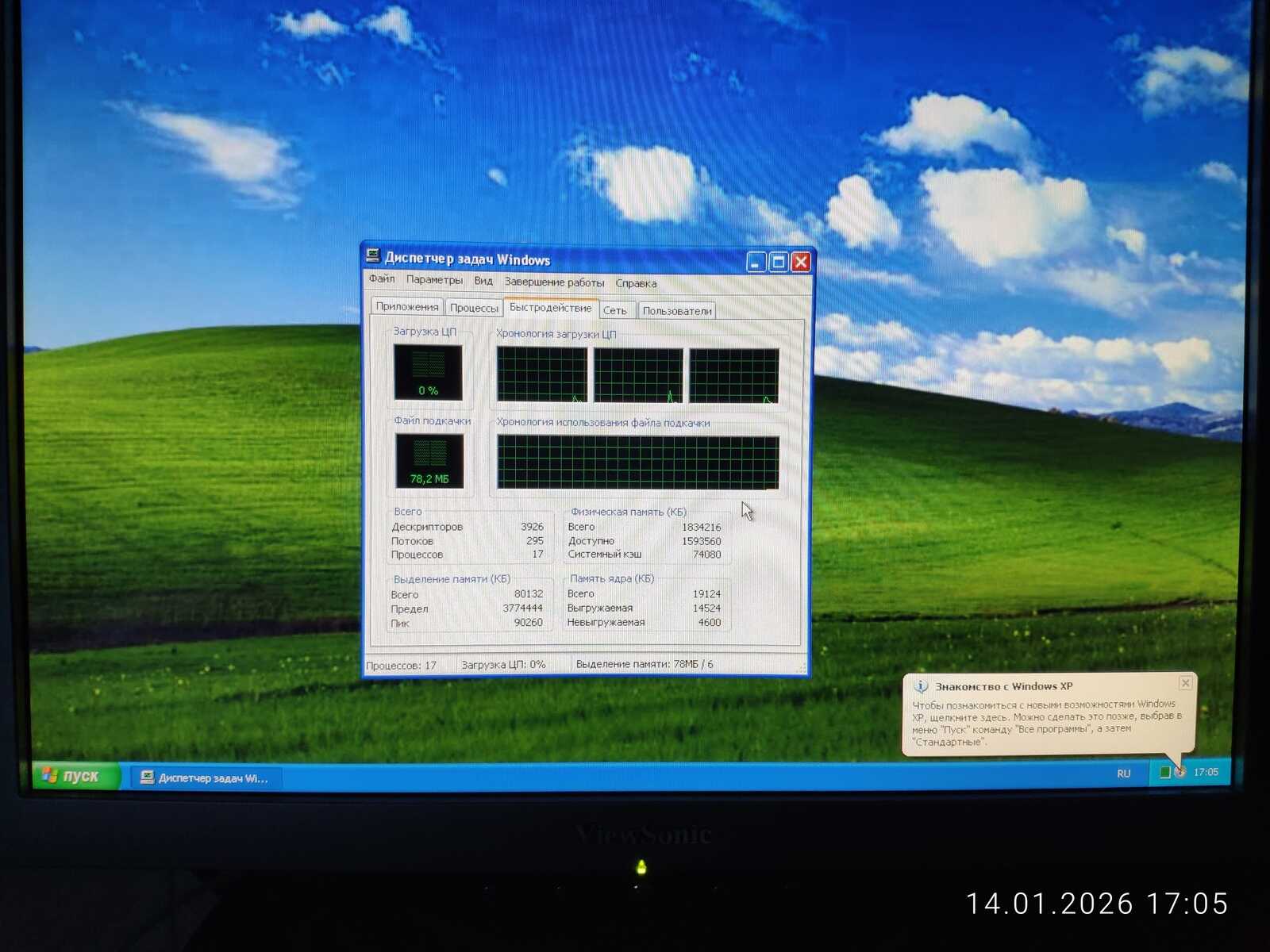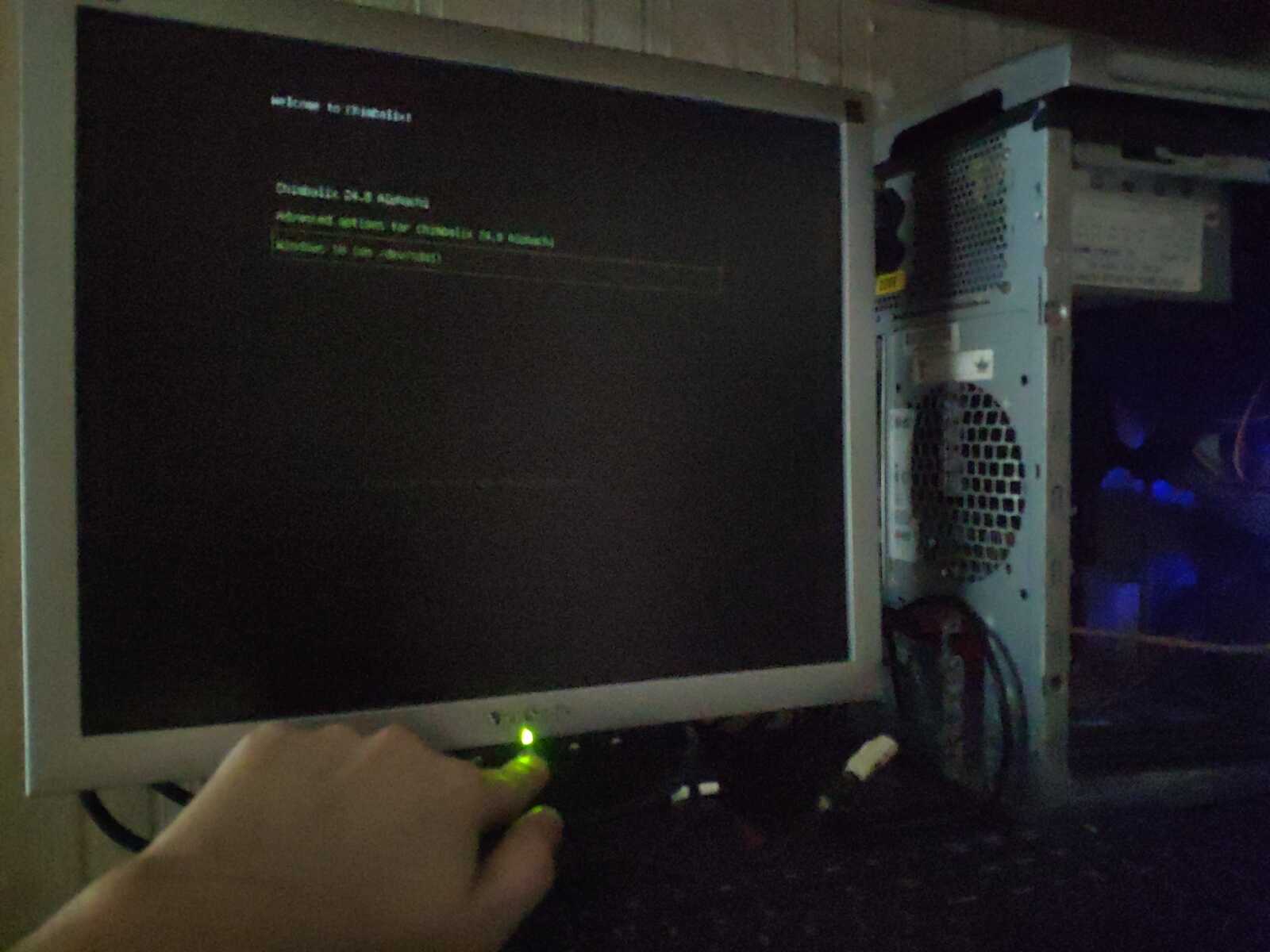 Я уже установил драйверы и базовые системные компоненты в среде Windows XP. Потом отлучился по делам на некоторое время. Однако монитор предательски сломался по моему возвращению. На мгновение включается и сразу выключается.