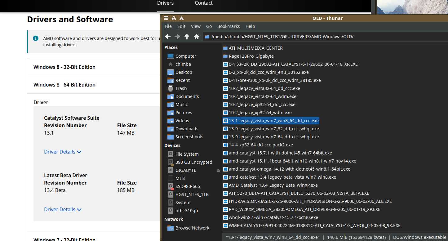 Ладно, пачку драйверов собрал, осталось угадать, какие нормально заработают. С видеокартой NVIDIA я просто взял бы подходящий драйвер и установил, а с AMD нужно потанцевать с бубном. Как всегда. Отсюда, наверное, и линуксоидские оправдания растут: мол, в монолитный Linux уже встроены драйверы AMD и якобы не нужно танцевать с бубном, как в Windows.