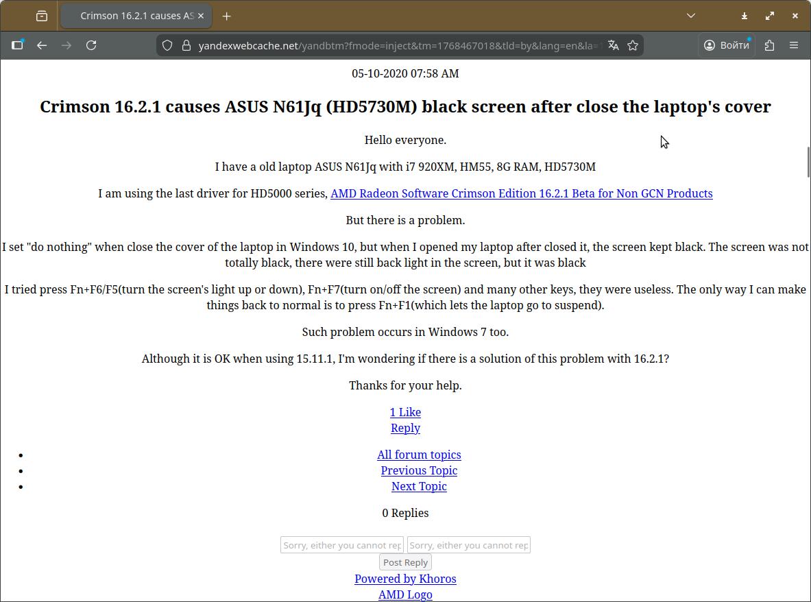 Выше прикрепил лишь одну из множества проблем драйвера Crimson 16.2.1. У меня была HD 6870 и благодаря этому драйверу пользоваться видеокартой было практически невозможно. Никакого уважения по отношению к пользователям своей, так сказать, продукции под названием Radeon.