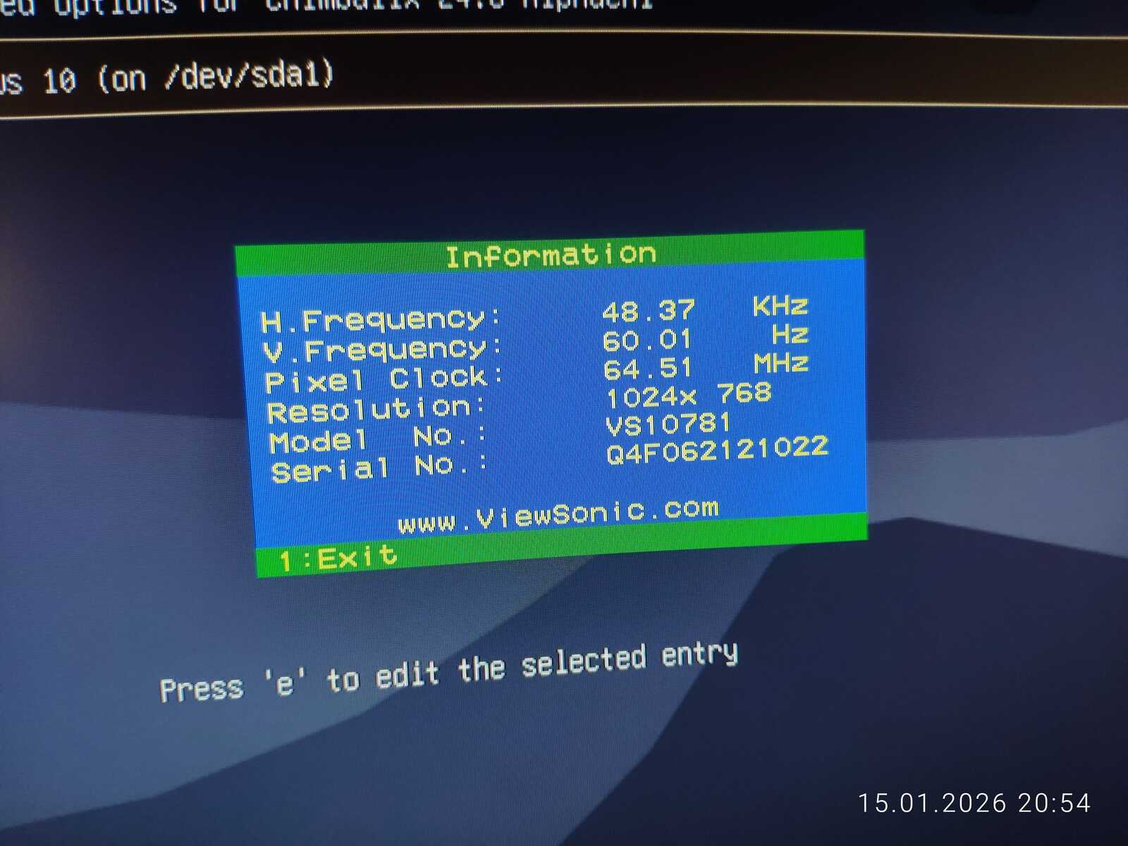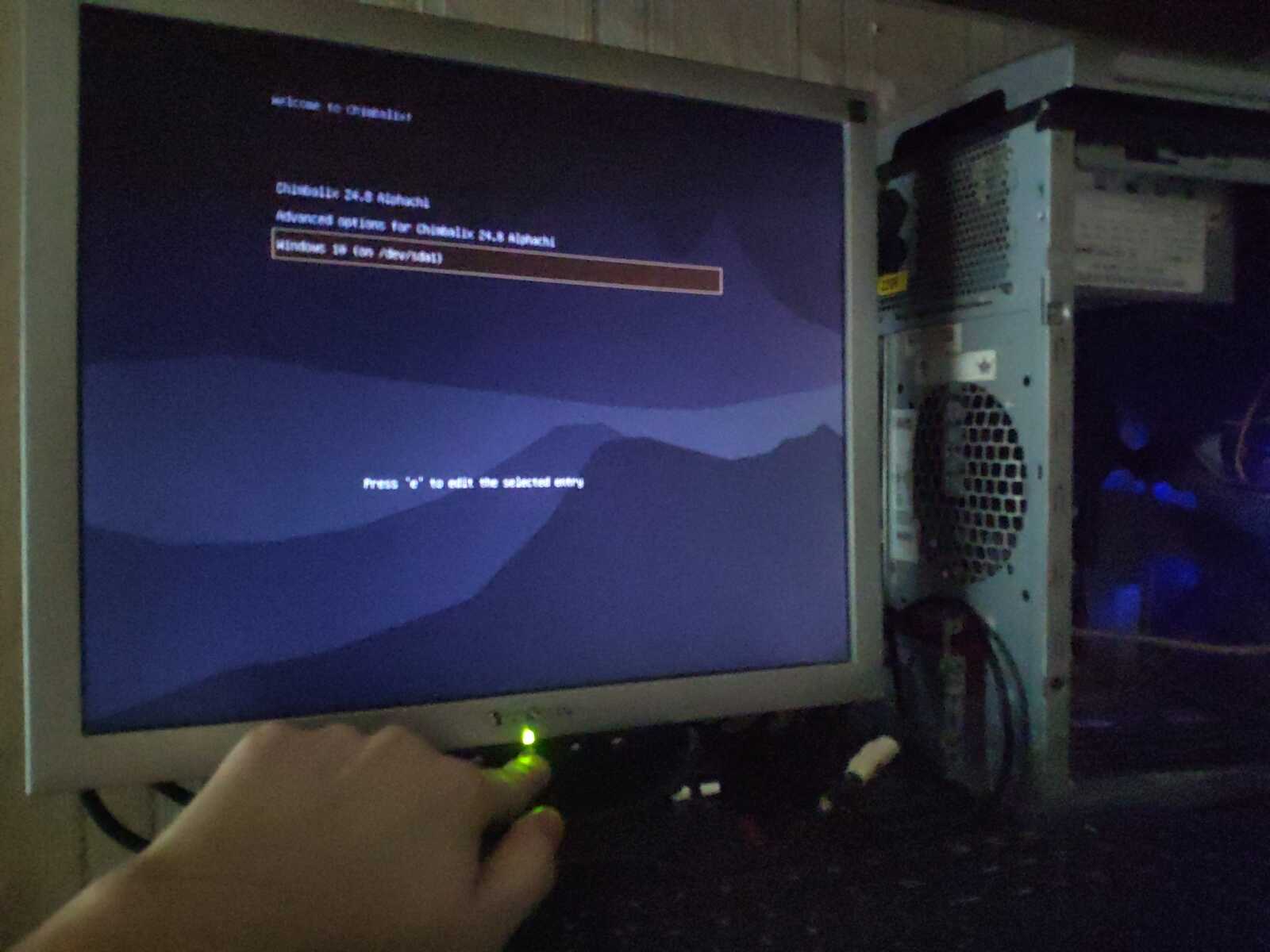 Отключаю HDD с Windows и Chimbalix. После подключаю флешку и запускаю.