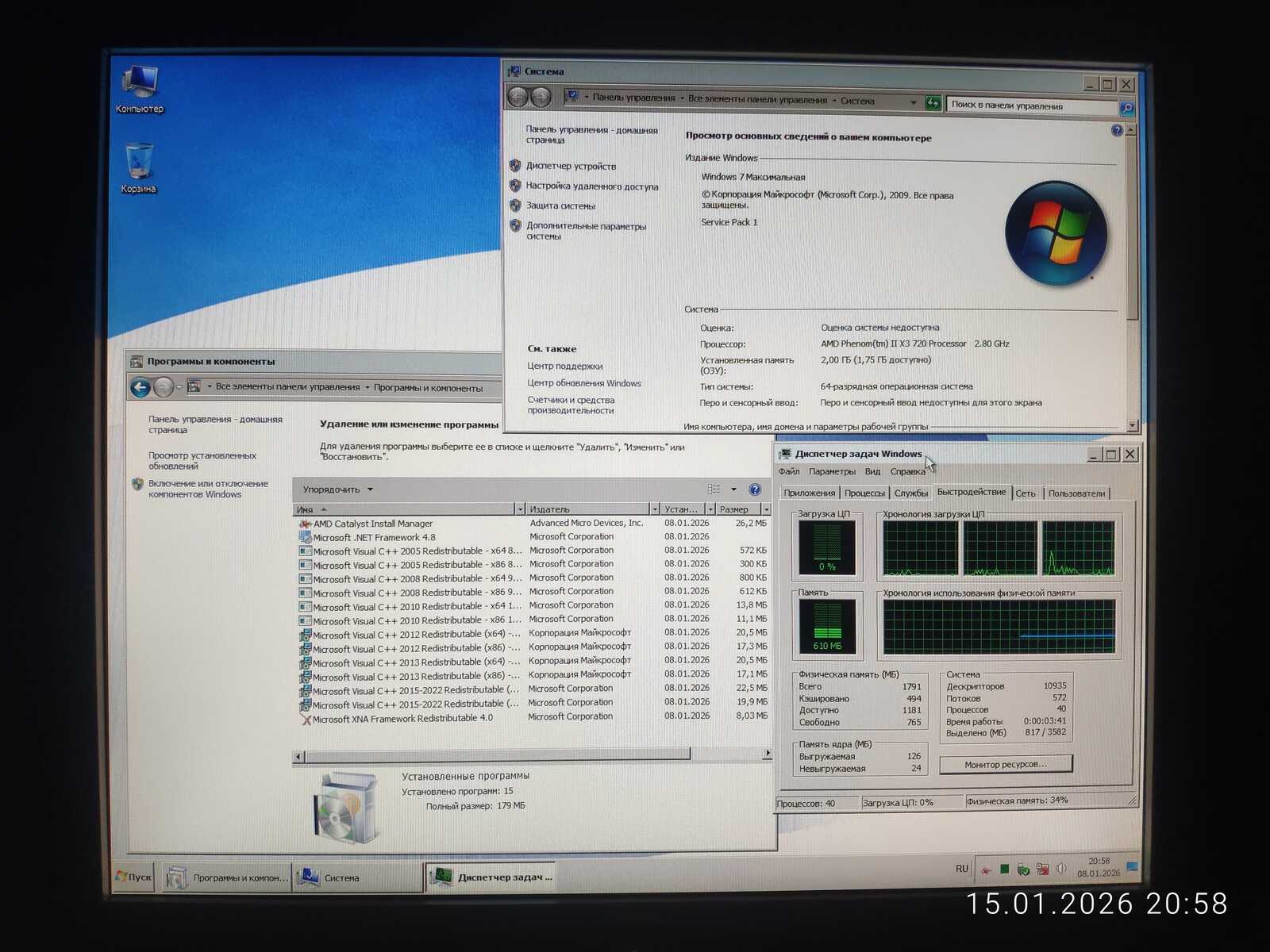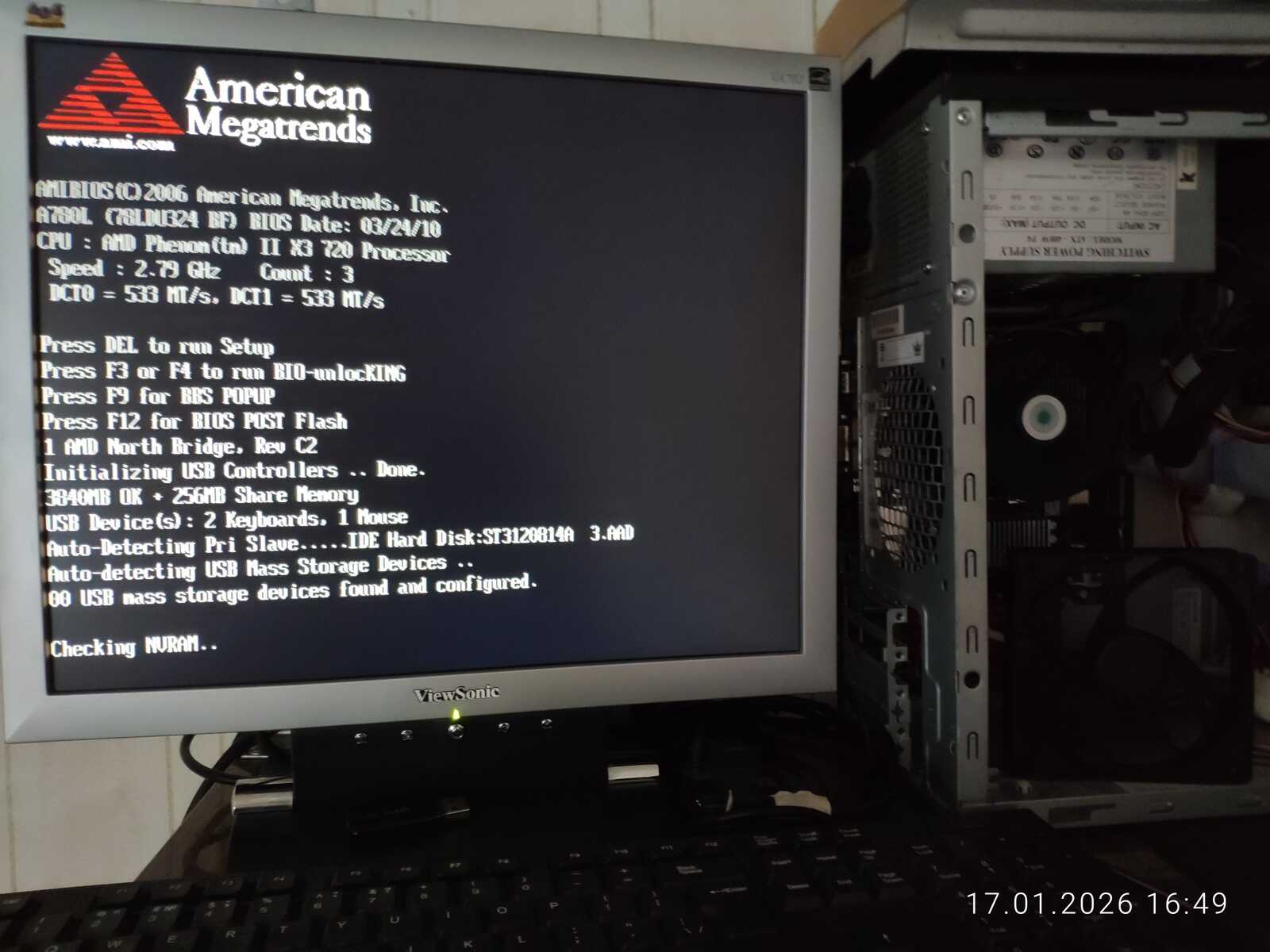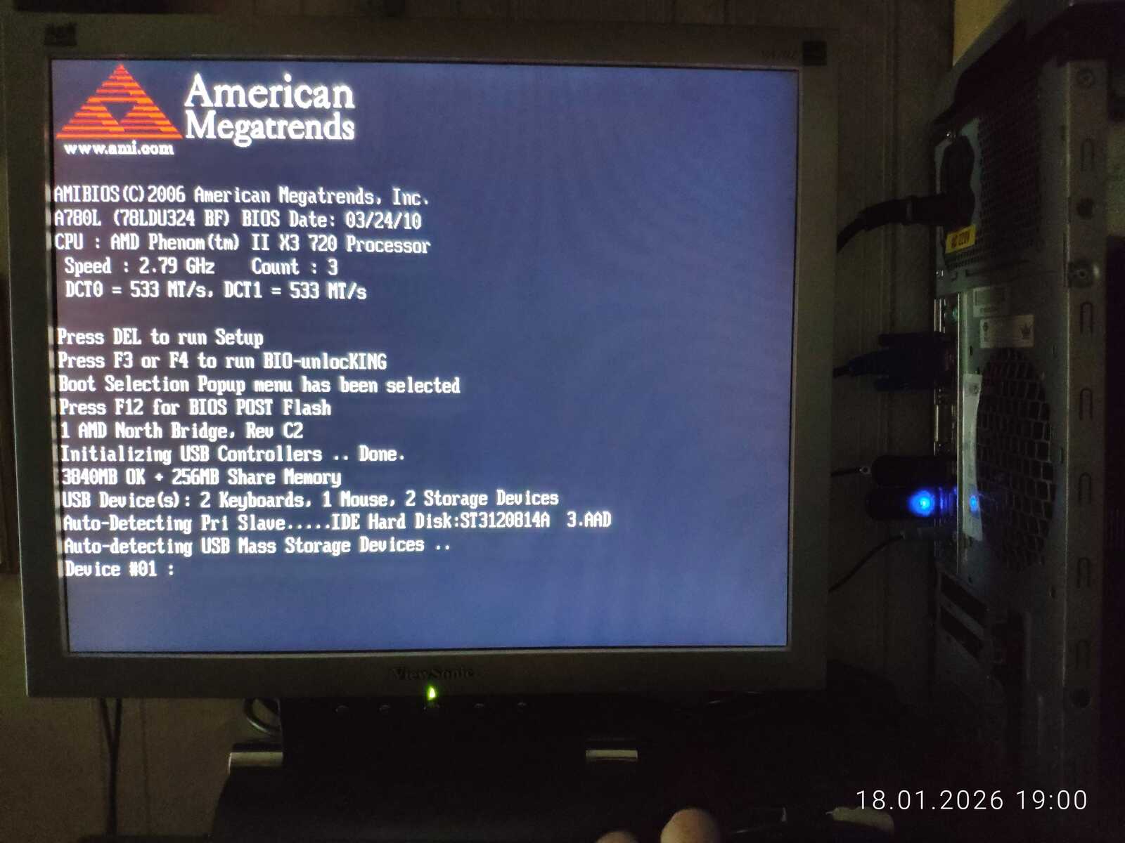 Процессор: AMD Phenom II X3 720. Видеокарта встроенная — AMD Radeon 3100. Выделено 256 МБ из системной памяти для графики. Хотя блок питания выдаёт стабильные 4,78v по линии 5VSB, что не совсем приятно. Но в остальном показания хорошие, да и работает всё нормально. По сути, имеем вполне типичный старый ПК, на котором будем проводить тесты.