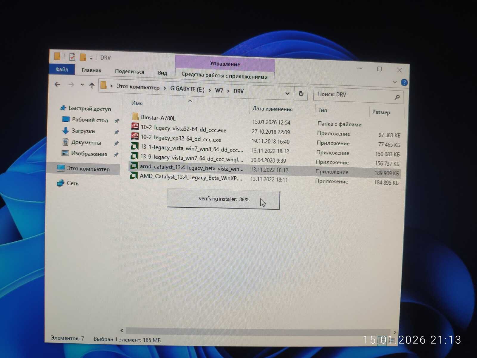 Прочие драйверы для конкретной системной платы Biostar A780L у меня лежали в архиве, так что и это скачивать не пришлось.