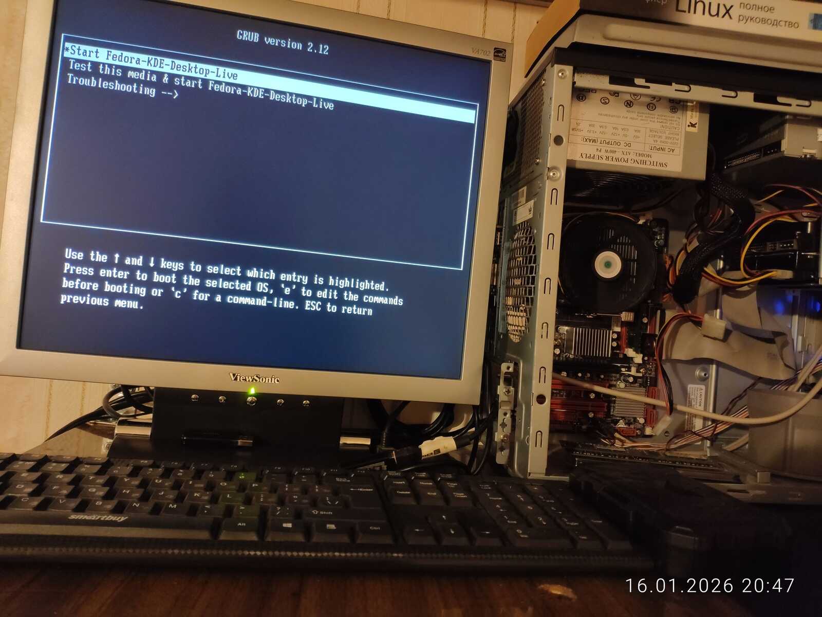 Последний установленный Линукс успешно запустился. Стоит ли записывать зачёт в успешную установку дистрибутива Nobara, учитывая все пройденные линуксоидные круги Ада? Субъективно зачёт ставить нельзя, потому что система устанавливалась через лютые танцы с бубном. Но объективно — да, ведь систему удалось установить и запустить.