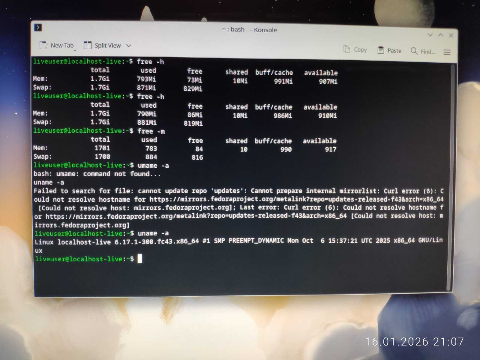 Проверка на современном ноутбуке показала, что Fedora 43 кушает почти три гигабайта оперативной памяти. Это означает, что на старом ПК с двумя гигабайтами ОЗУ могут возникнуть проблемы. Хотя это пока не факт.