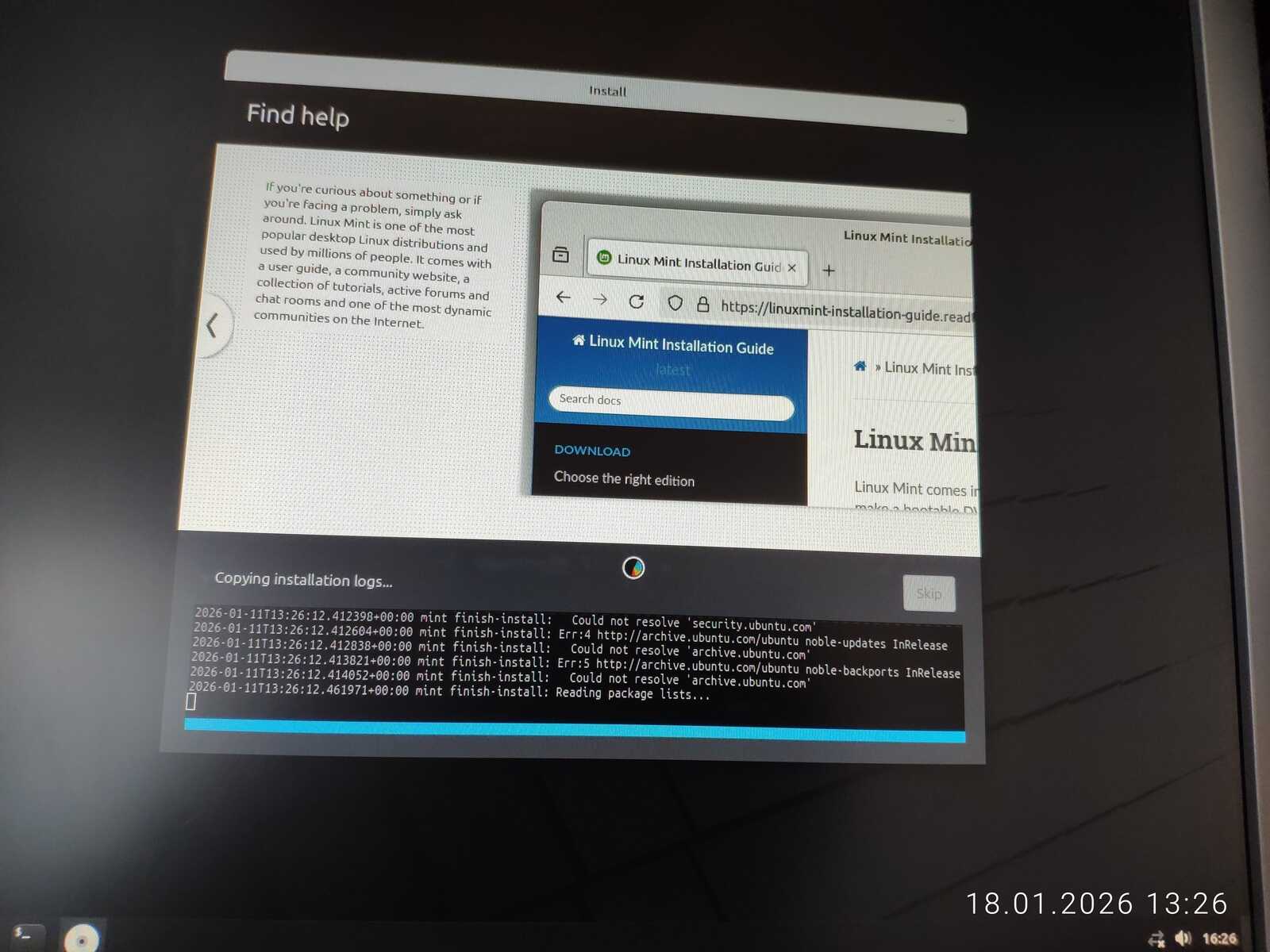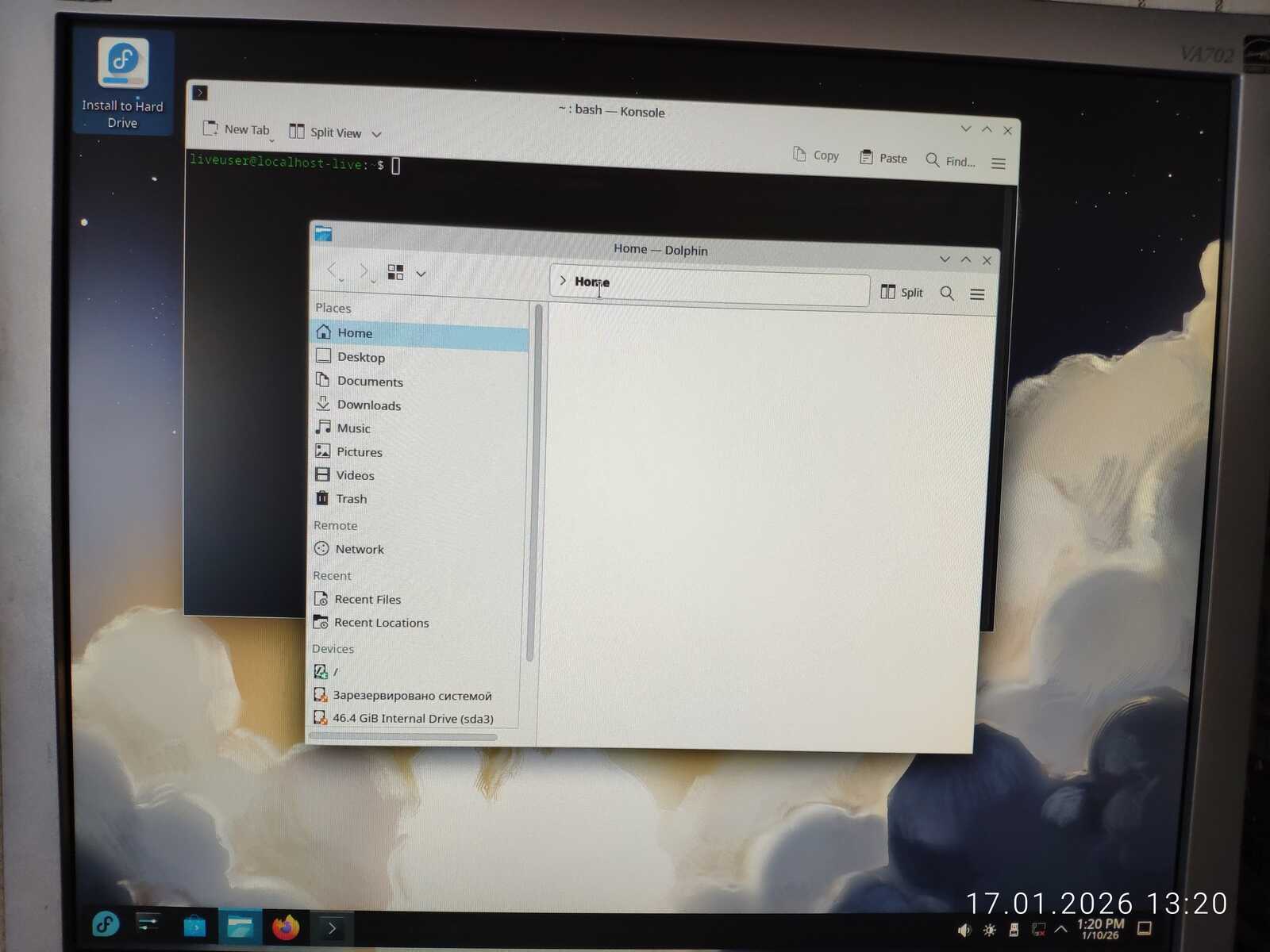 Установка длилась почти полчаса, и довольно много времени было потрачено дистрибутивом на многократные попытки скачивать обновления без разрешения пользователя. А потом линуксоиды искренне не понимают, почему это Линуксы буквально мертвы в настольном сегменте. В любом случае, система установилось и запустилась. Непонятно, насколько успешно установилась, ведь пыталась сосать зависимости через интернет. Но засчитаем успех.