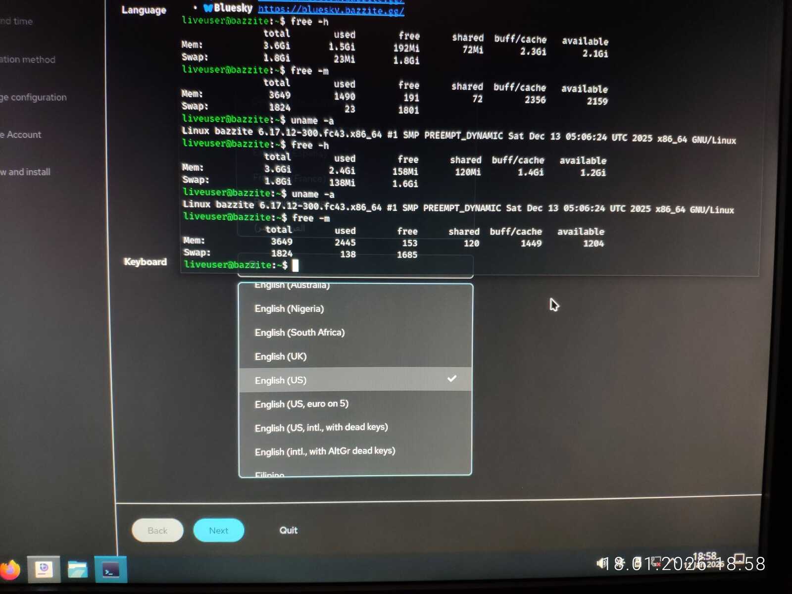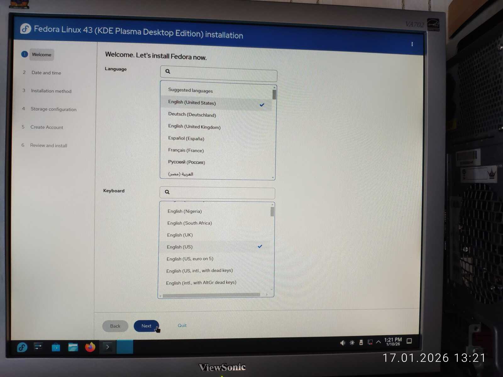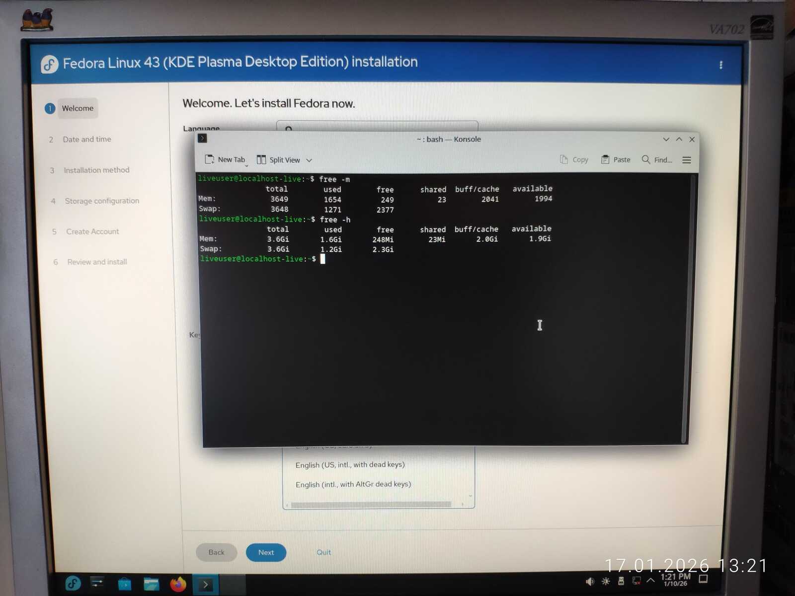 Ну а настройка учётной записи скверна. Установлено ограничение на минимальный размер пароля в 6 символов. Ущемление свободы пользователя на лицо. При этом, данная программа установки далеко не худшая среди всех, с которыми мне приходилось сталкиваться. Так я и установил Fedora 43 на компьютер. Перезагружать уже пришлось кнопкой, так как система по 30-40 секунд реагировала на каждое действие. Судя по всему, четырёх гигабайт оперативной памяти тоже оказалось недостаточно для работы Fedora.
