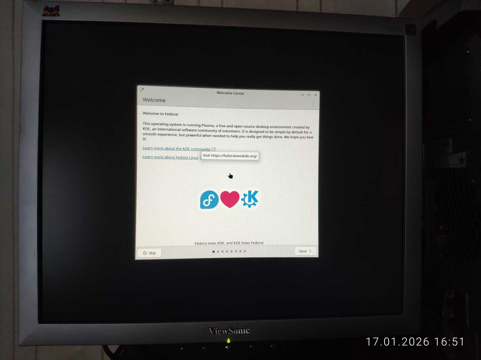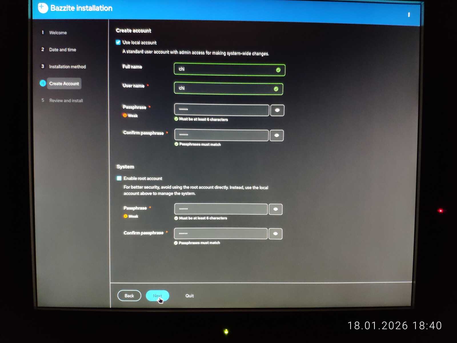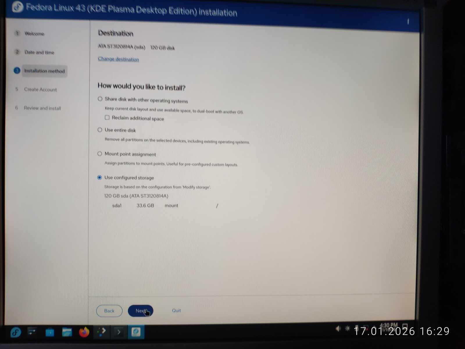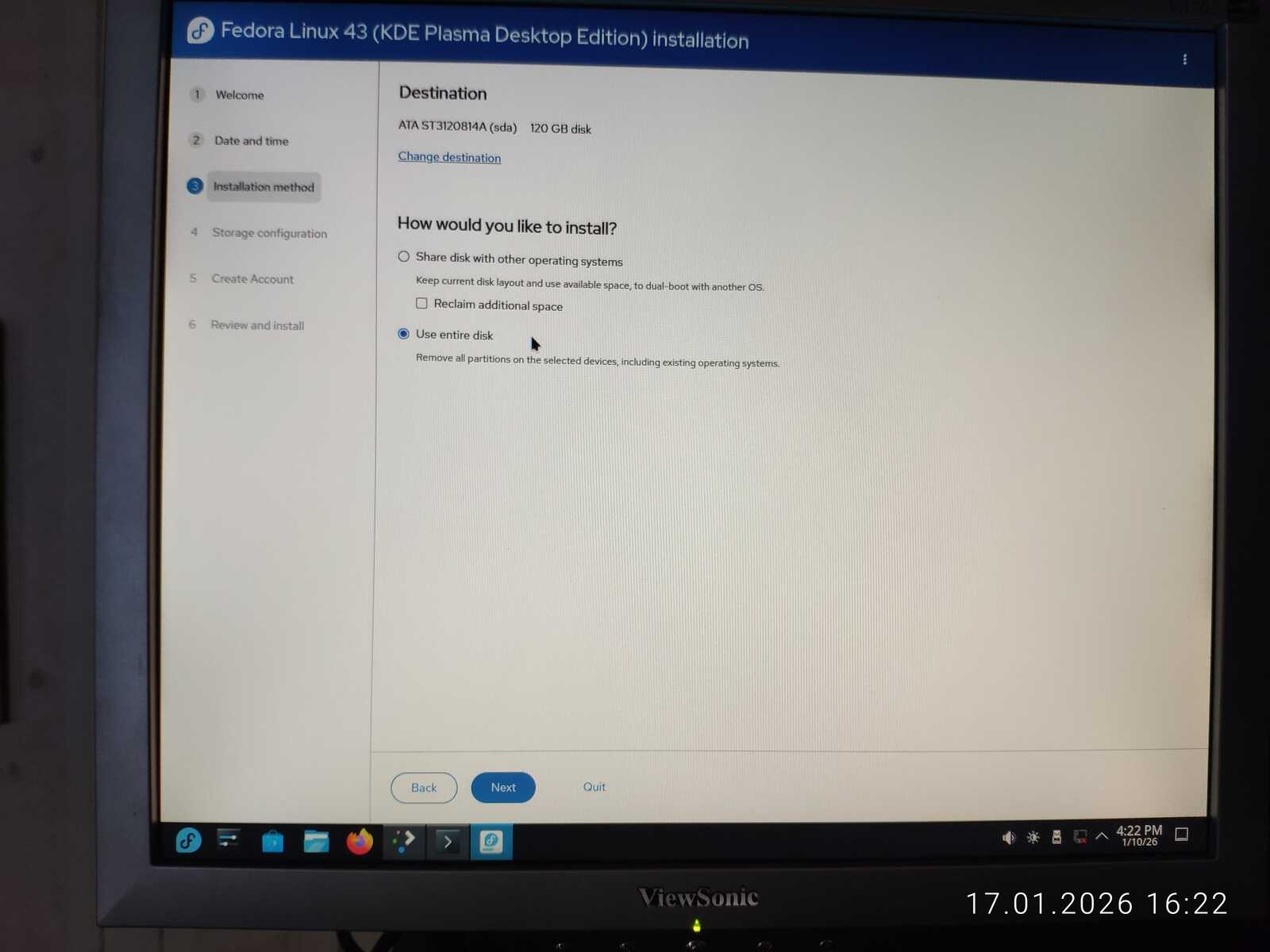Ну а настройка учётной записи скверна. Установлено ограничение на минимальный размер пароля в 6 символов. Ущемление свободы пользователя на лицо. При этом, данная программа установки далеко не худшая среди всех, с которыми мне приходилось сталкиваться. Так я и установил Fedora 43 на компьютер. Перезагружать уже пришлось кнопкой, так как система по 30-40 секунд реагировала на каждое действие. Судя по всему, четырёх гигабайт оперативной памяти тоже оказалось недостаточно для работы Fedora.