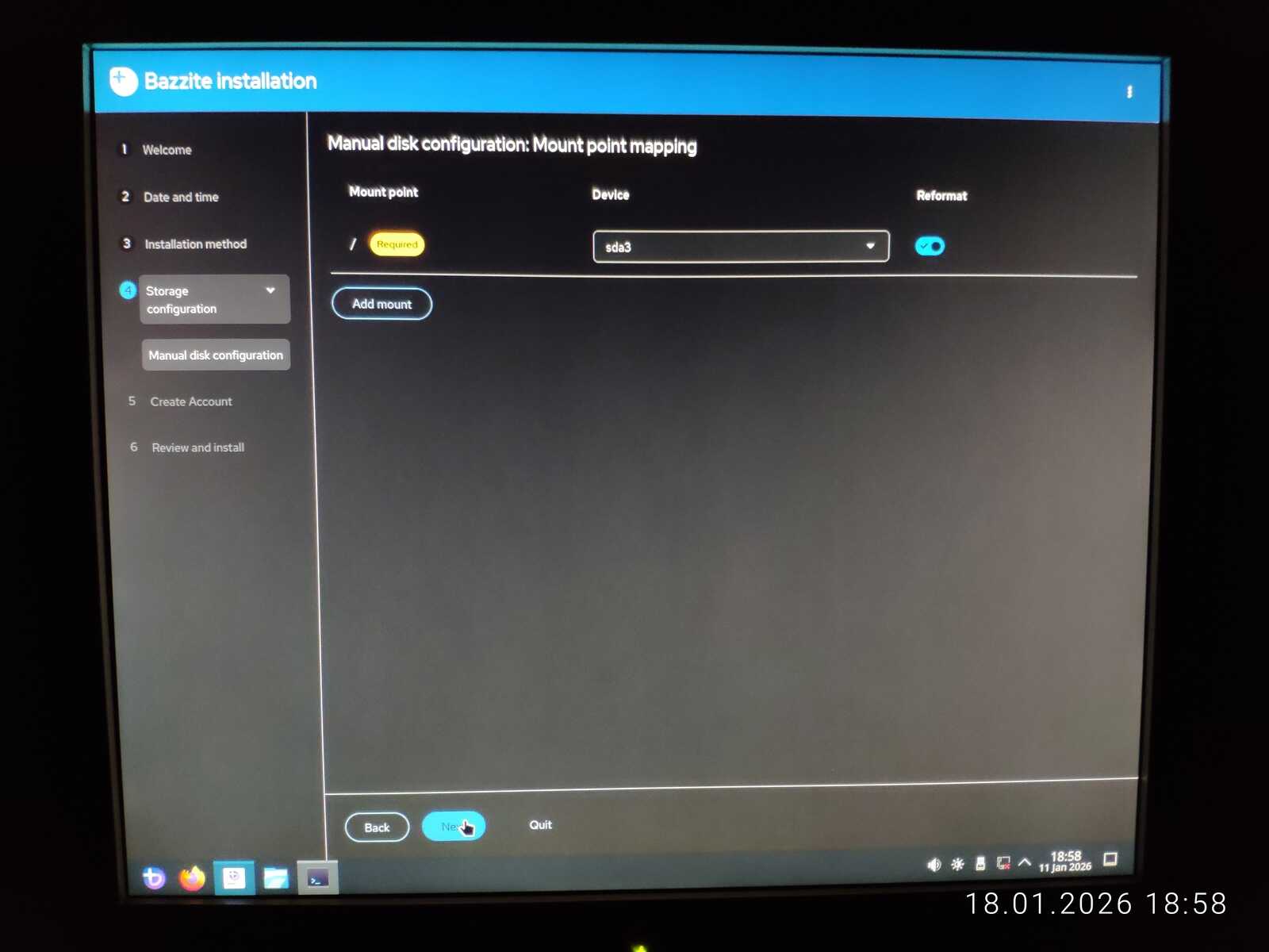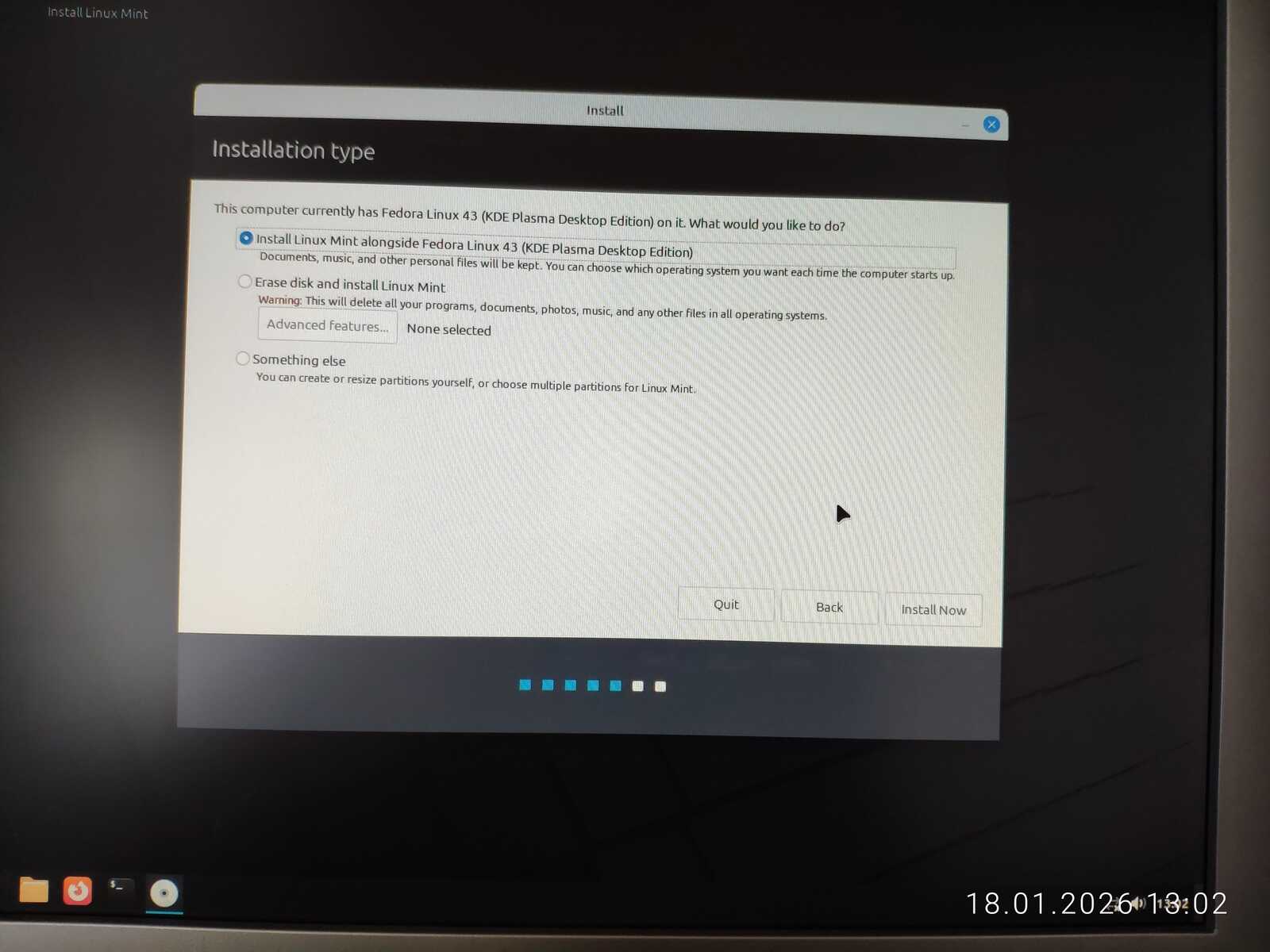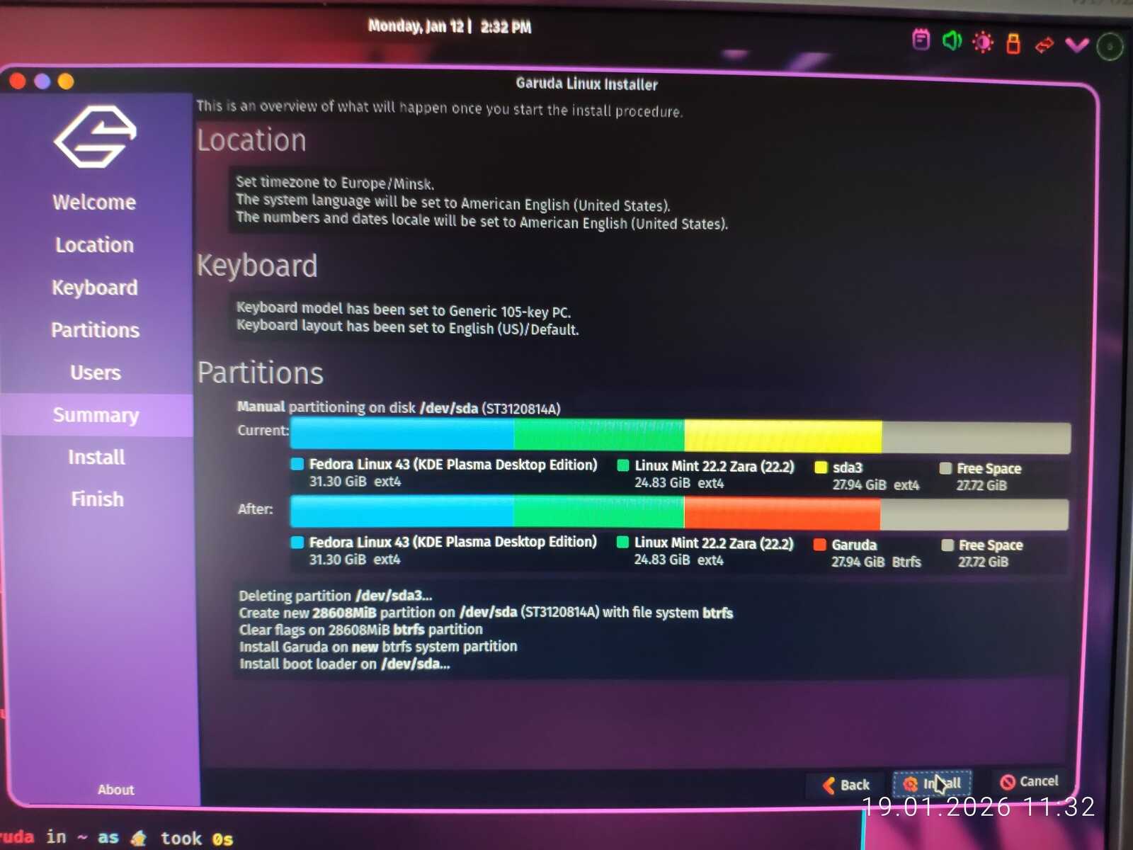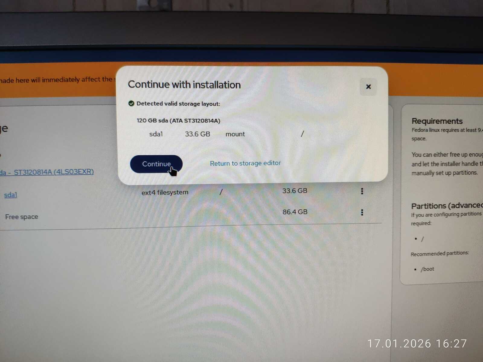 С горем пополам была произведена разметка. Ещё отмечу путаницу между единицами измерения MB/MiB. Чувствуется неправильный подход в стиле ужасного GNOME. Хотя используется тут гораздо более вменяемое KDE. Видимо, линуксоидные разработчики даже KDE умудрились испортить. Но в этом все Линуксы. Разумеется, дело проходило в жутких тормозах. У меня даже отвязанная от Интернета Windows 11 так сильно не тормозила на гораздо более слабом ноутбуке, как тормозит Fedora на тестовом компьютере.