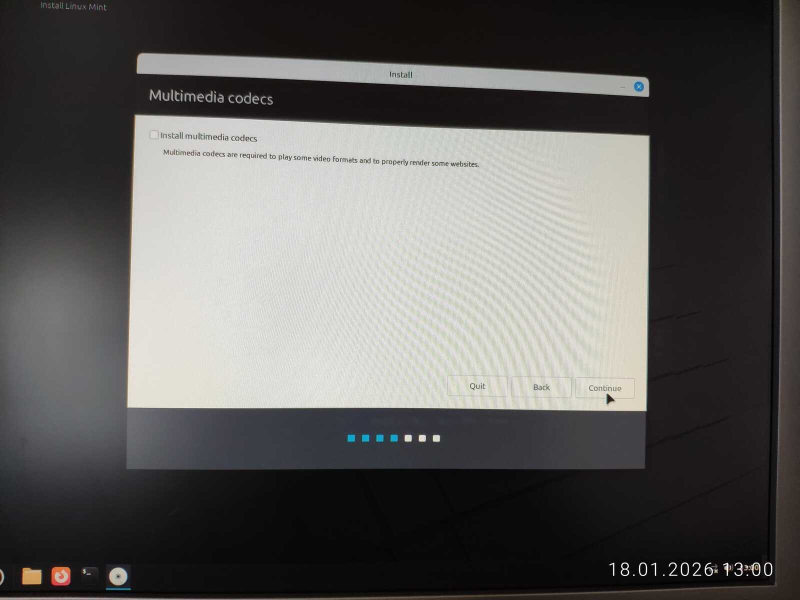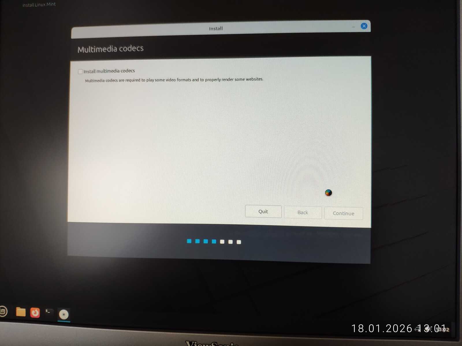 Стоит напомнить, что у Linux Mint есть серьёзные проблемы в программе установке по части установки загрузчика в UEFI режиме. Но сейчас у нас Legacy BIOS MBR, и будем надеяться, что всё установится правильно. При создании учётной записи есть небольшое ущемление свободы пользователя. Нельзя создать учётную запись без пароля.