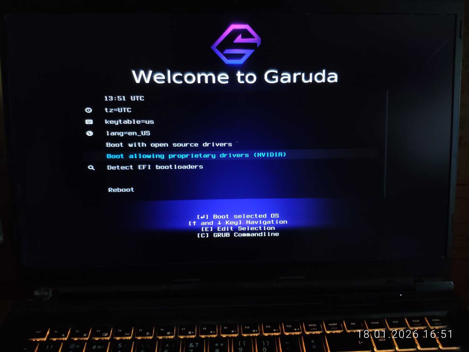 Неприятное загрузочное меню у дистрибутива Nobara. Но свои функции выполняет.