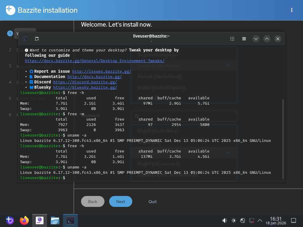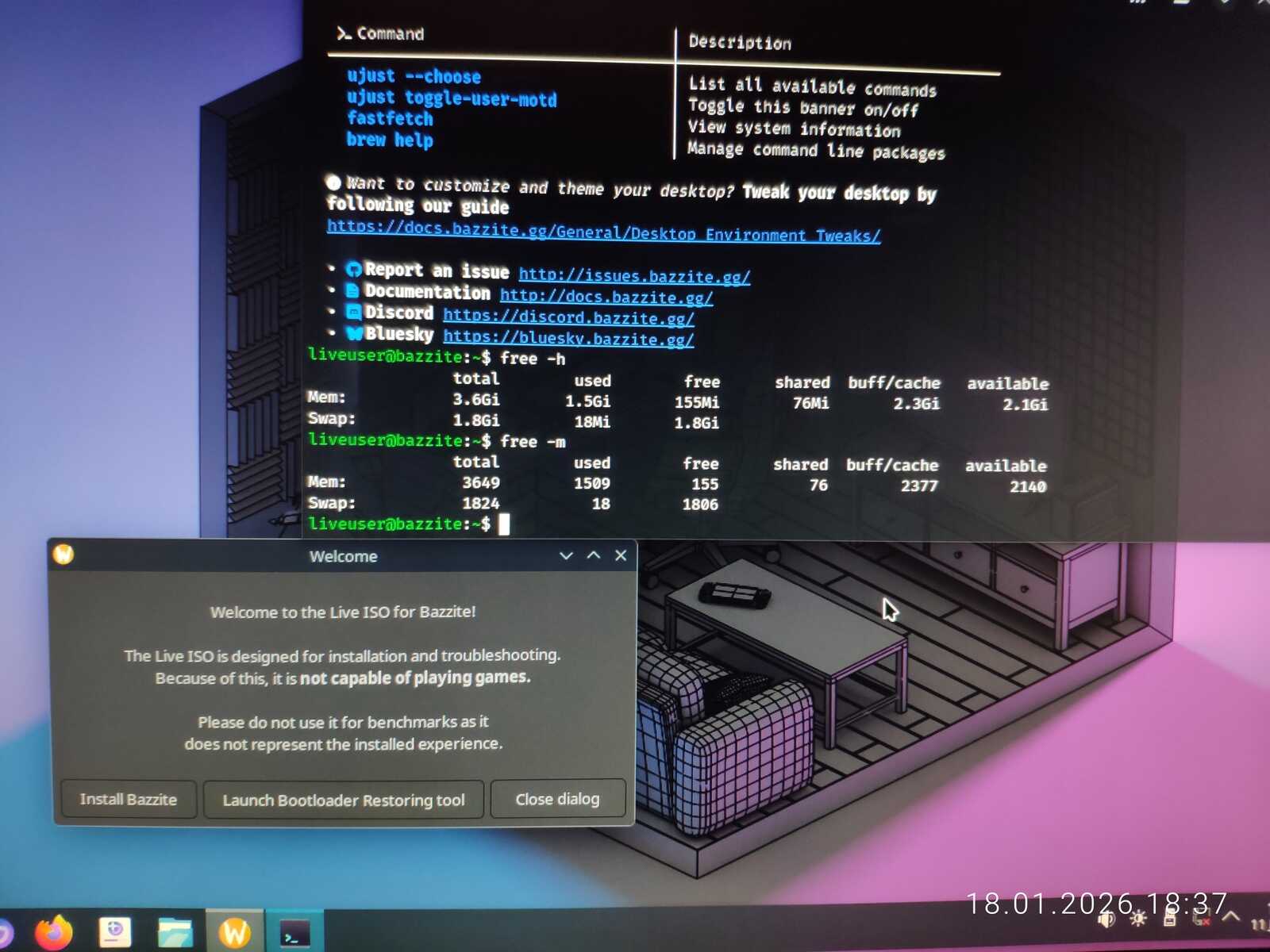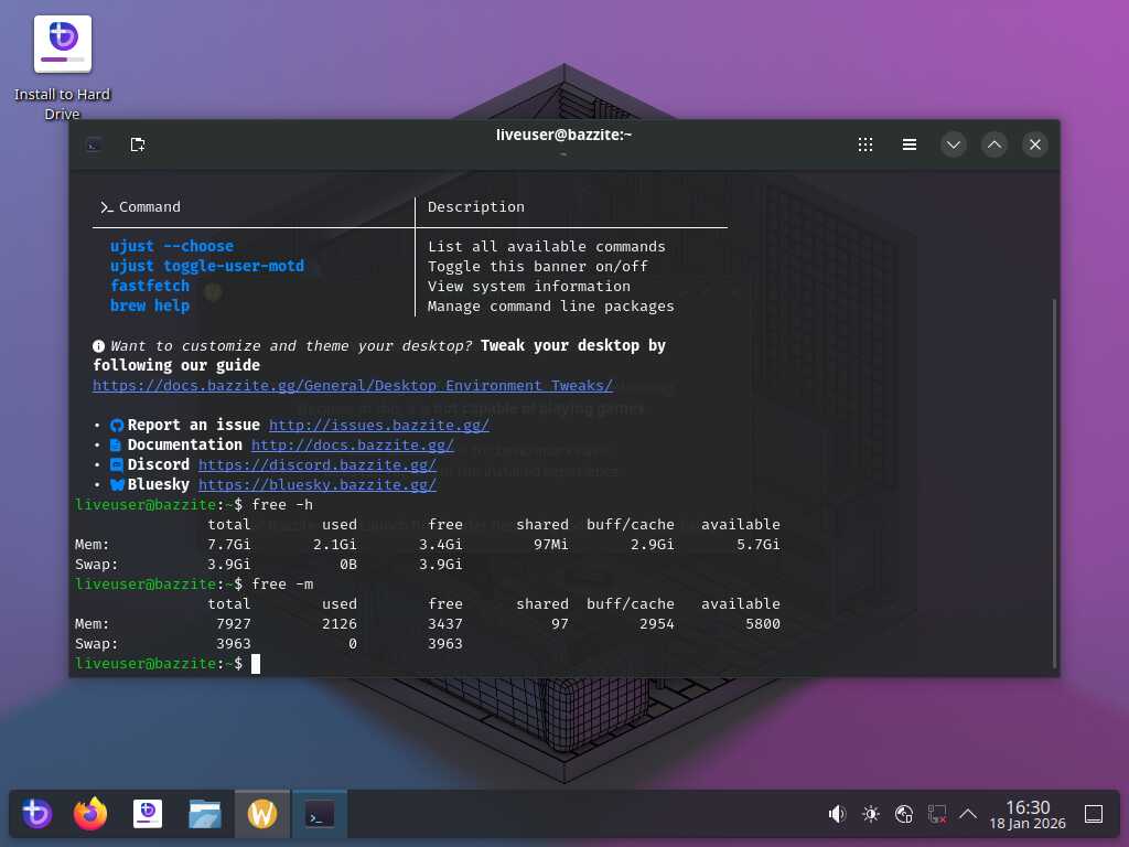 Сегодня 18 января 2026 года, кривой образ был выпущен первого января 2026 года. Уже больше половины месяца этот кривой образ распространяется на официальном сайте Bazzite. О чём это говорит? Правильно! Этот игровой Линукс, по факту никому не нужен, даже самим разработчикам дистрибутива.