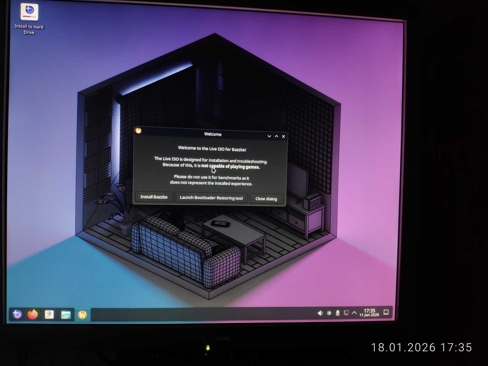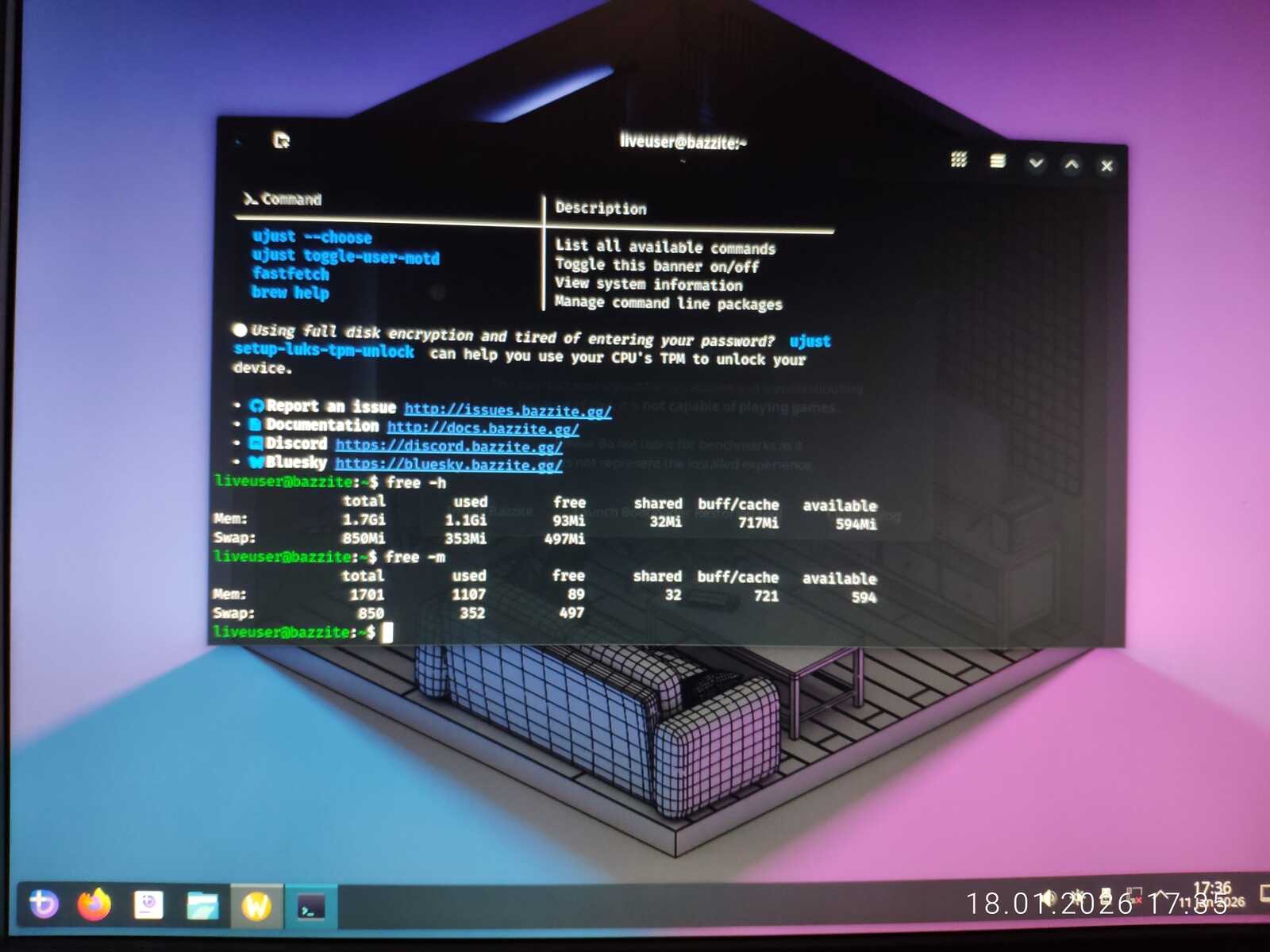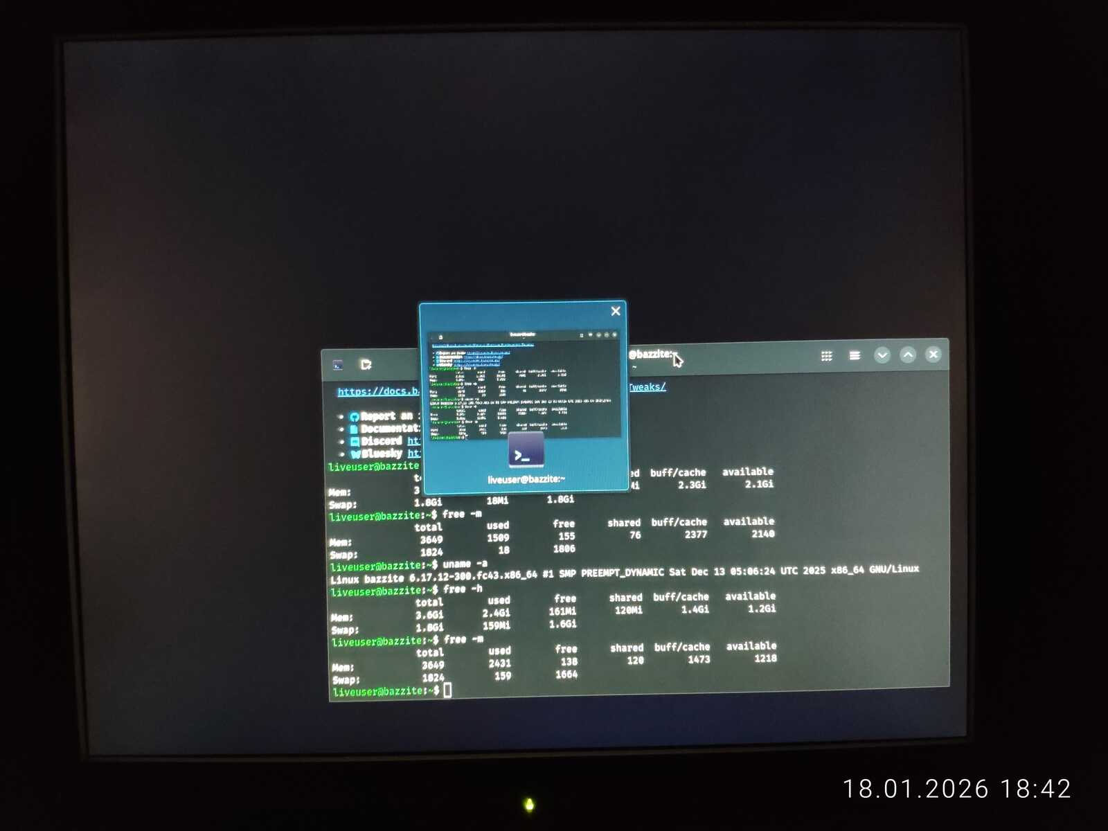 Сегодня 18 января 2026 года, кривой образ был выпущен первого января 2026 года. Уже больше половины месяца этот кривой образ распространяется на официальном сайте Bazzite. О чём это говорит? Правильно! Этот игровой Линукс, по факту никому не нужен, даже самим разработчикам дистрибутива.