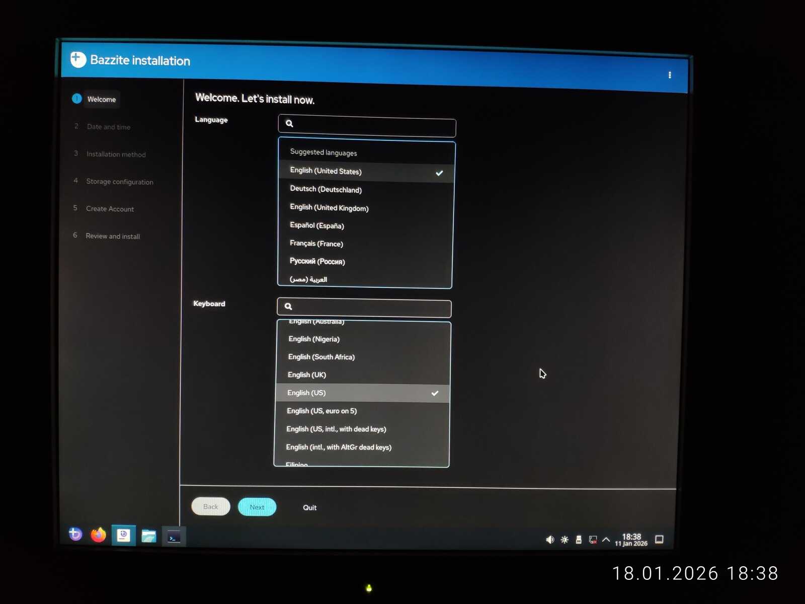 Программа установки такая же неполноценная, как и в большинстве прочих Линуксов. Добавить вторую раскладку нельзя. Значит, и проверить стандартное сочетание переключения раскладок клавиатуры Alt+Shift не выйдет. До кучи программа установки ощутимо тормозила.