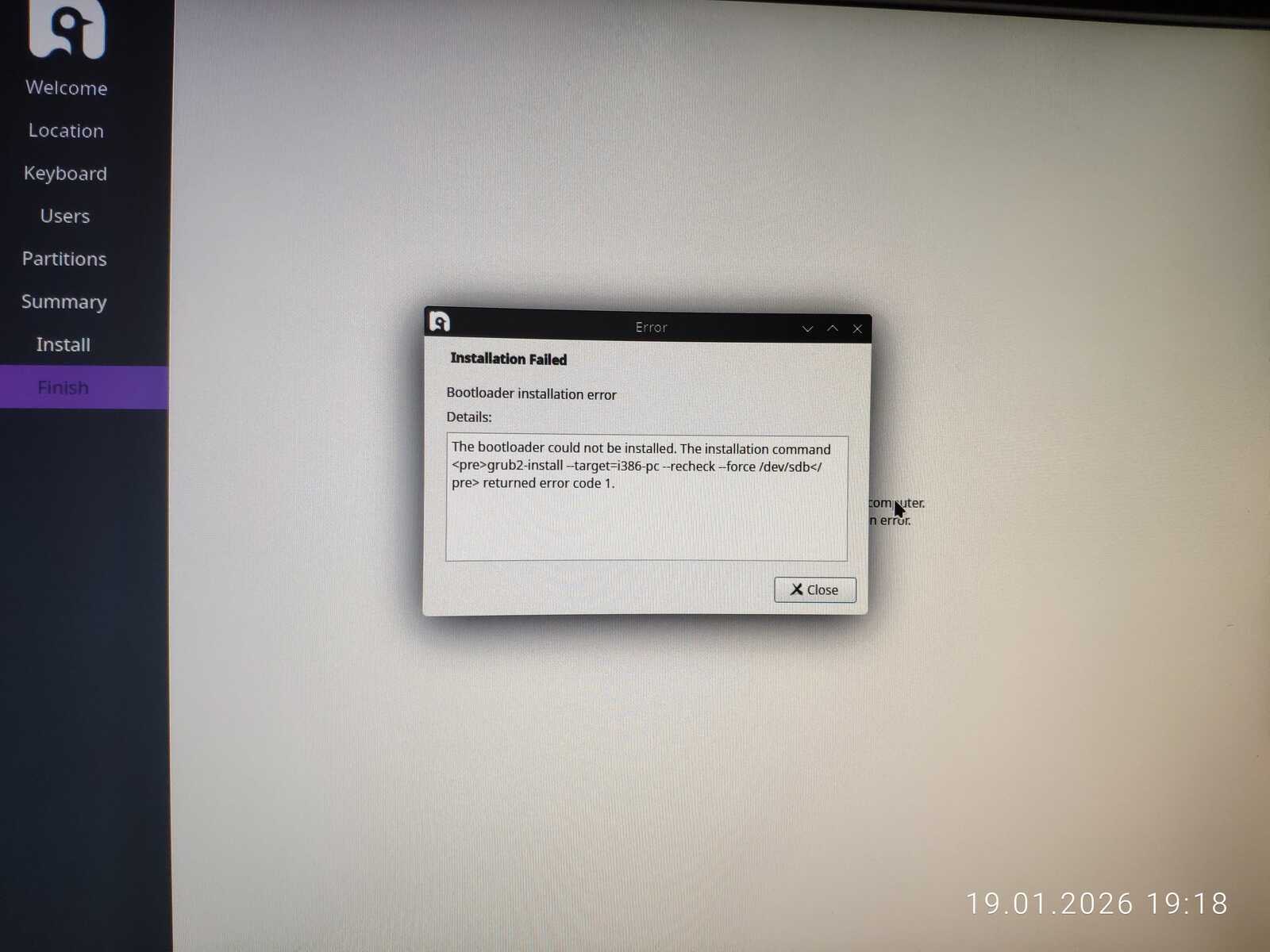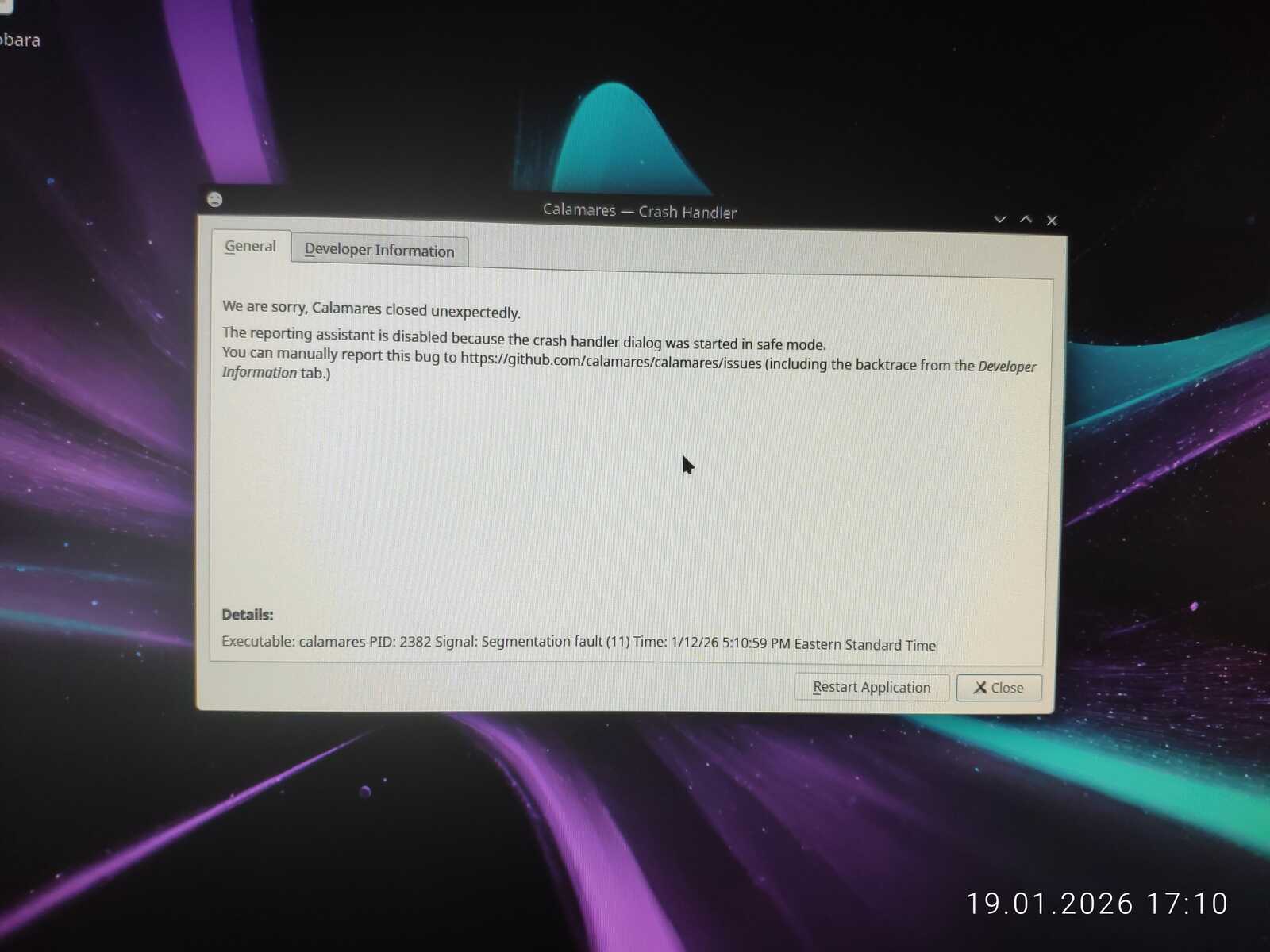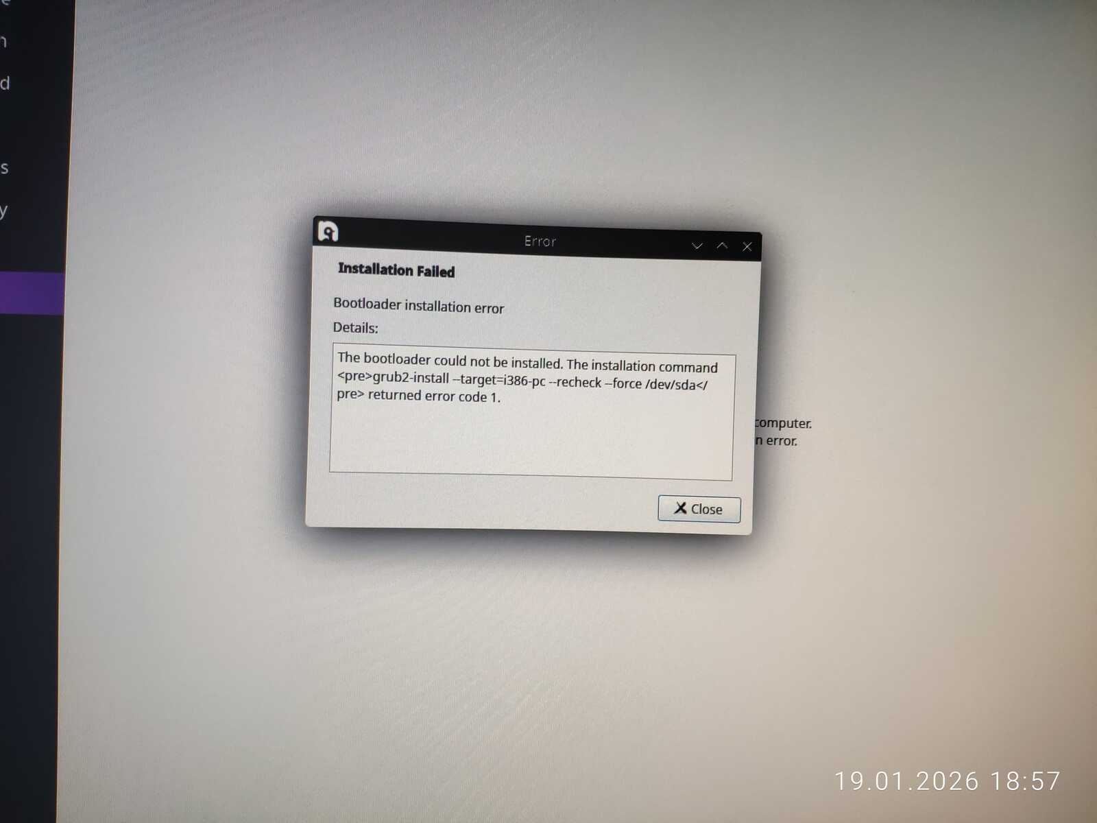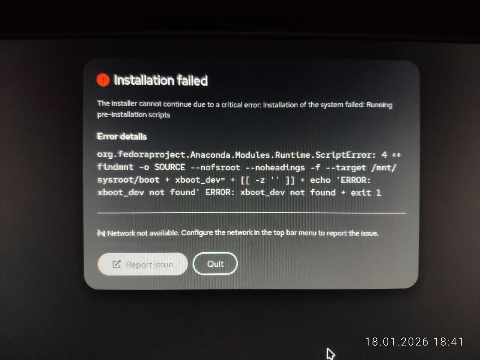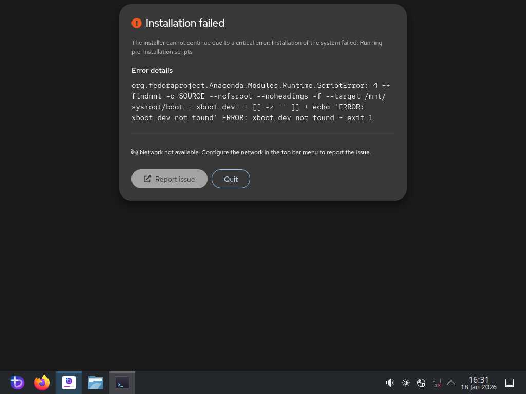 А что там с установкой? Да ничего нового! Даже в виртуальной машине всё обрывается ошибкой. Короче говоря, разработчики жидко наделали себе в штаны, выпустив образ дистрибутива Bazzite, который невозможно установить.