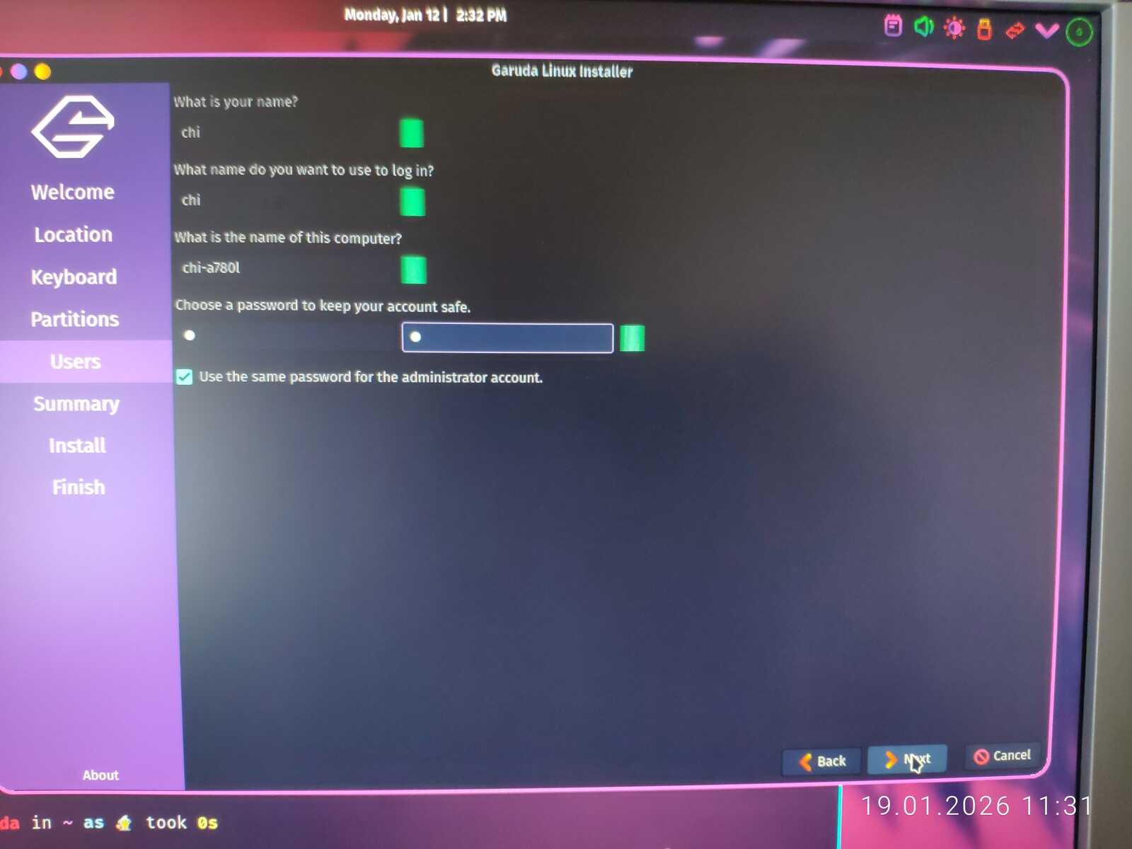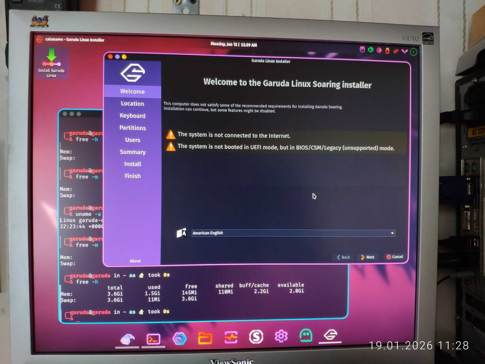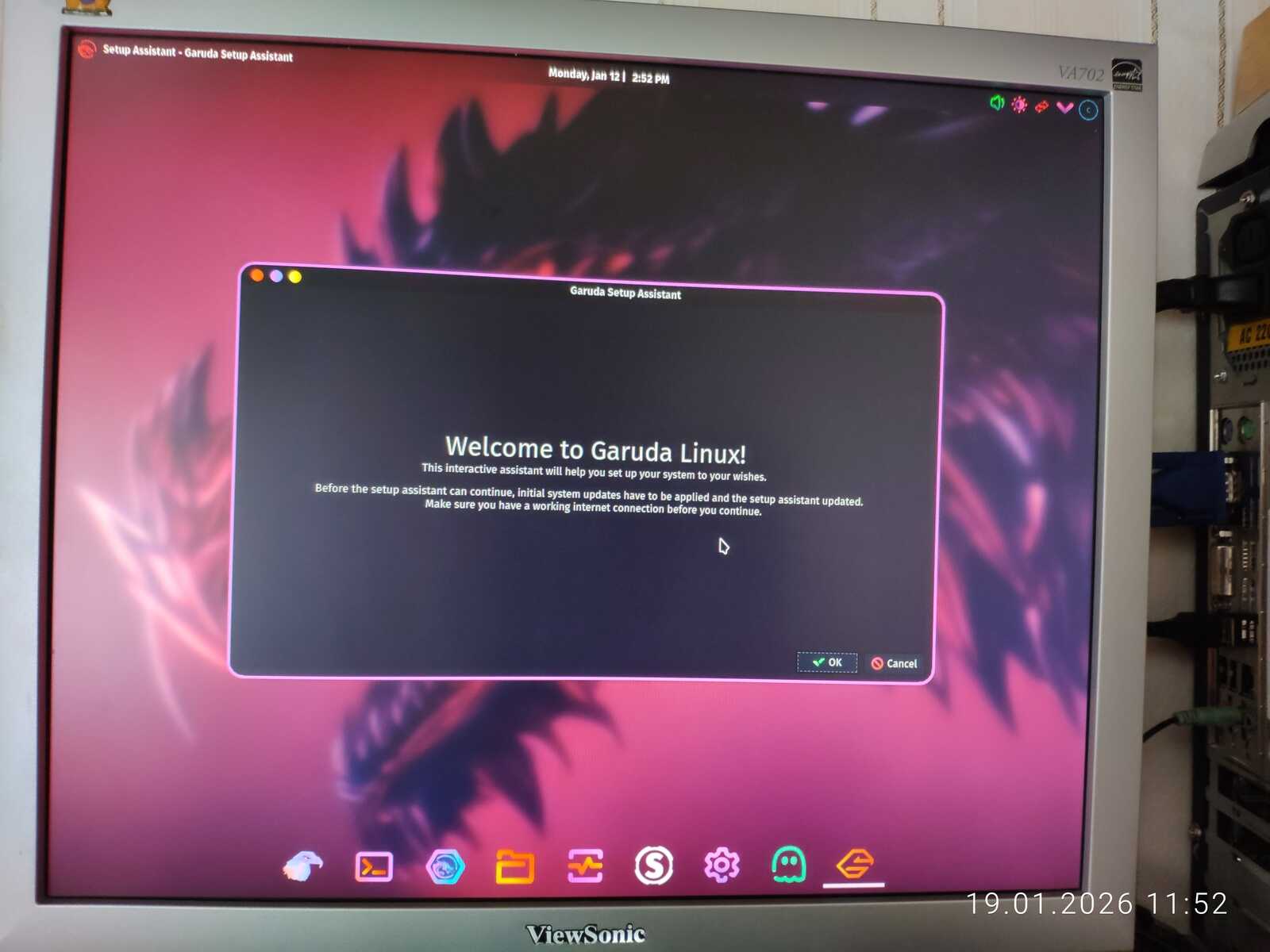 Но тут есть один неприятный нюанс у дистрибутива Garuda. После установки вылазит Garuda Setup Assistant, и он не работает без доступа к интернету. Я его просто закрыл, так как этот хлам бесконечно висел в ожидании доступа к интернету. Не знаю, можно ли считать установку без интернета успешной, учитывая такую зловредную закладку от разработчиков. Дистрибутив вроде установился без интернета, но ведь не до конца получается.