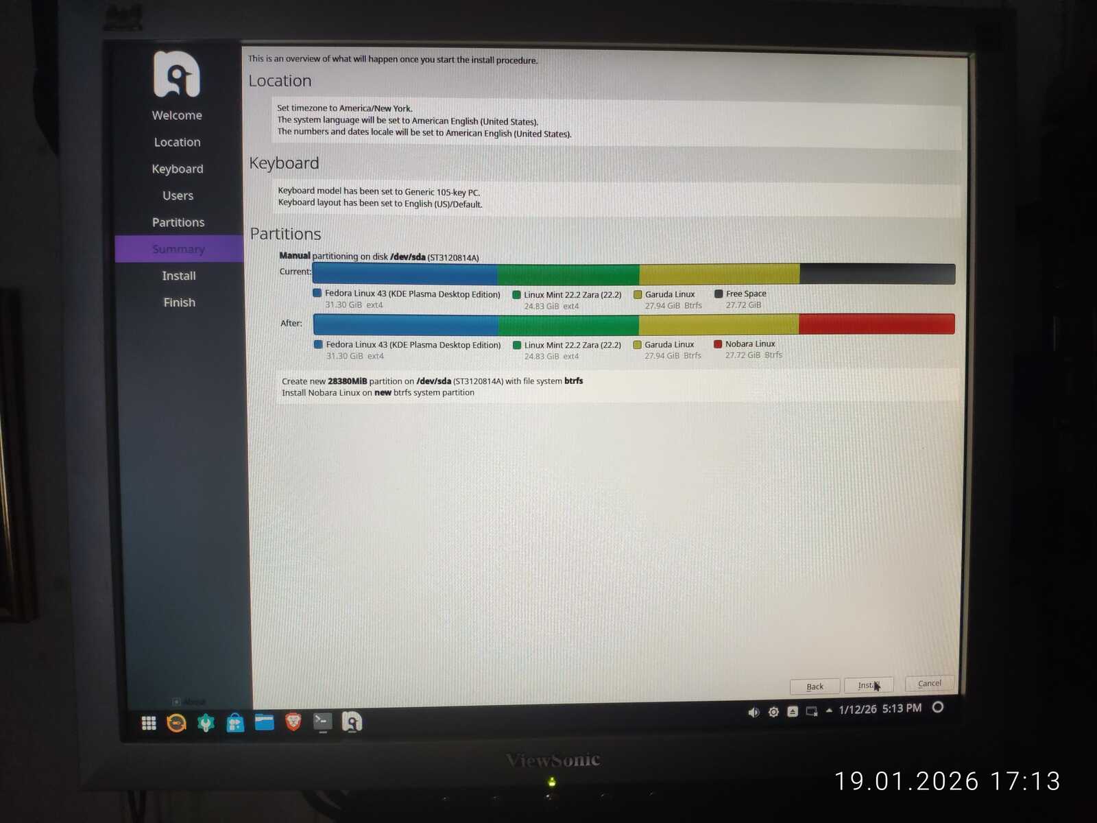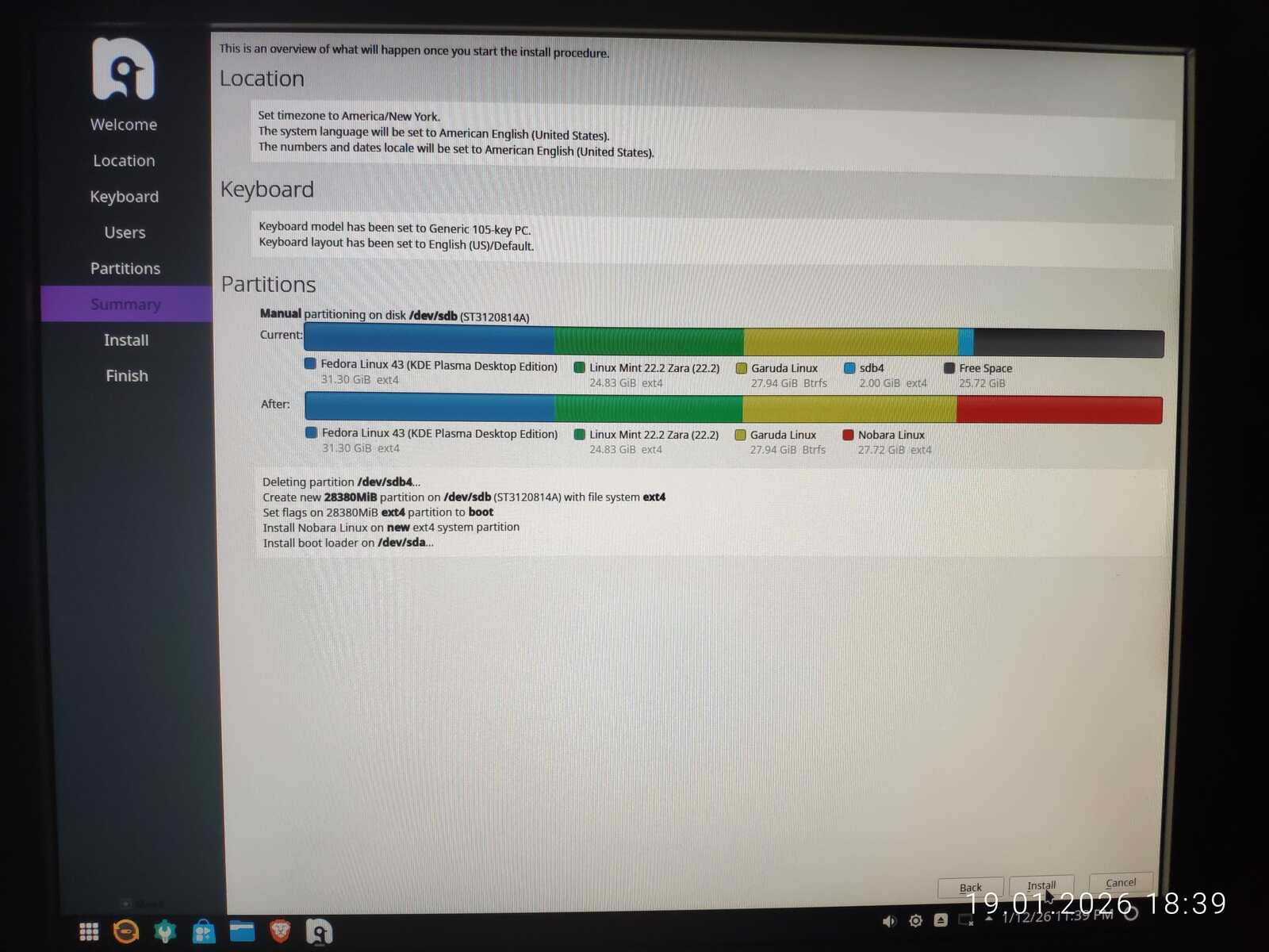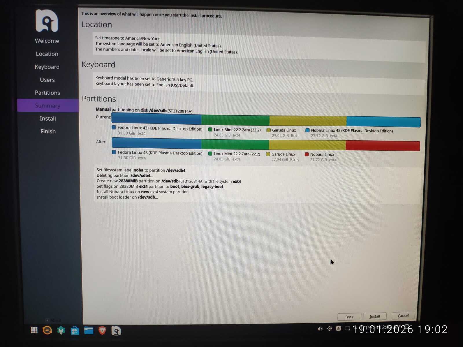 А вот в сравнении программ установки ситуация немного изменилась. Если бы не проблемы в плане подготовки разделов диска, я бы смело заявил, что программа установки Nobara — лучшая после Chimbalix. Но не скажу. Даже если по результатам тестов объективно это так и есть. Ни один другой протестированный Линукс так не вымораживал мозги с установкой загрузчика, как Nobara.