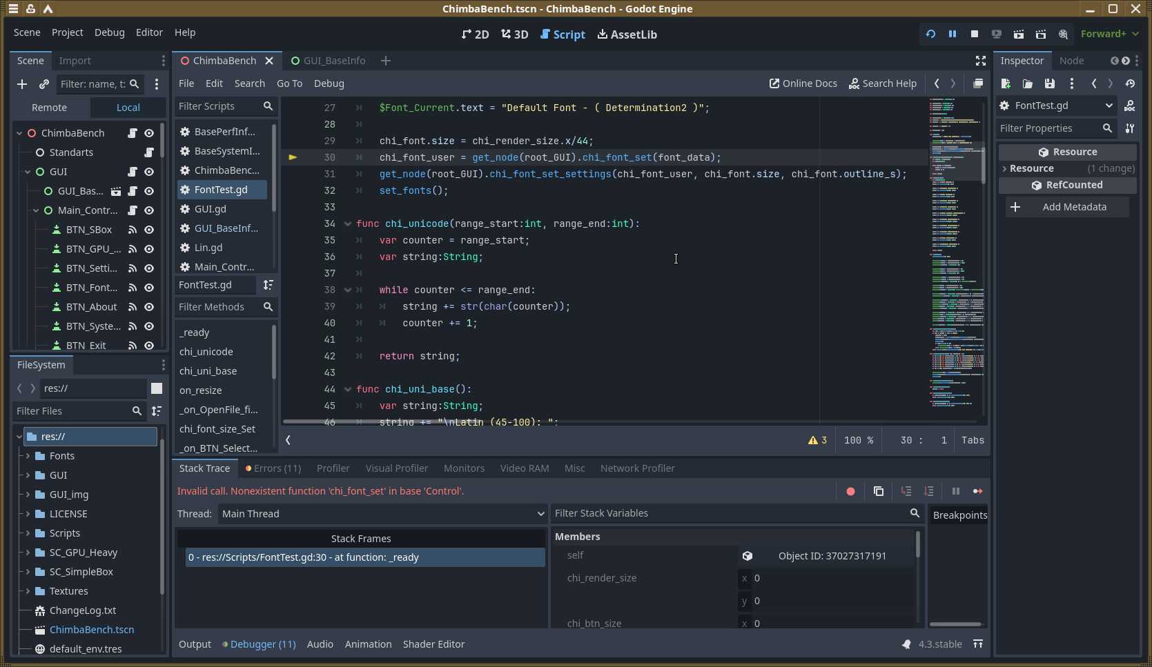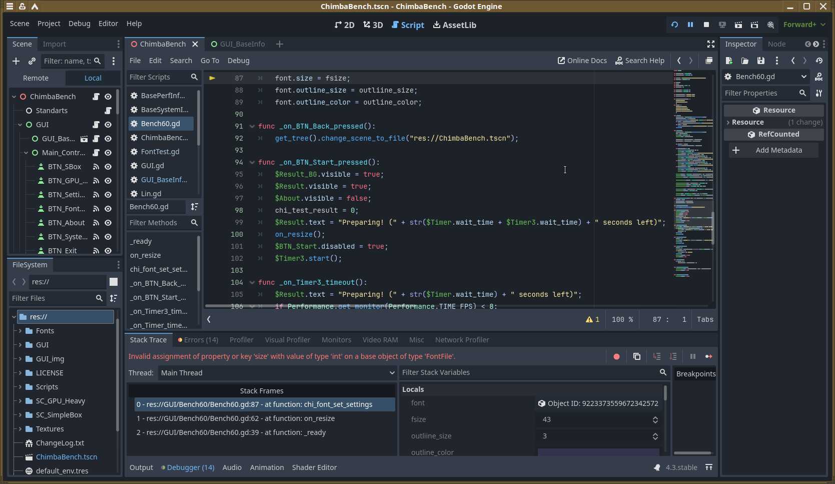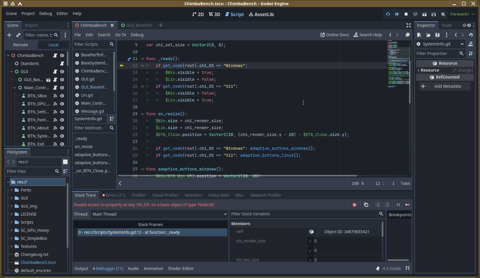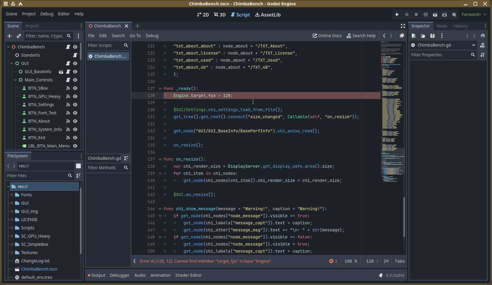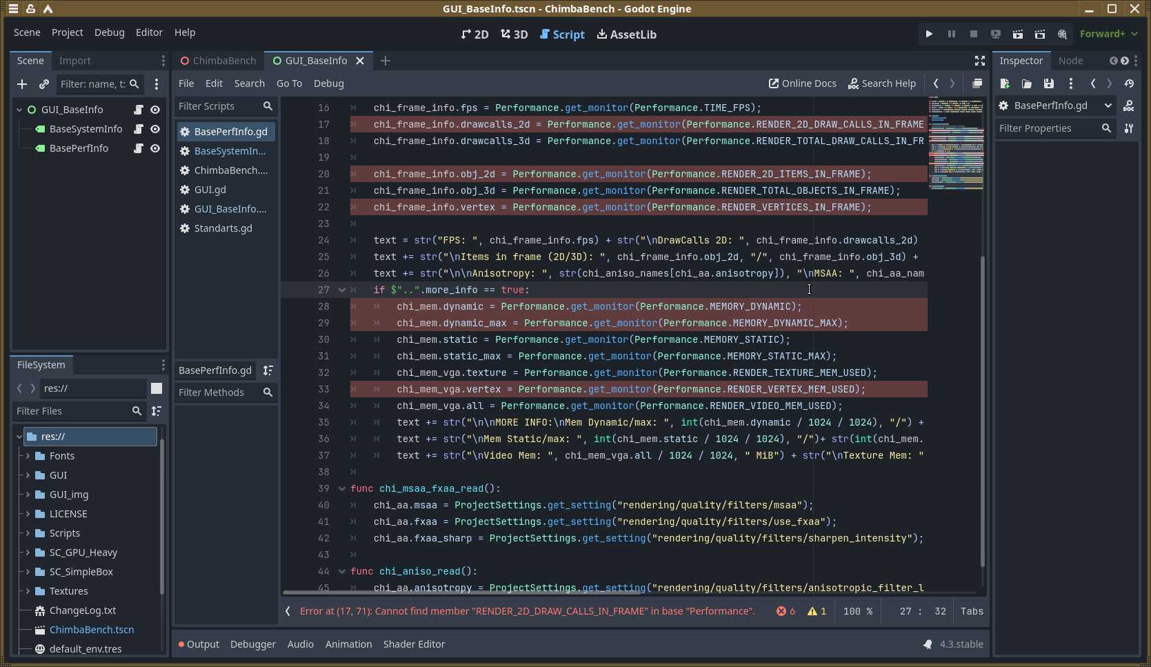 Помимо визуальных проявлений, есть и технические. Теперь не работают ограничения fps в нужных местах. Но это мелочи. Куда страшнее поломанные функции запуска сторонних утилит, благодаря которым осуществлялся запуск утилит для сбора и показа информации о системе. До кучи имеем ошибки «Invalid Call» на ровном месте, потому что Godot Engine сильно изменился, а преобразование проектов не работает должным образом.