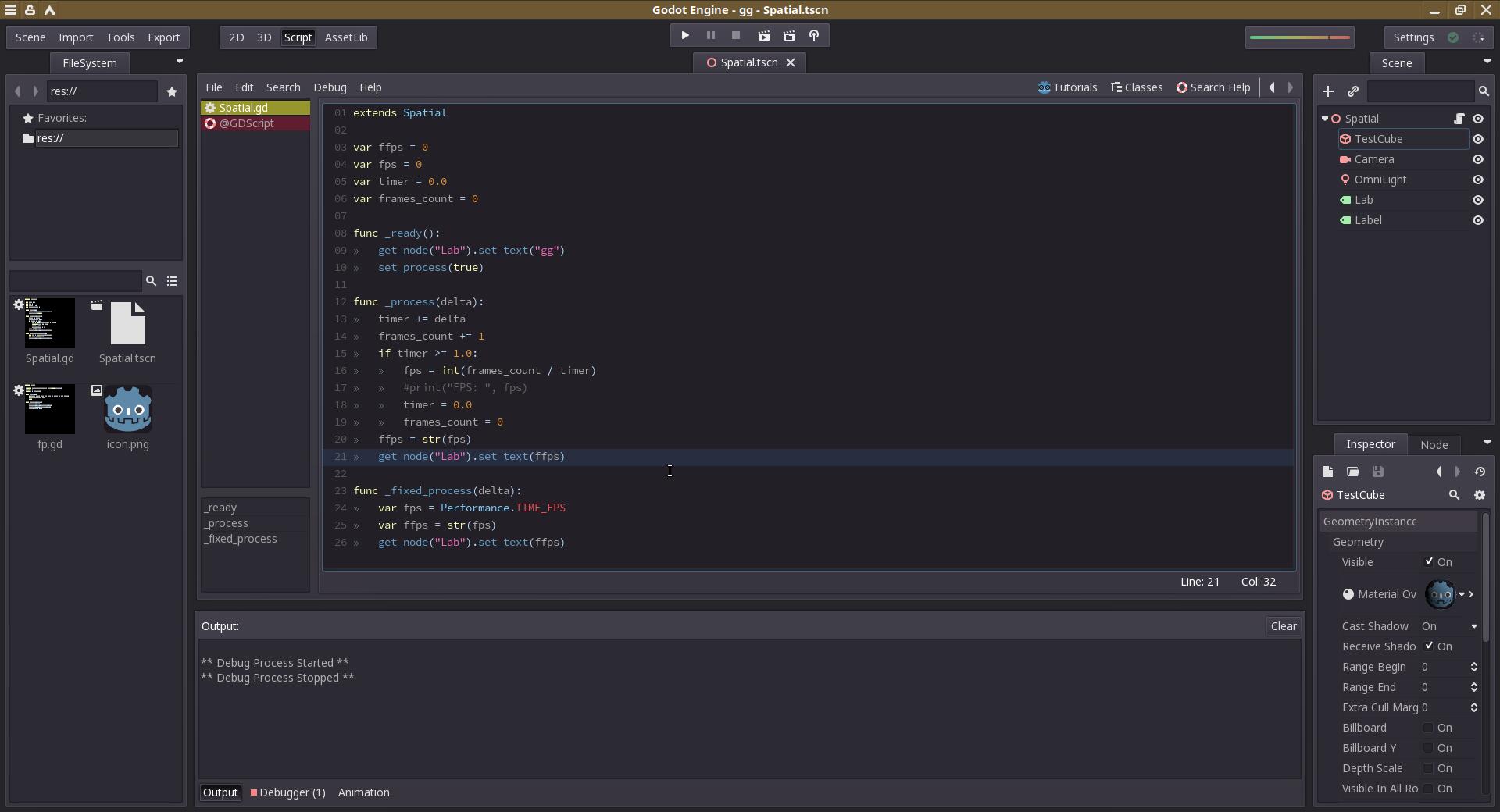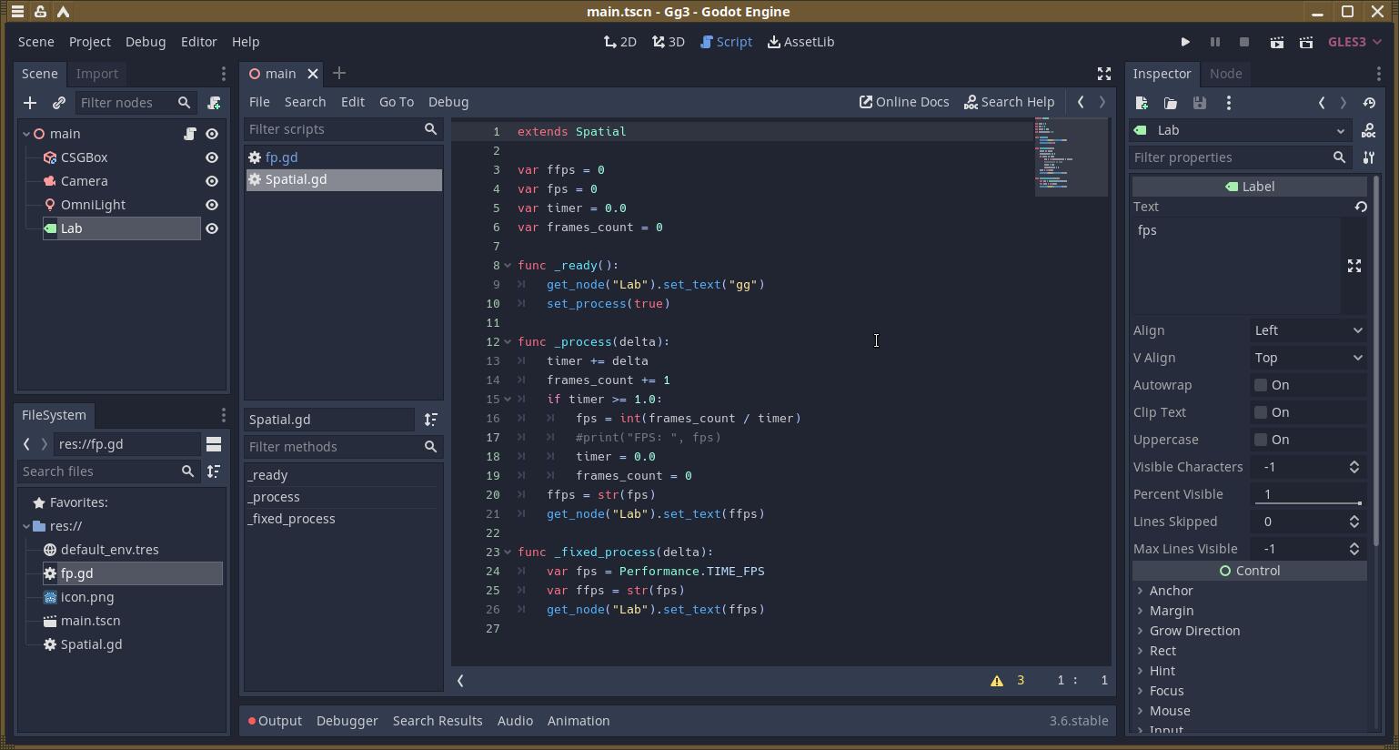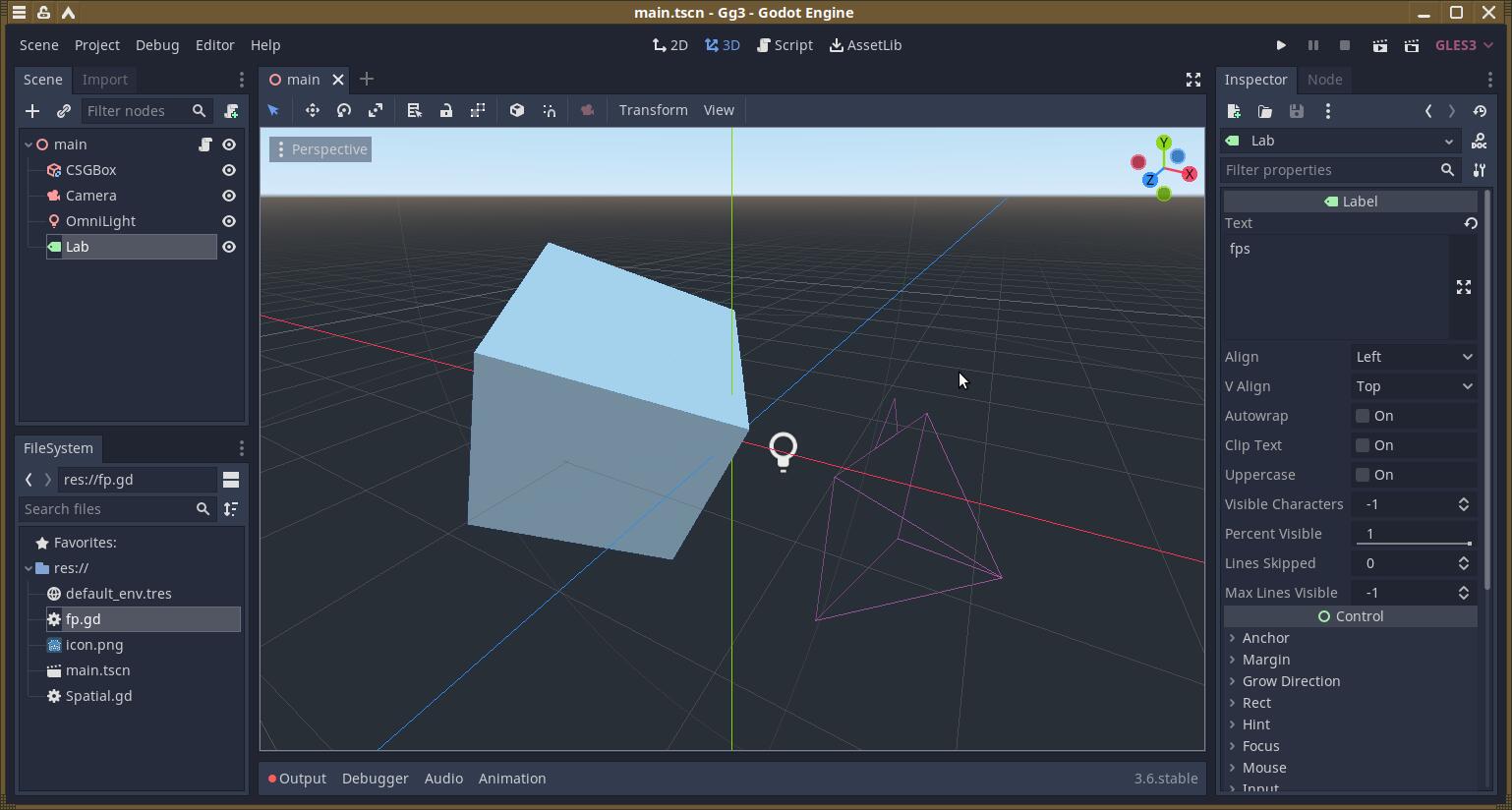 Допустим, разработчик начал свой перспективный проект ещё во времена Godot 2. Для примера я набросал очень простой проект с десятком строк исходного кода. Потом выходит Godot 3 с поддержкой OpenGL 3.3, когда старый движок работал только с OpenGL 2.1.
