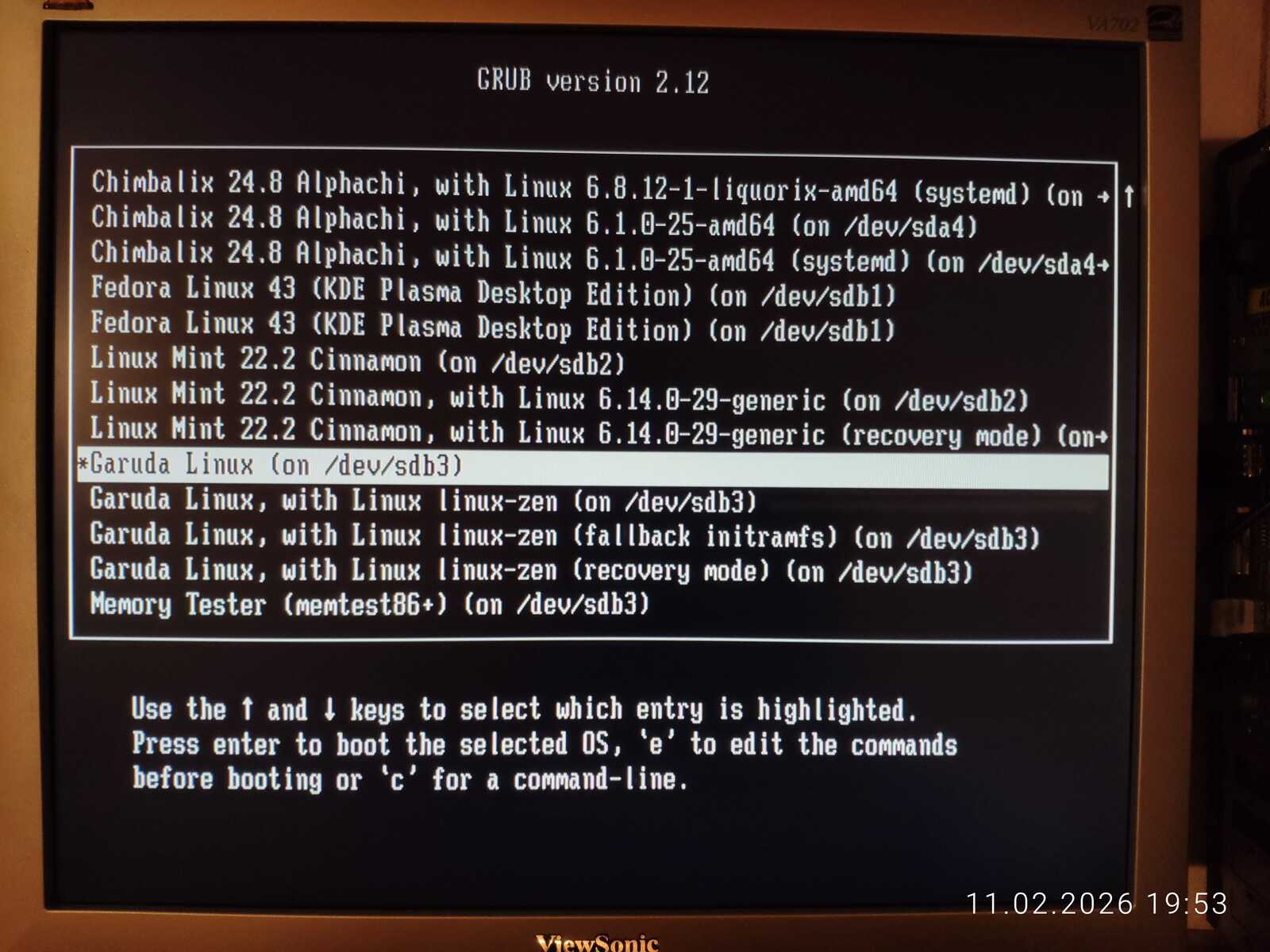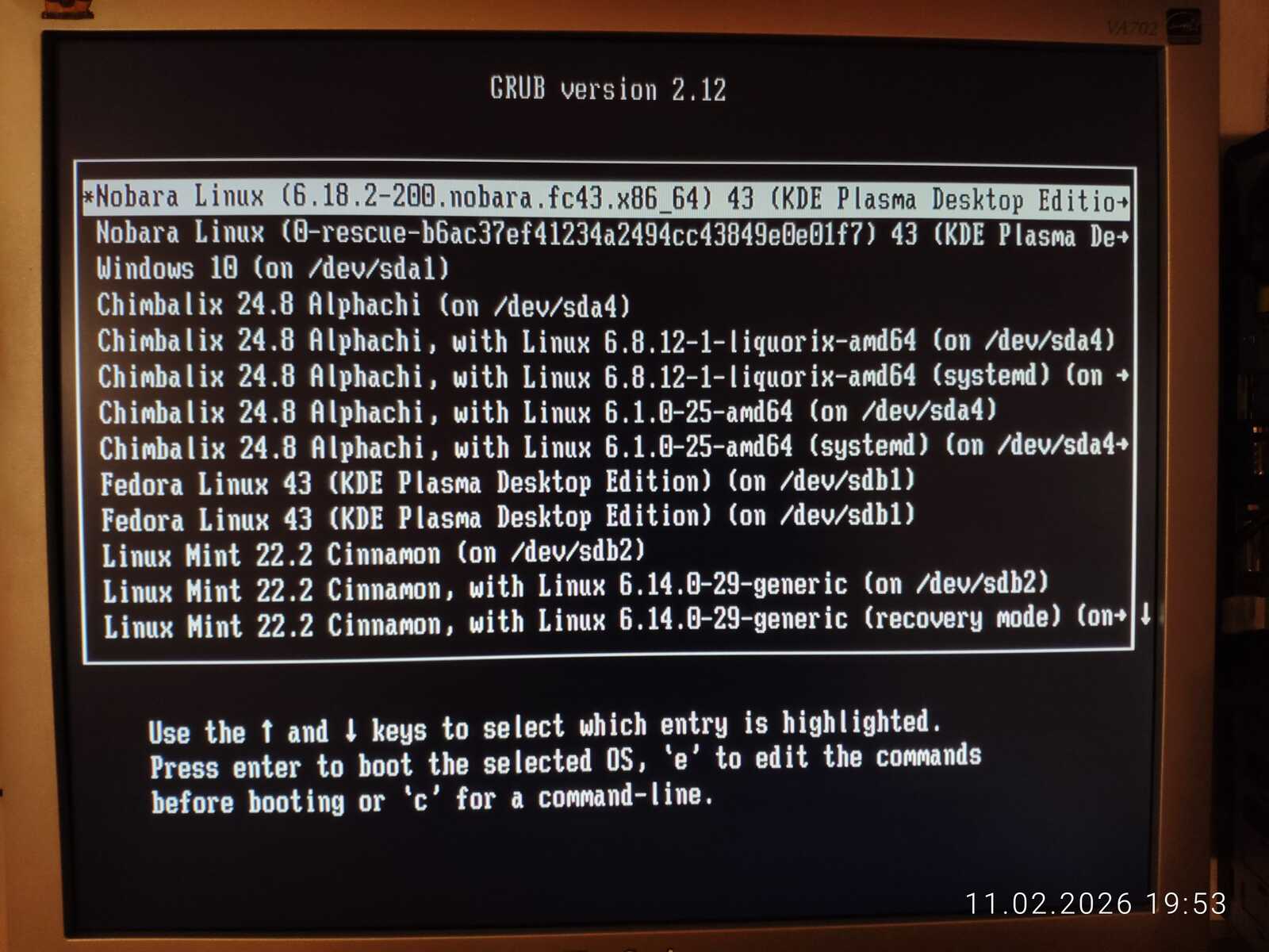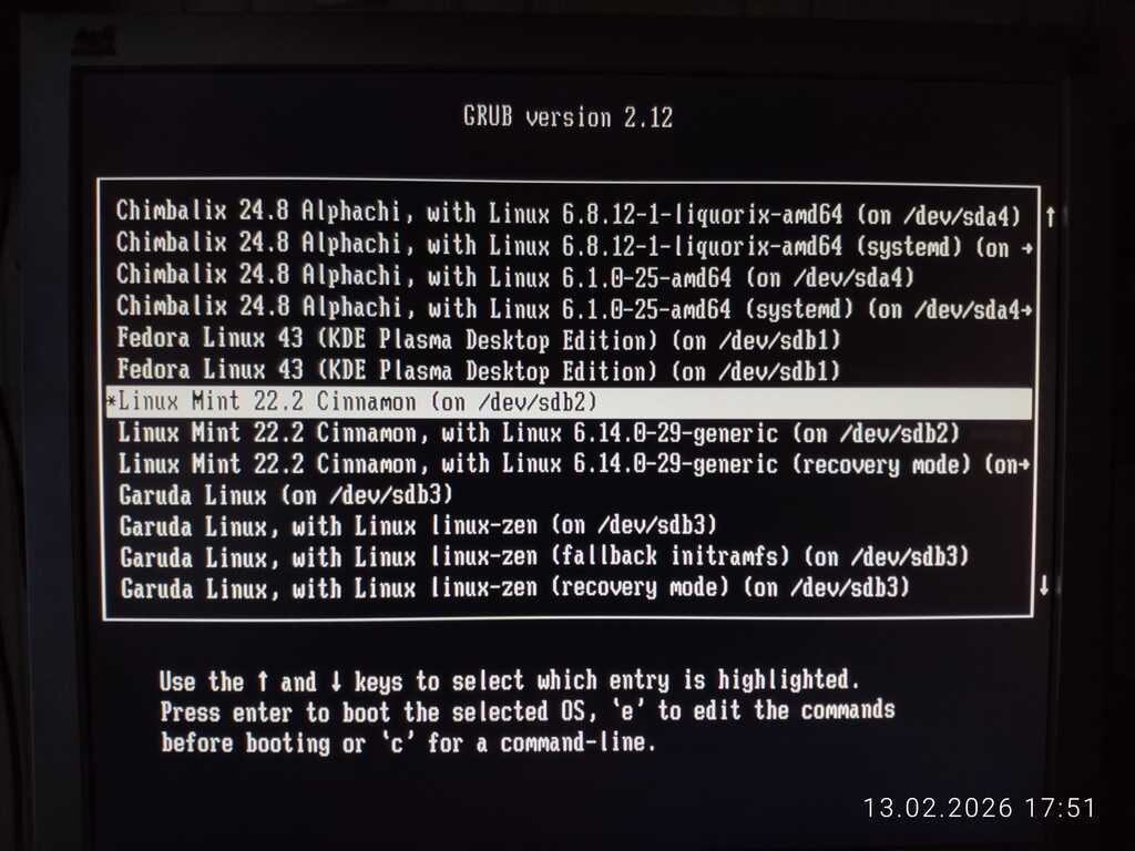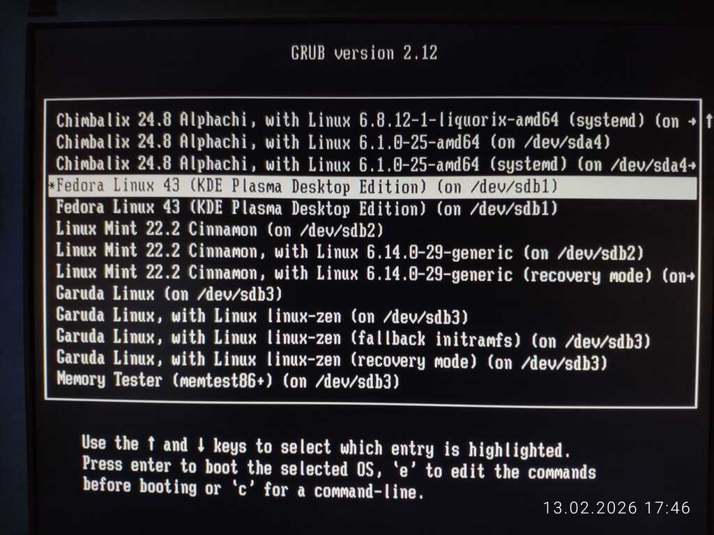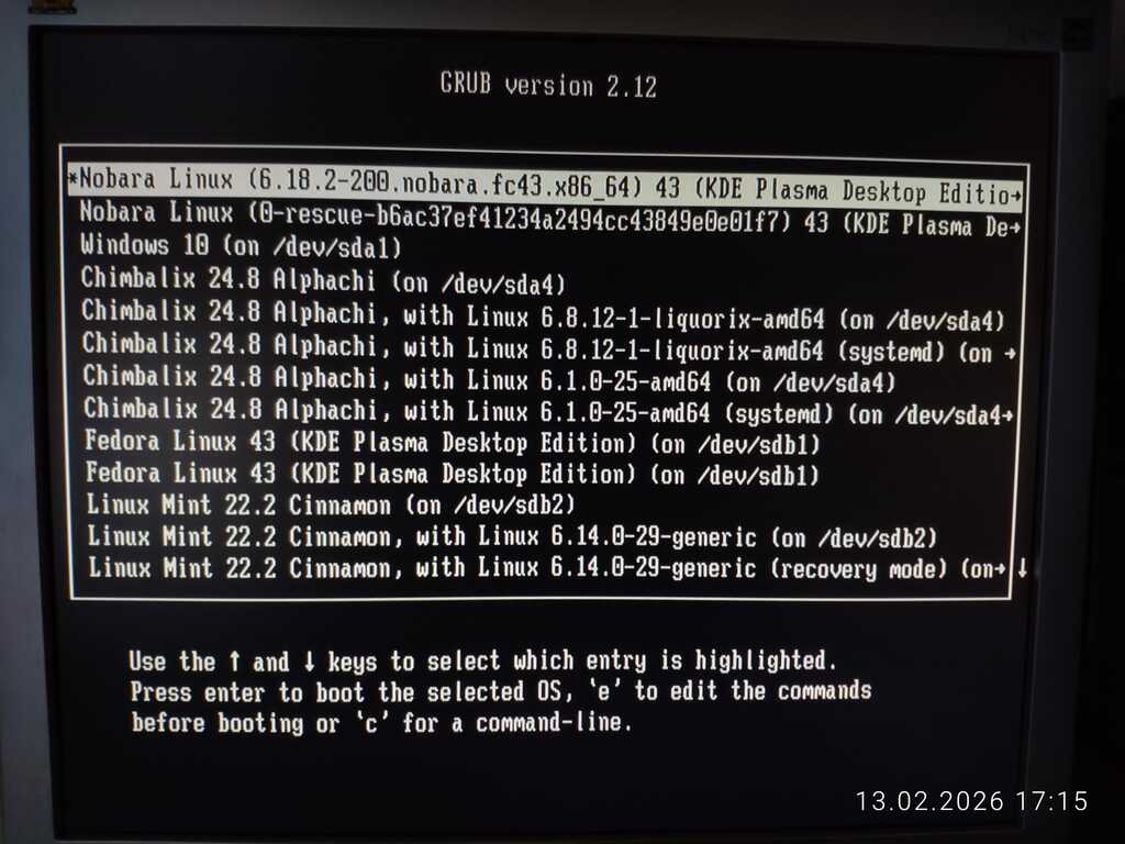 Операционные системы: Windows (XP, 7, 10). Linux (Chimbalix 24.8, Mint 22.2, Fedora 43-1.6, Garuda 2025-11-03, Nobara 43).
