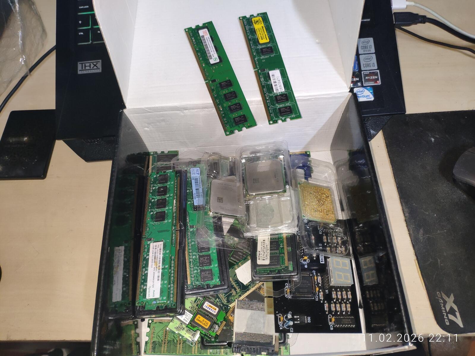 Ну а пока герметик схватывается, мы осмотрим доступные модули ОЗУ. Модули на 512 мегабайт откладываем в сторону. Как и модуль на 1 гигабайт, он вообще не стартует в тестовом компьютере.