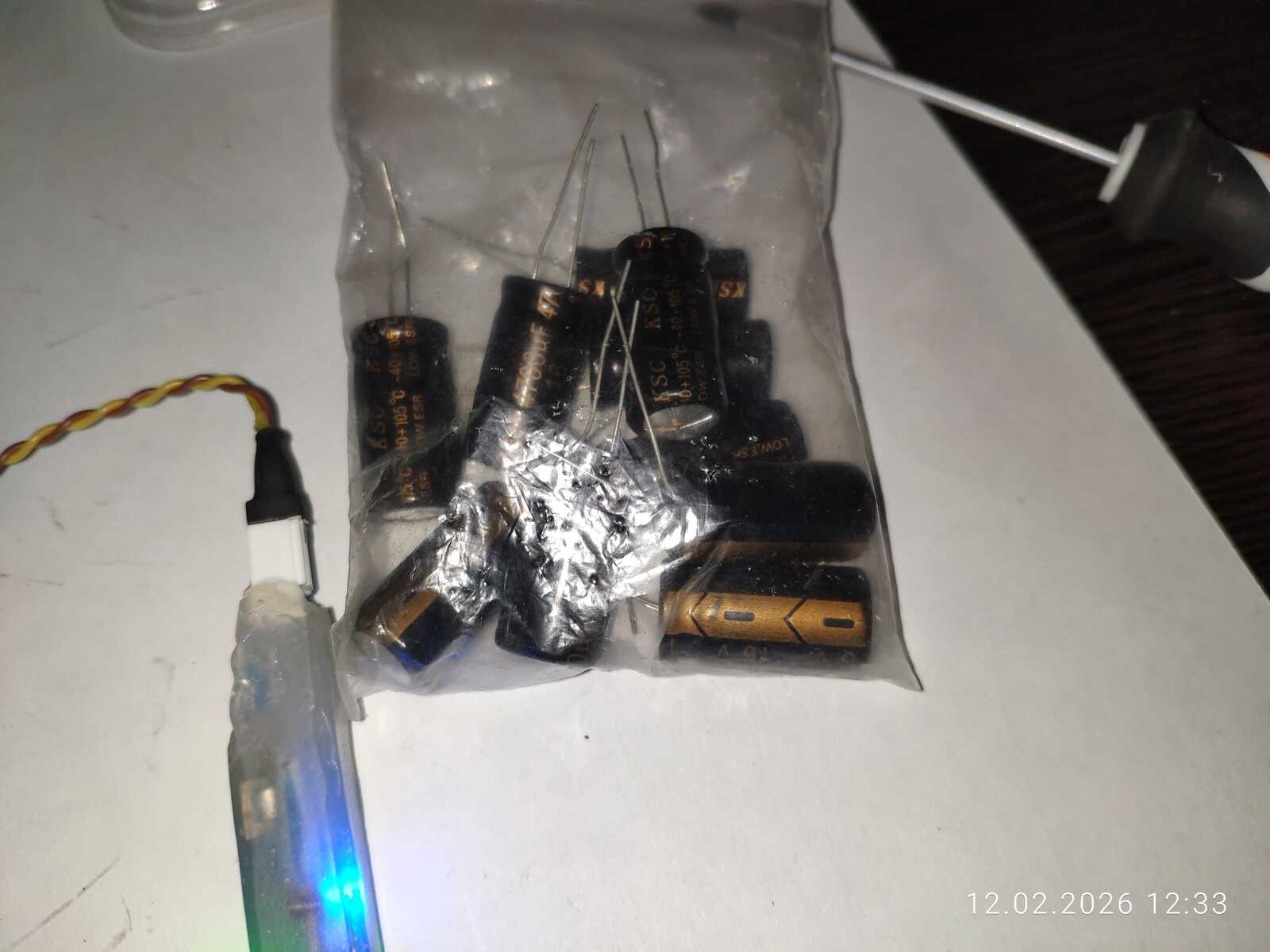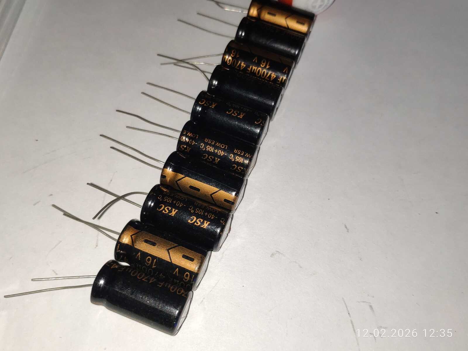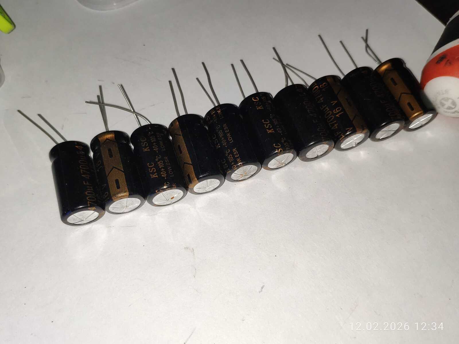 Некоторые уже могли заметить, что я предпочитаю использовать старые конденсаторы в ремонте и доработке техники вместо новых. Это неспроста. Есть у меня тут мешочек конденсаторов - ни разу не использованных. Так вот, шесть из десяти вспухли и определяются как сдвоенные диоды. А те, что не вспухли, показывают ёмкость 5700 мкФ вместо заявленных 4700 мкФ. Было бы очень неприятно, если бы такой применил в каком-нибудь ремонте. Лучше уж впаяю конденсатор возрастом 30-40 лет, но проверенный, чем новый, который может вспухнуть, просто находясь в упаковке.